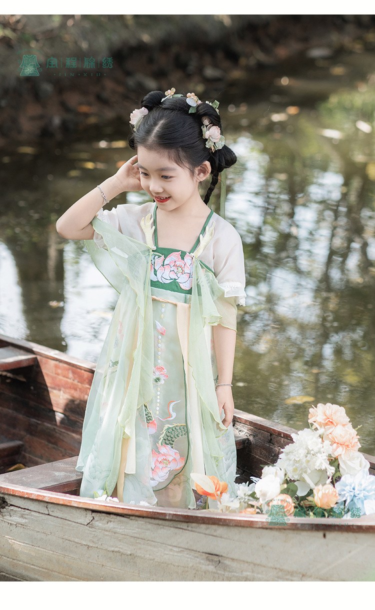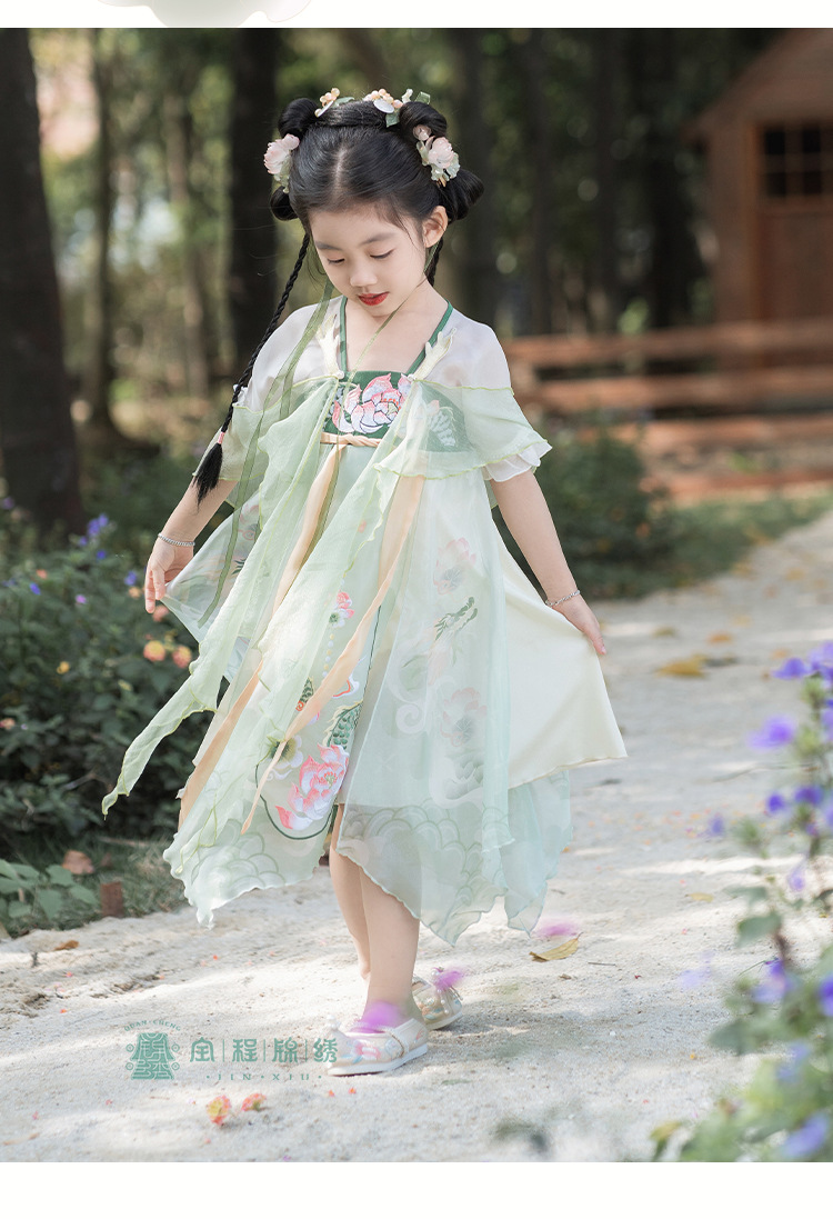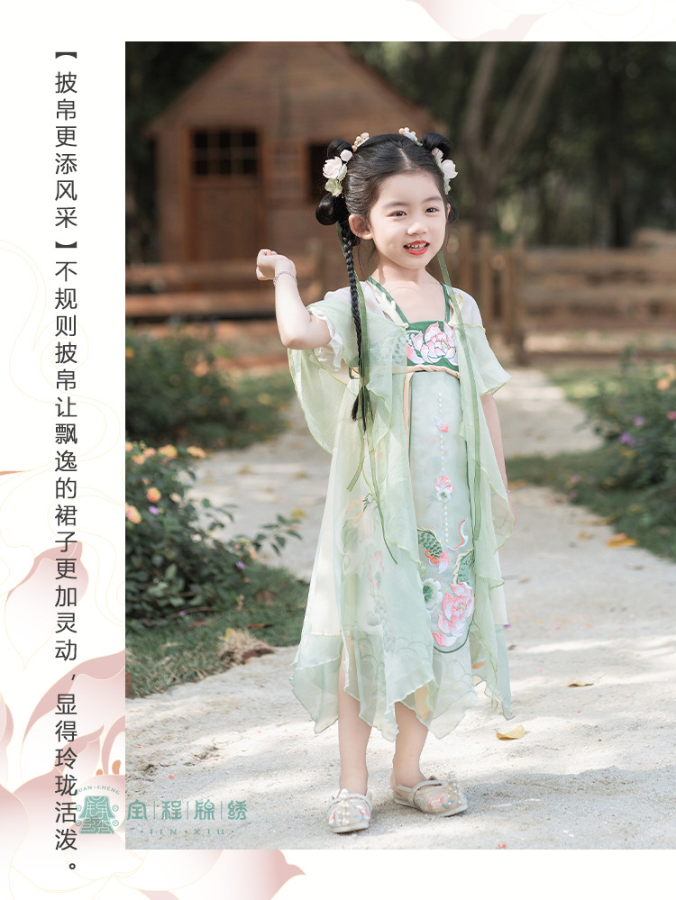 2024夏款新品古装儿童汉服齐胸襦裙改良超仙披帛连衣裙中国风批发