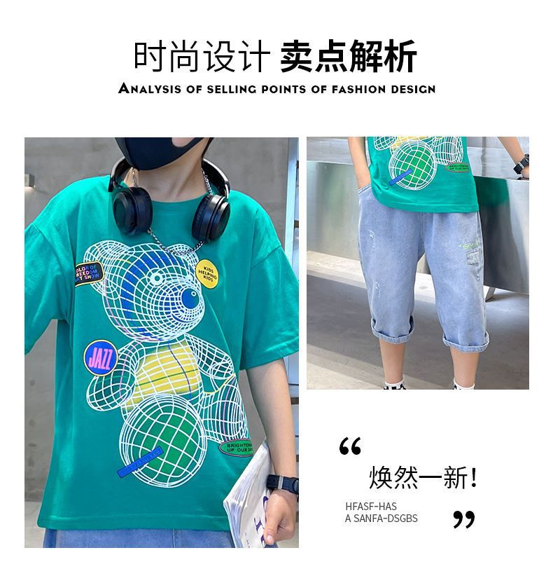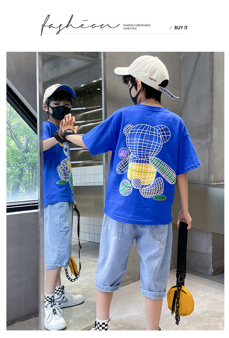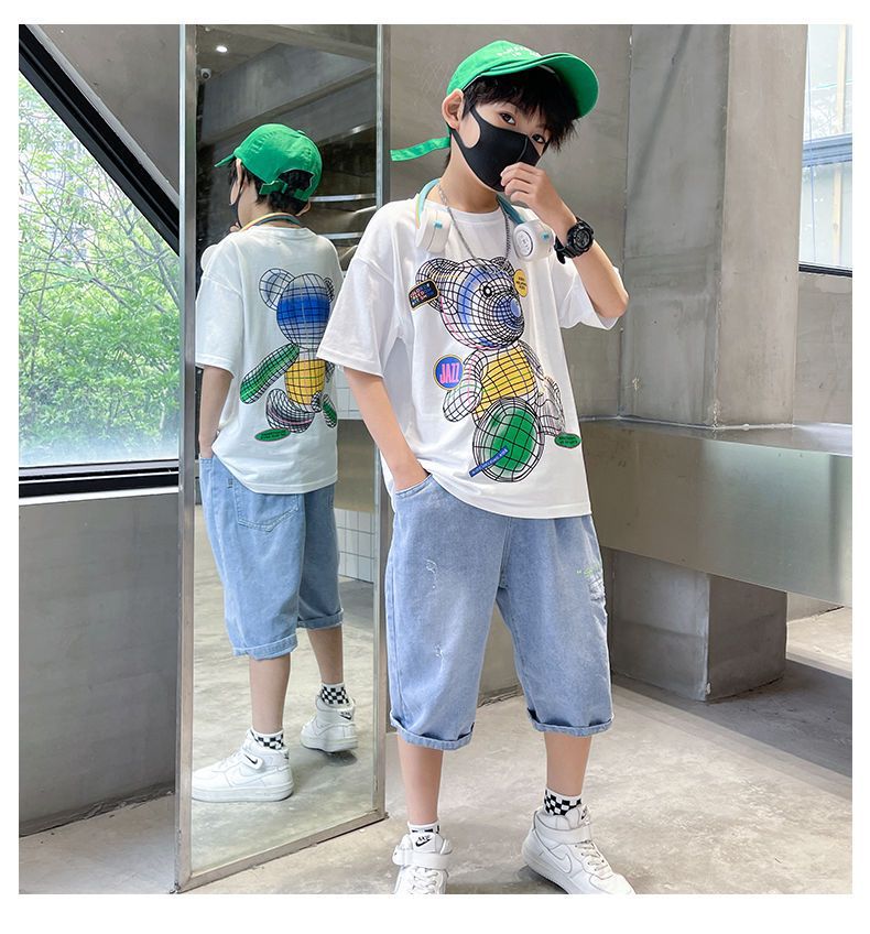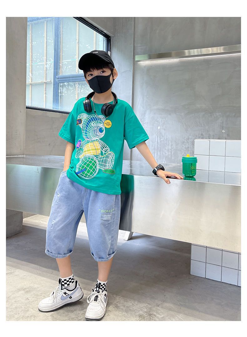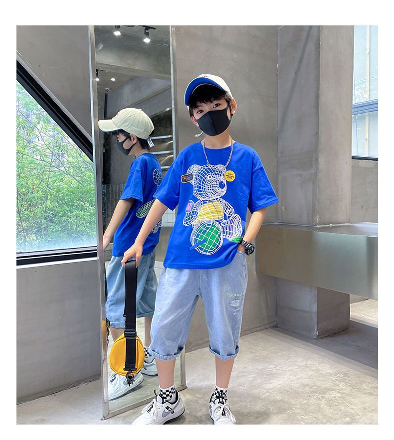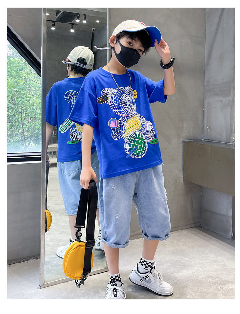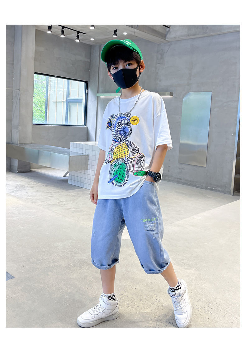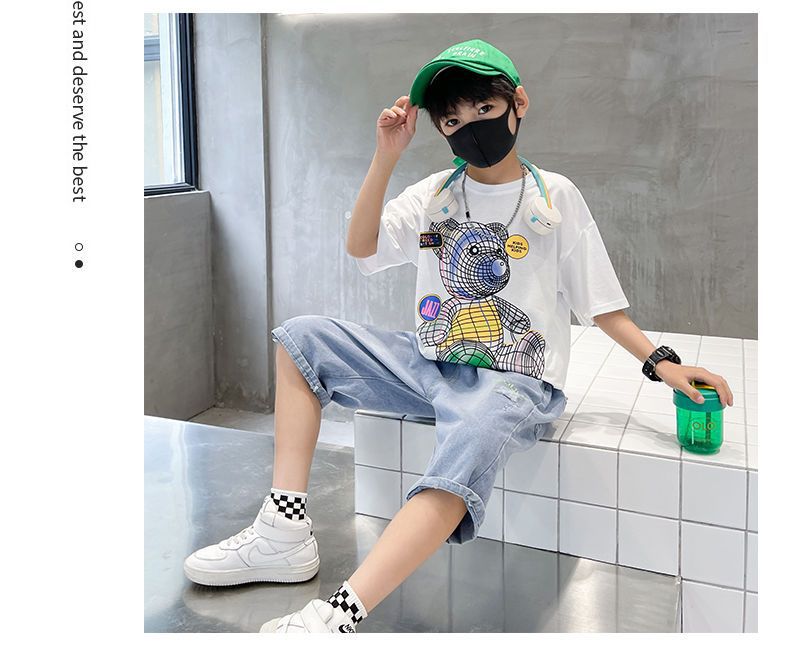 男童夏装短袖牛仔套装2024夏季新款洋气炸街条纹潮儿童装帅气时髦
