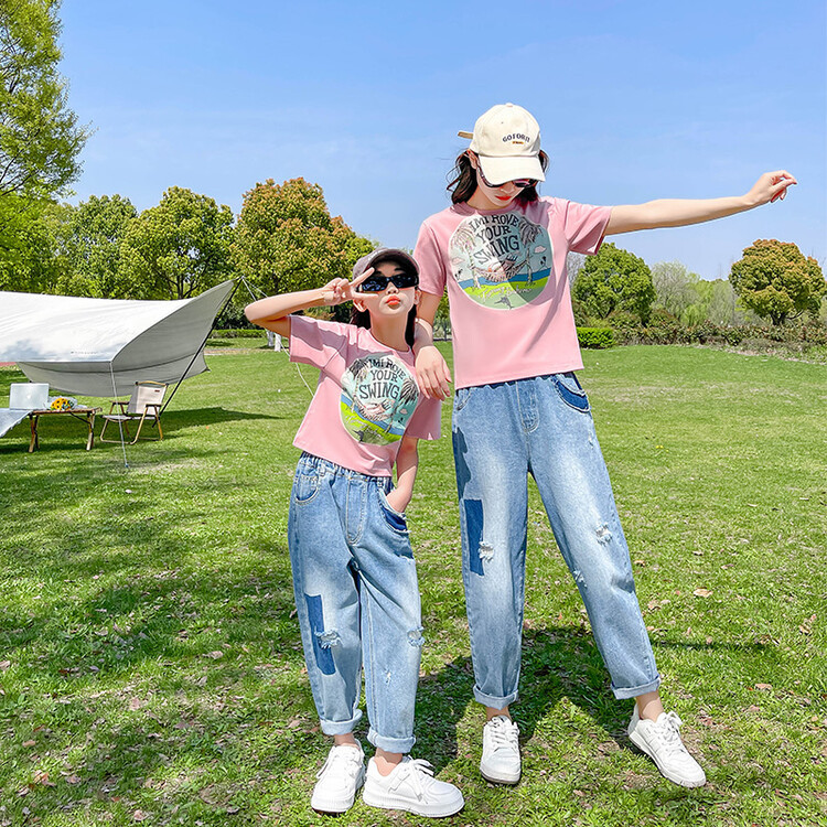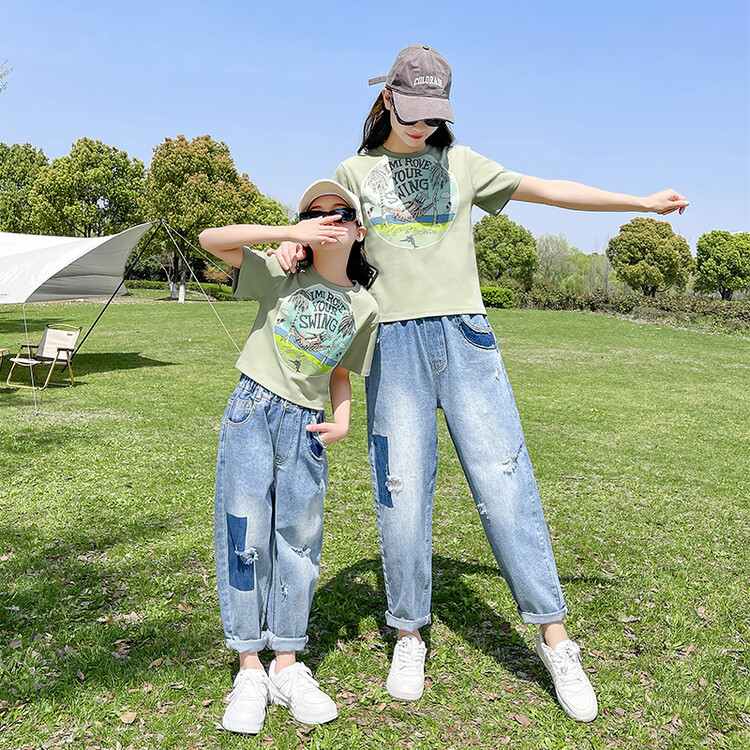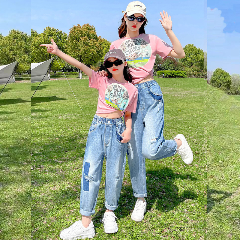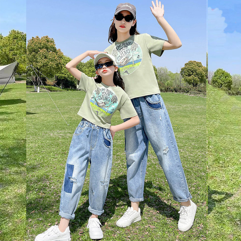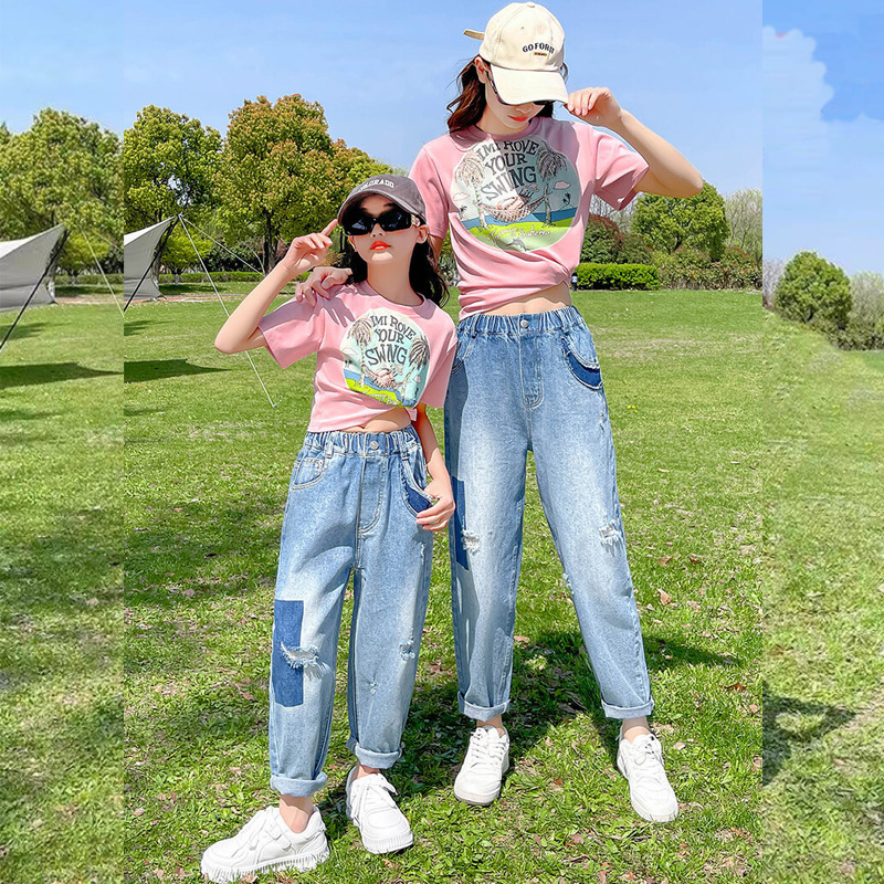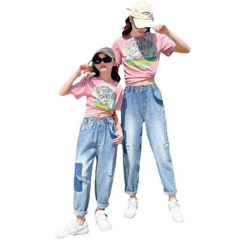女童夏装套装2024新款韩版儿童装洋气时髦中大童牛仔椰树两件套