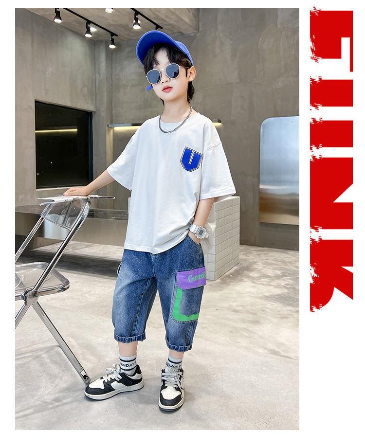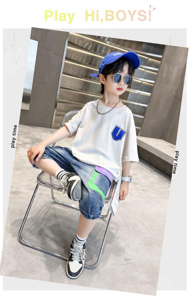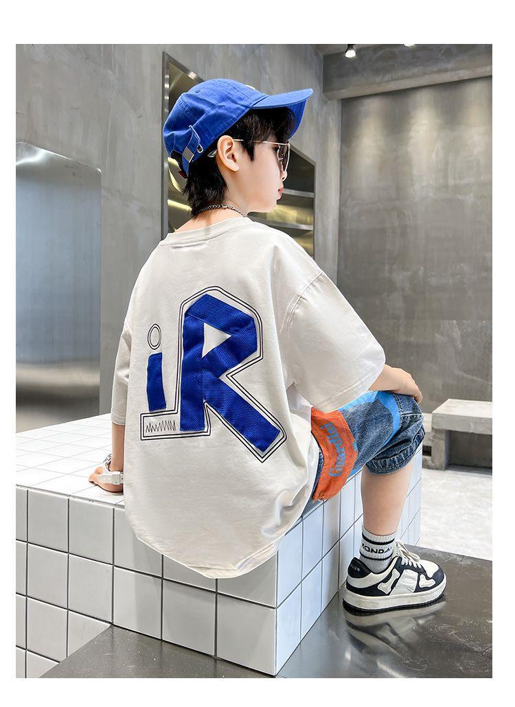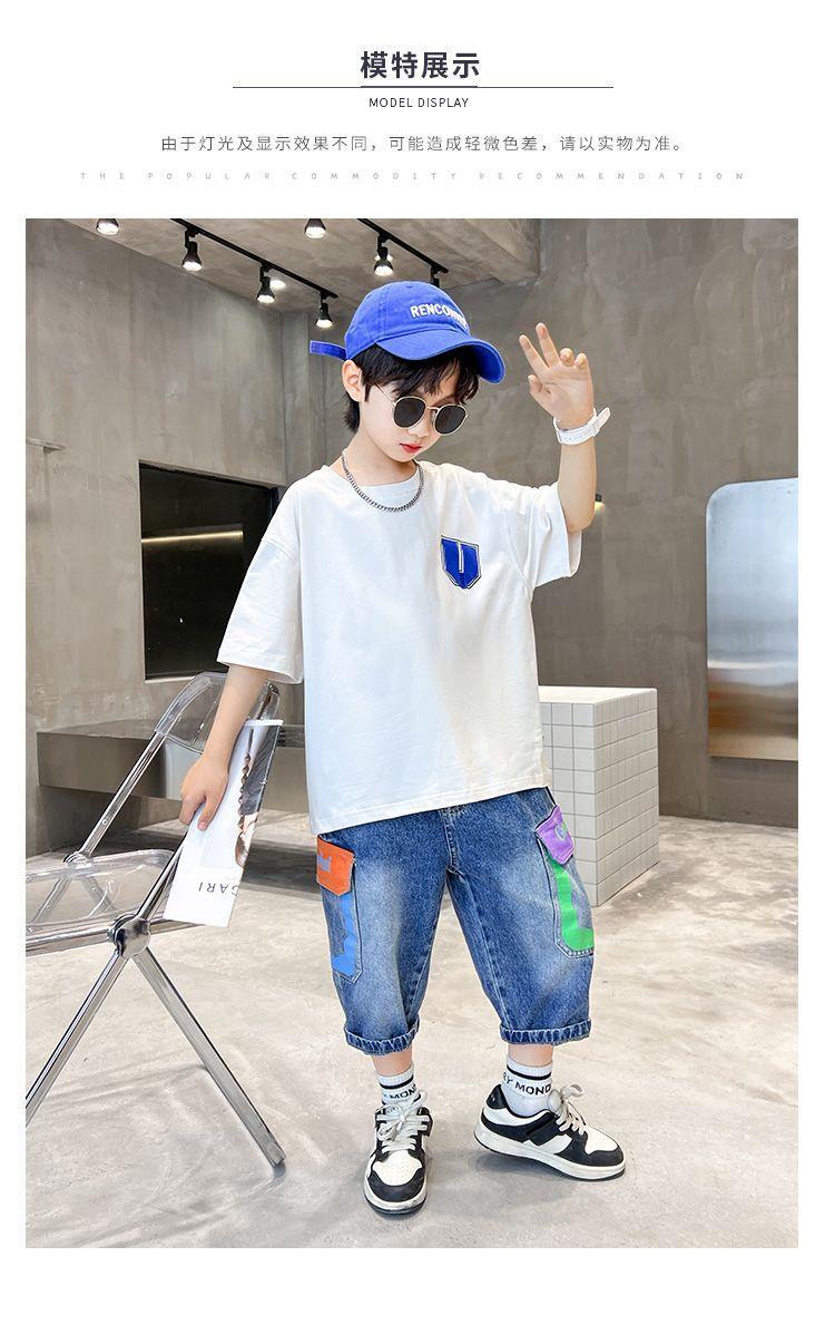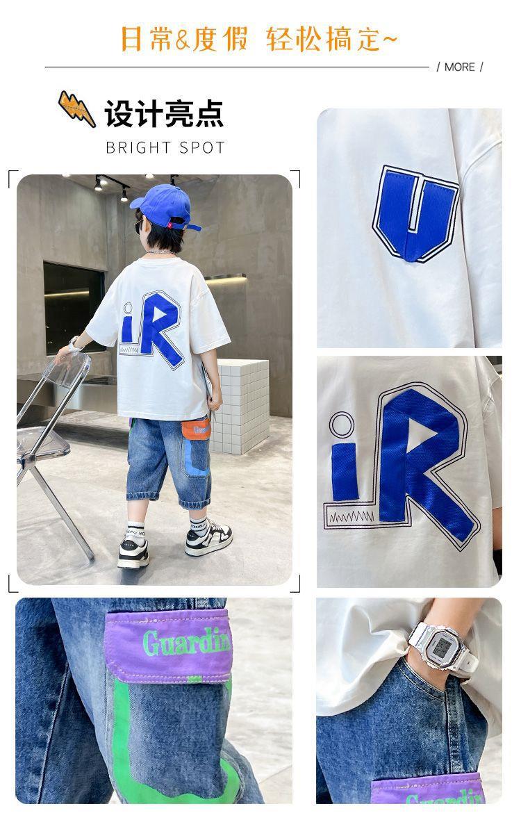 儿童夏季童装男童酷帅气夏装短袖t恤套装2024新款中大童两件套