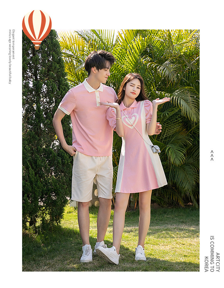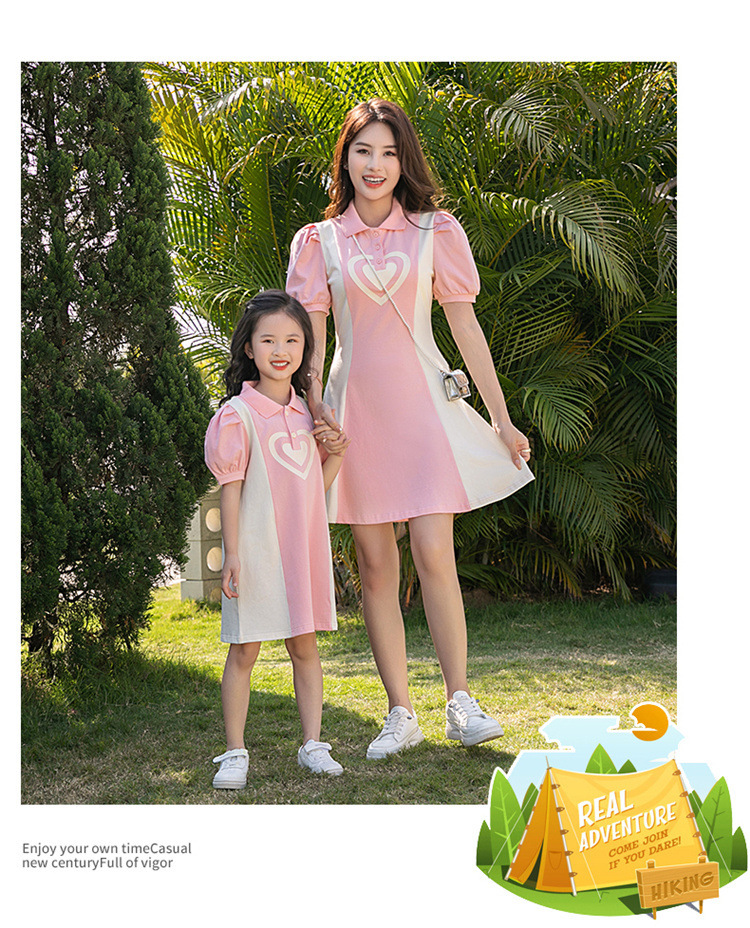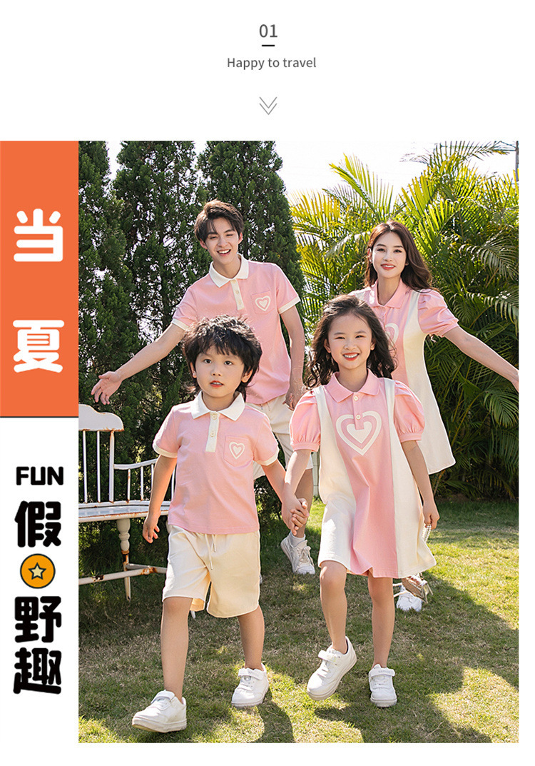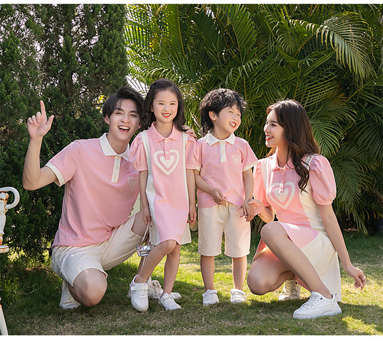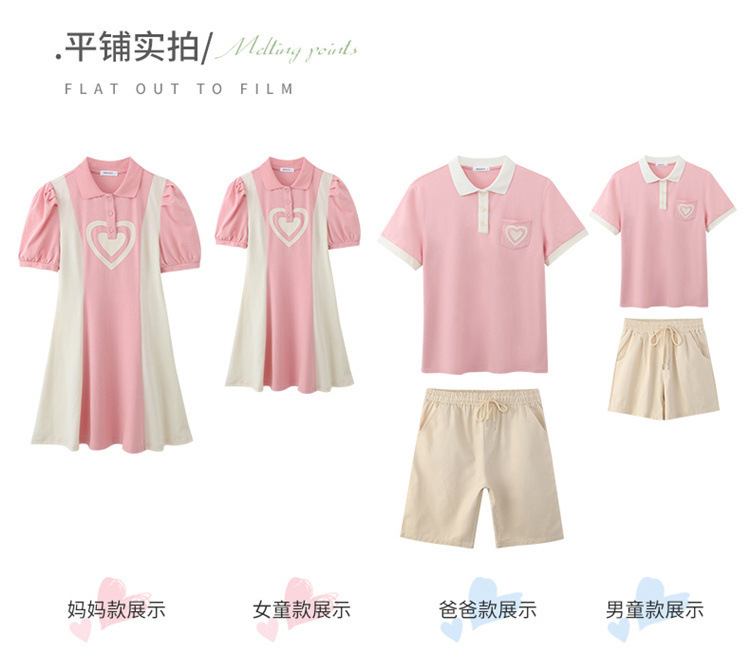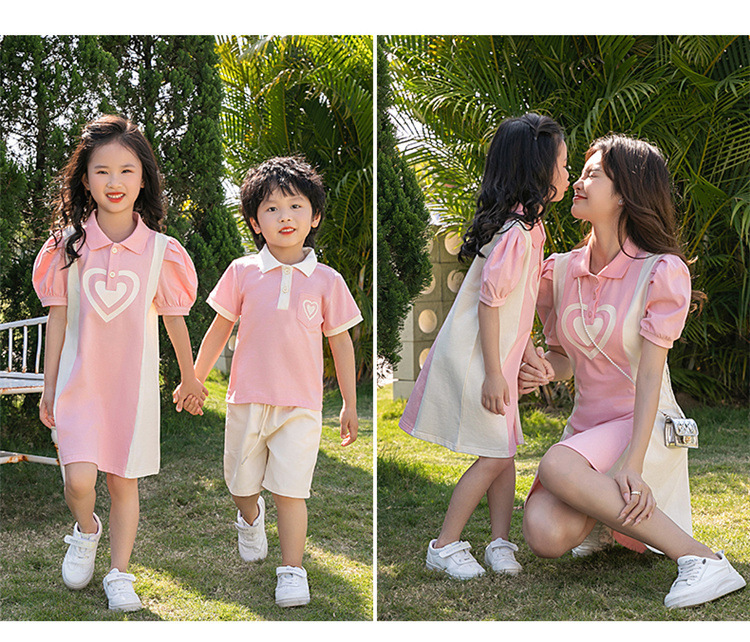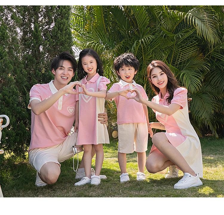 夏季2023新款polo衫短袖连衣裙学院风显瘦一家四口三口亲子装批发