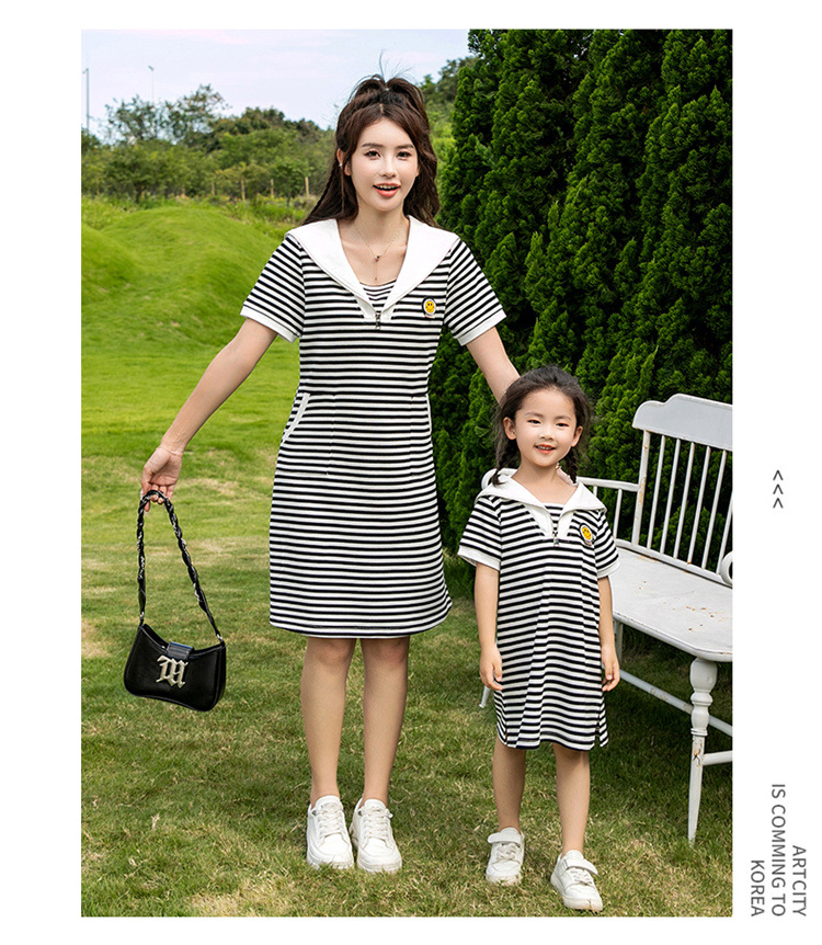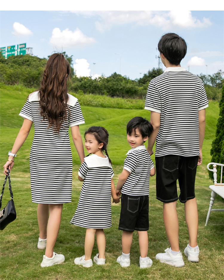 亲子装2023新款炸街母子母女装夏款条纹polo衫不一样高端亲子装潮