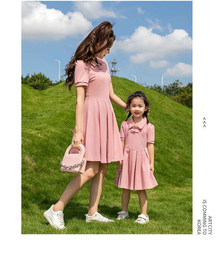 2023夏季新款一家四口亲子装短袖母女装连衣裙国风改良旗袍母女装