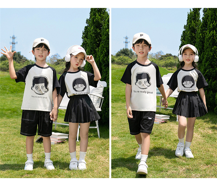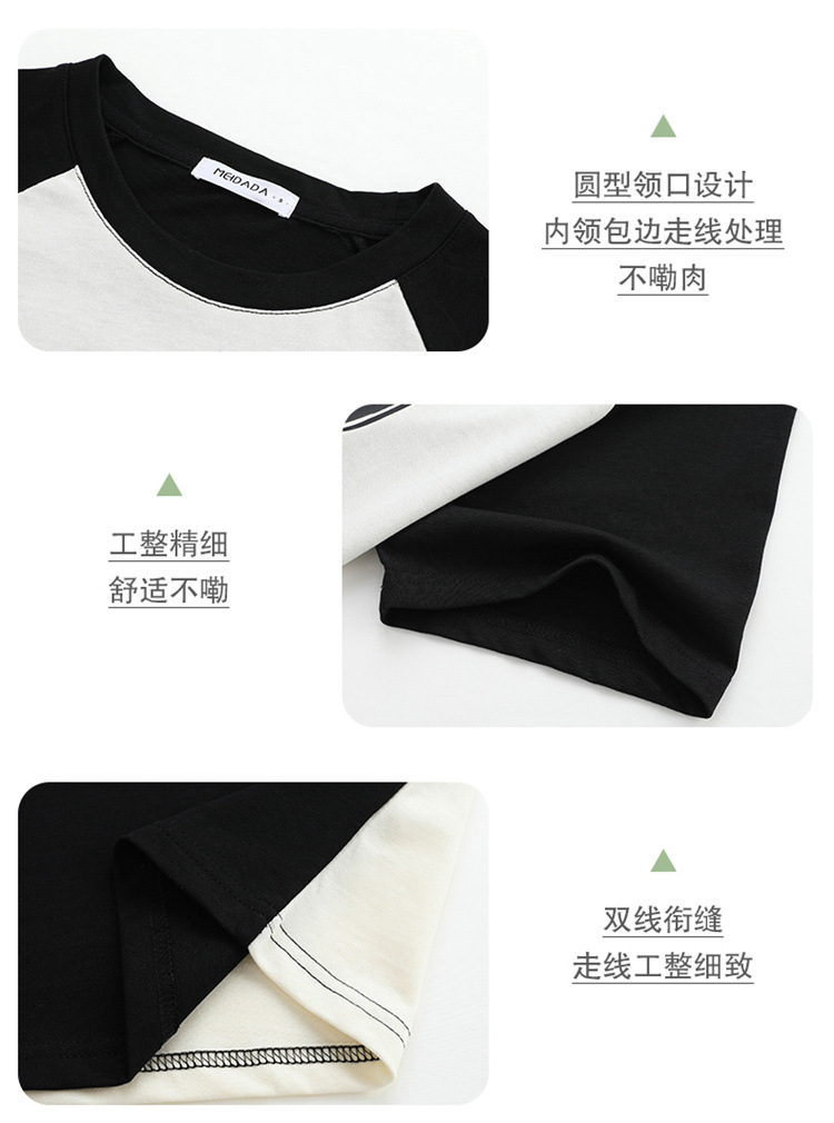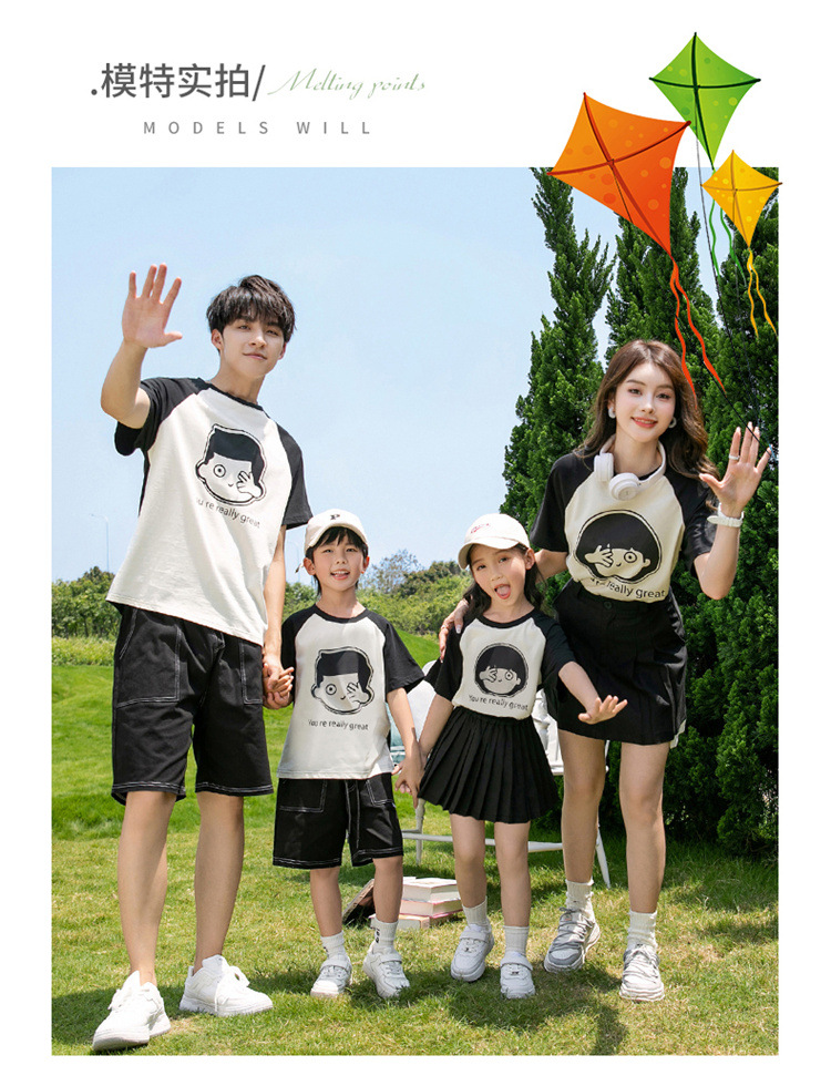 趣味卡通印花亲子装t恤一家四口洋气插肩袖短袖男宝女宝纯棉上衣