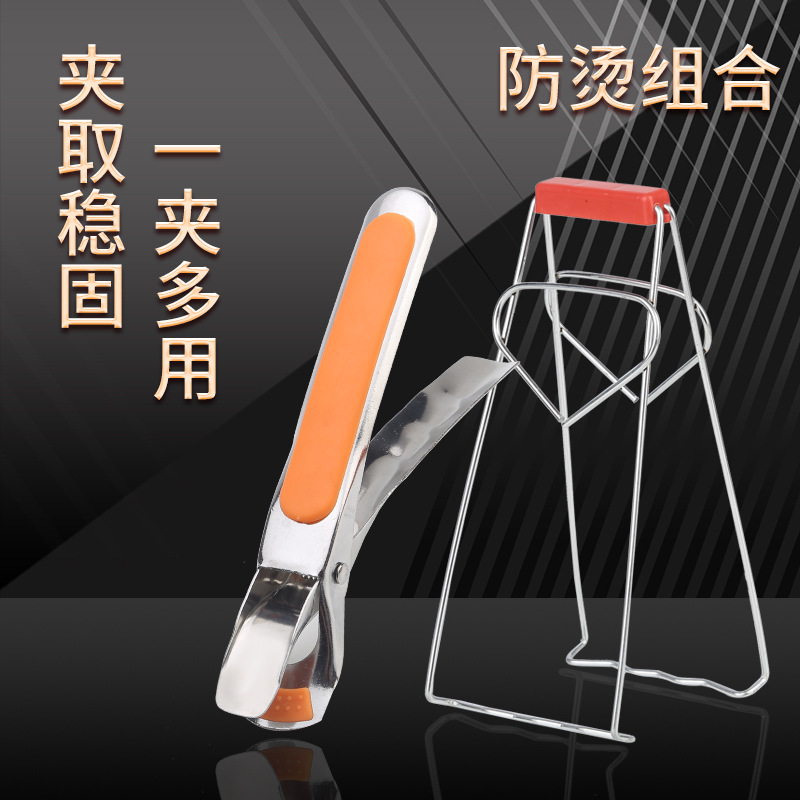 不锈钢泰山夹提盘夹 酒店厨房小工具带硅胶加厚隔热碗夹取盘夹