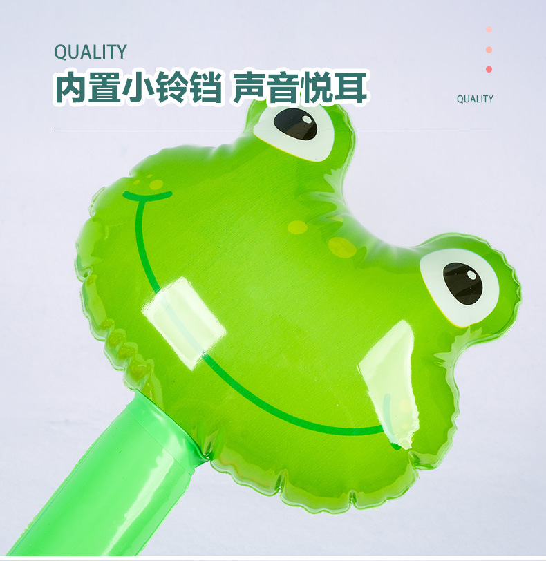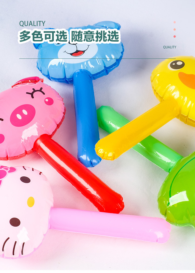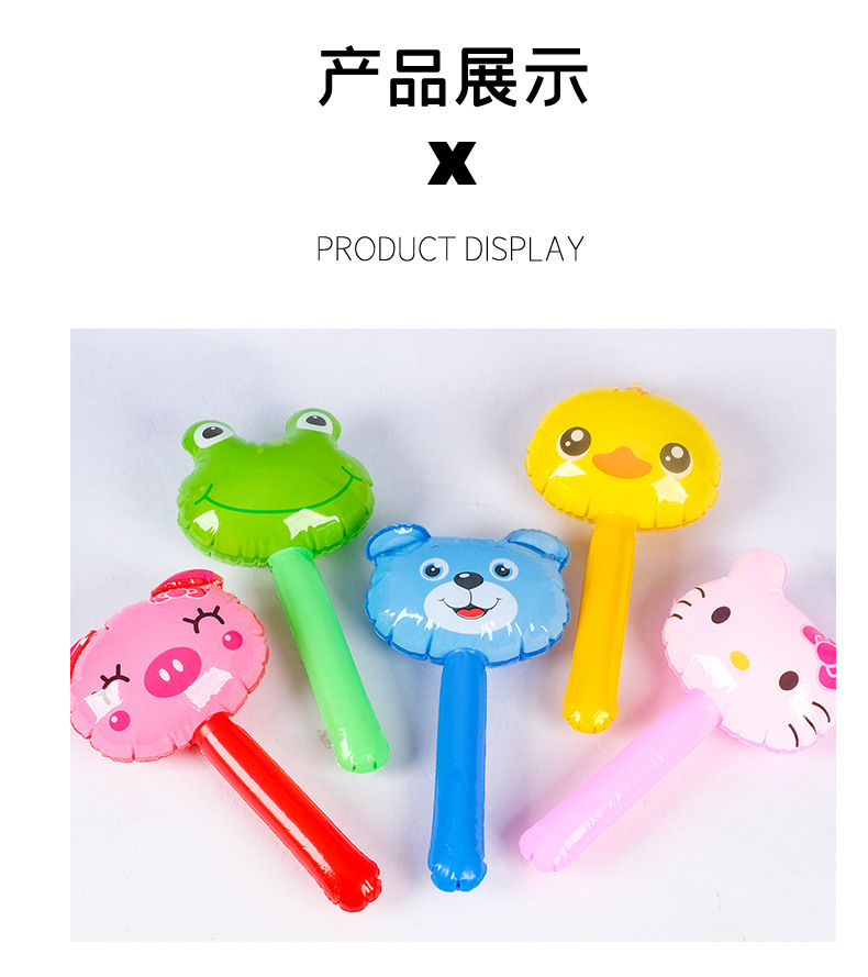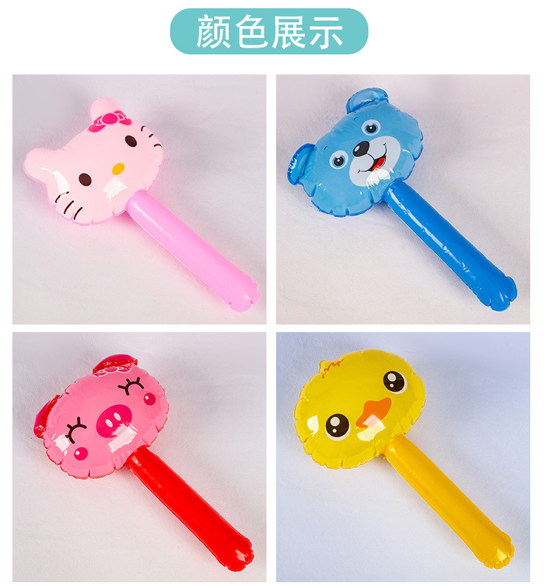 卡通动物头充气锤子动物头长棒小号充气铃铛锤长棒带铃铛充气玩具