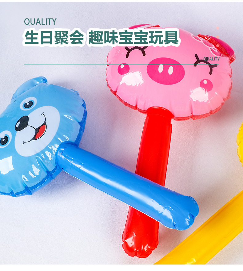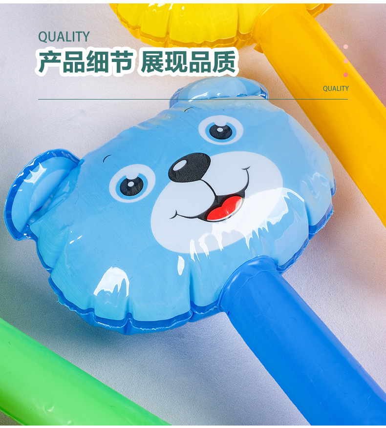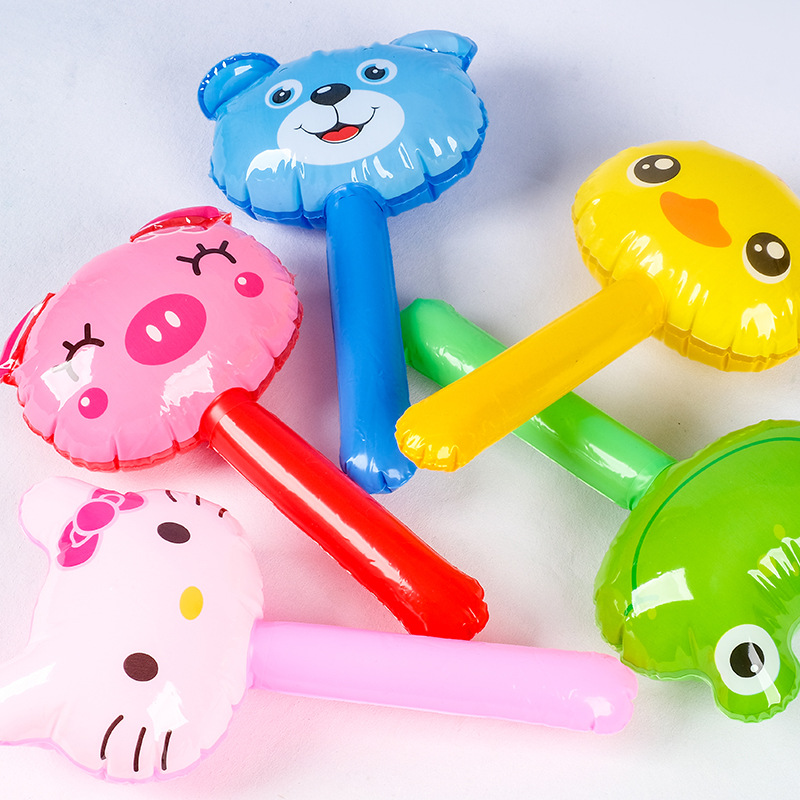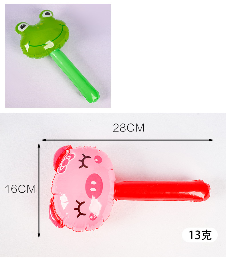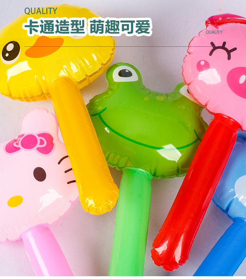 卡通动物头充气锤子动物头长棒小号充气铃铛锤长棒带铃铛充气玩具
