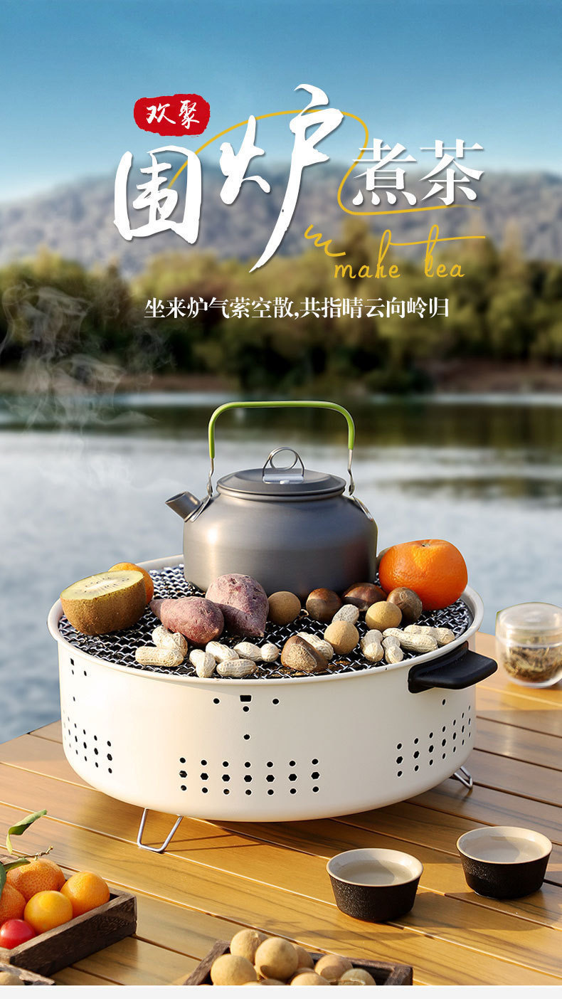 围炉煮茶碳火炉商用烧烤架户外烤架野外露营圆形便携可拆卸烧烤炉