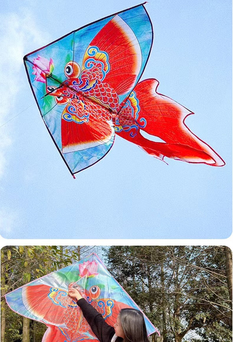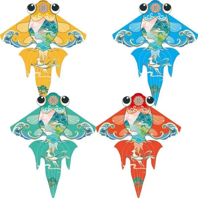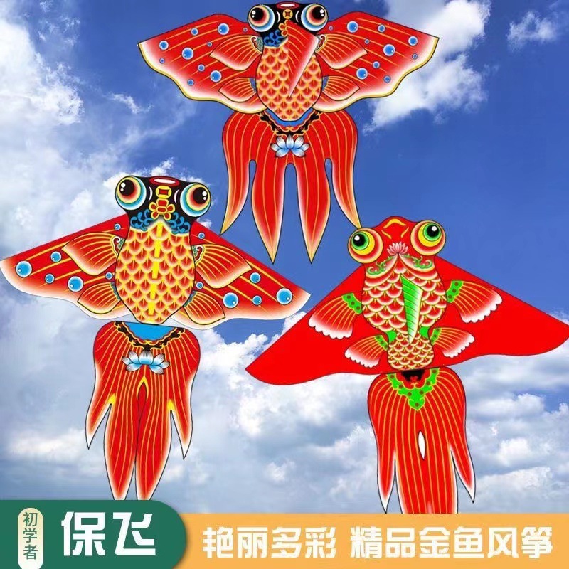 2024新款风筝批 发摆摊带线轮微风易飞国潮金鱼轮子带线潍坊风筝