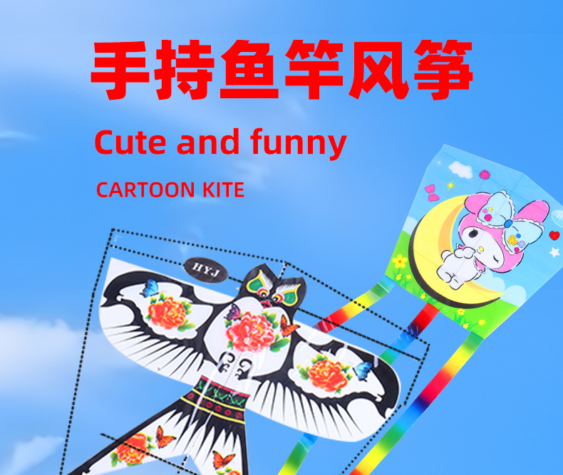 儿童老鹰燕子风筝 手持翅膀抖动鱼竿风筝 微风易飞动态风筝批发
