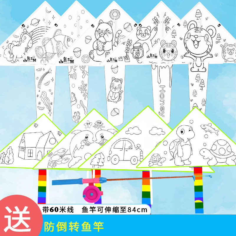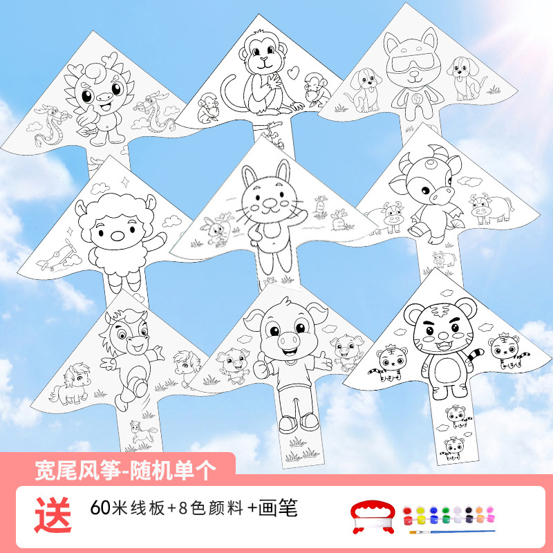 厂批发儿童手绘风筝 龙年幼儿园手工制作卡通涂鸦绘画空白diy风筝
