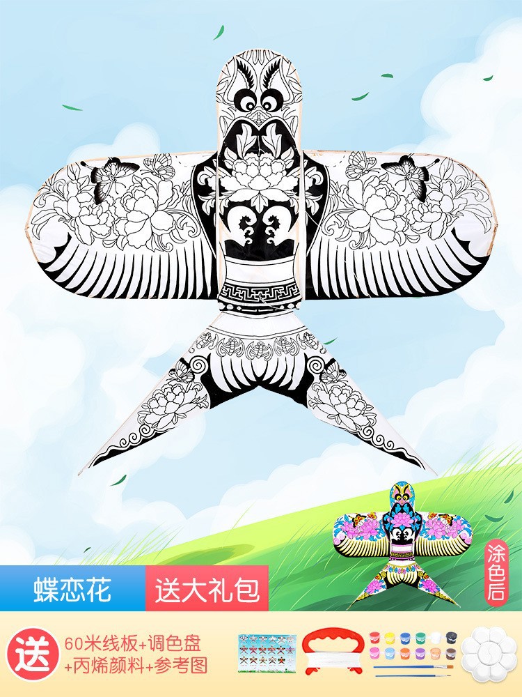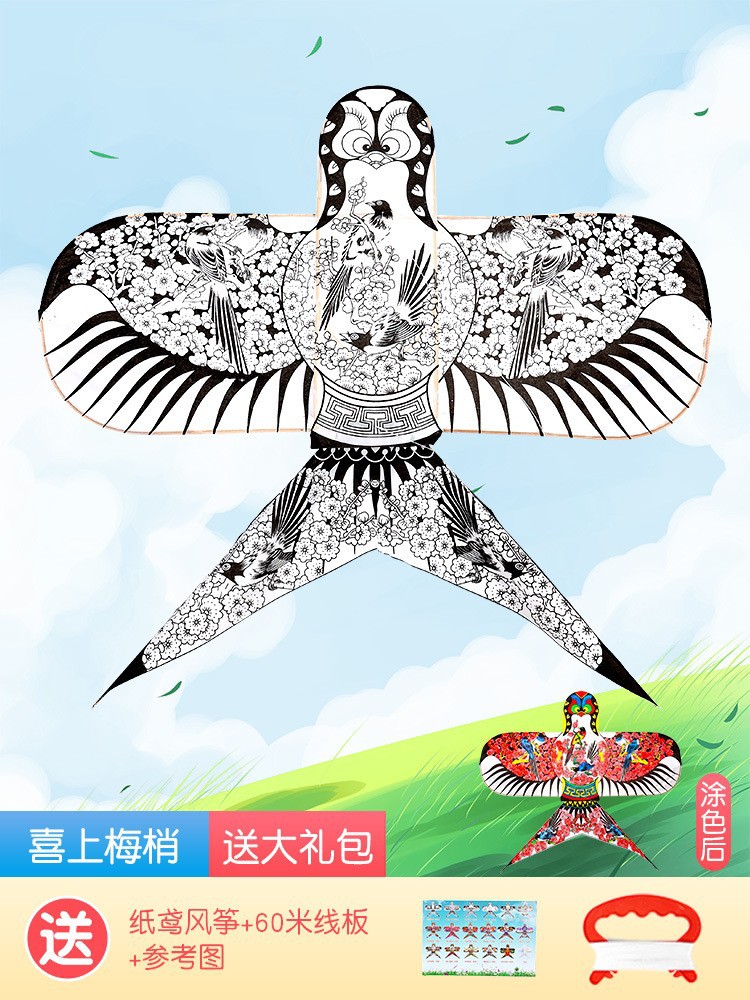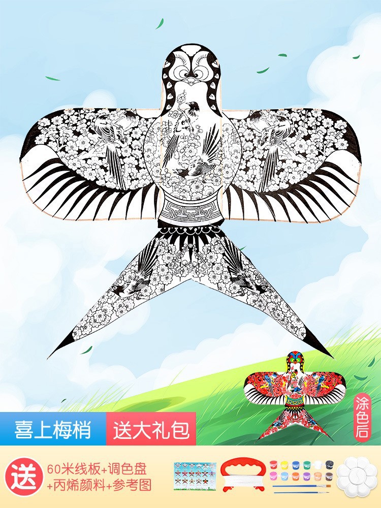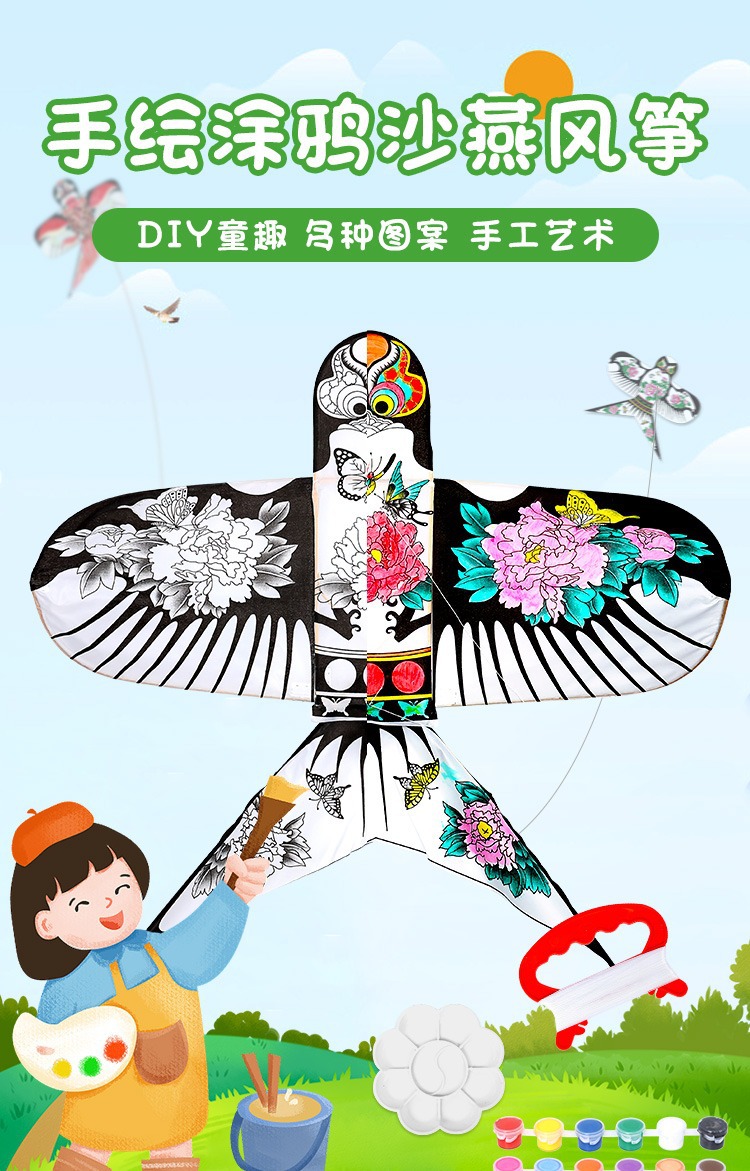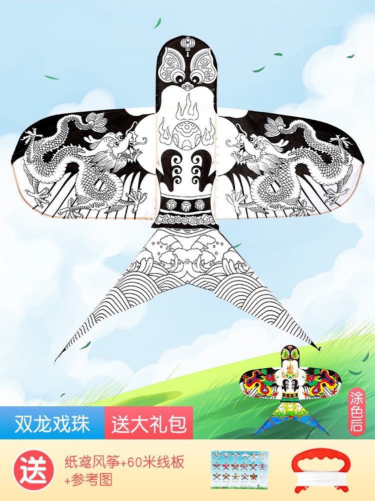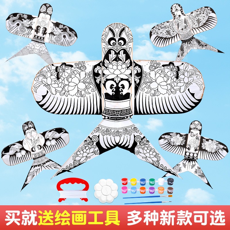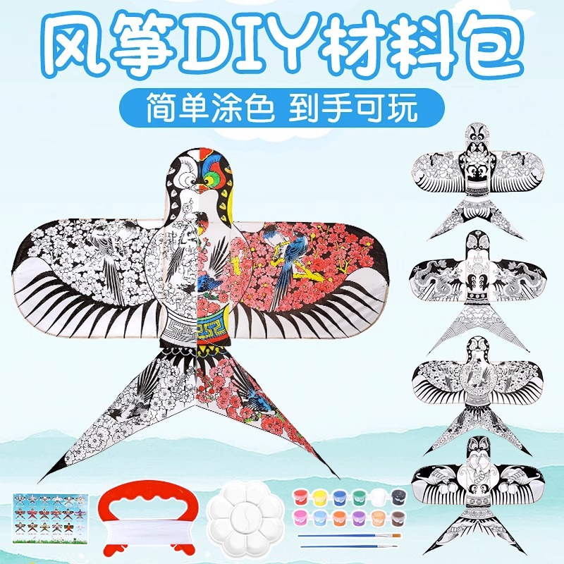儿童手工diy空白绘画涂鸦手绘风筝古风纸鸢填色风筝沙燕diy材料包