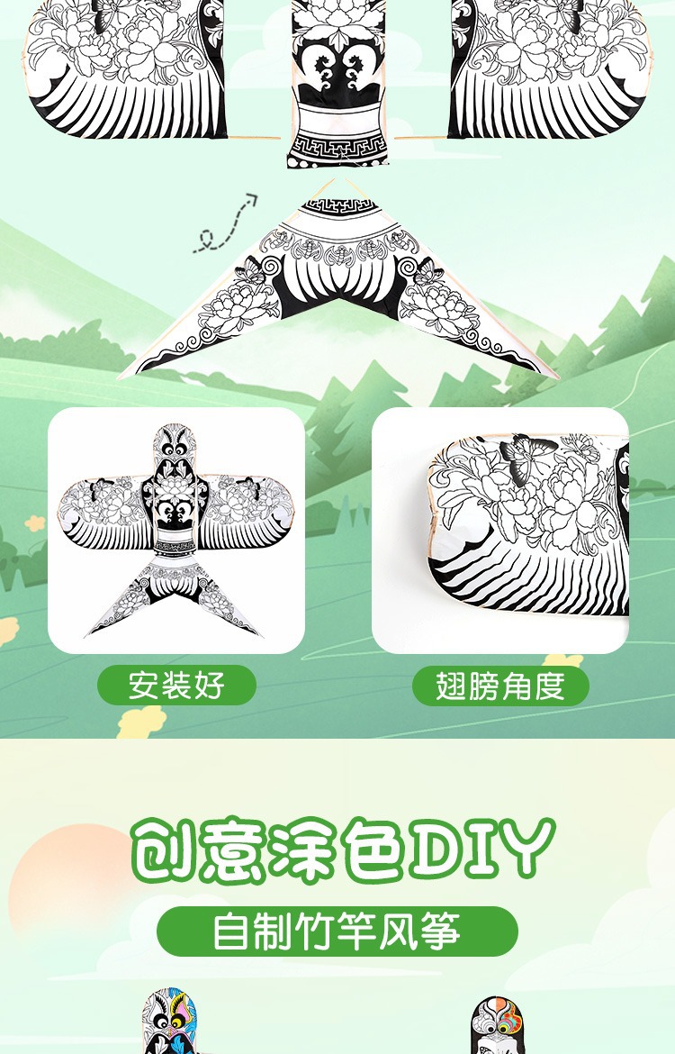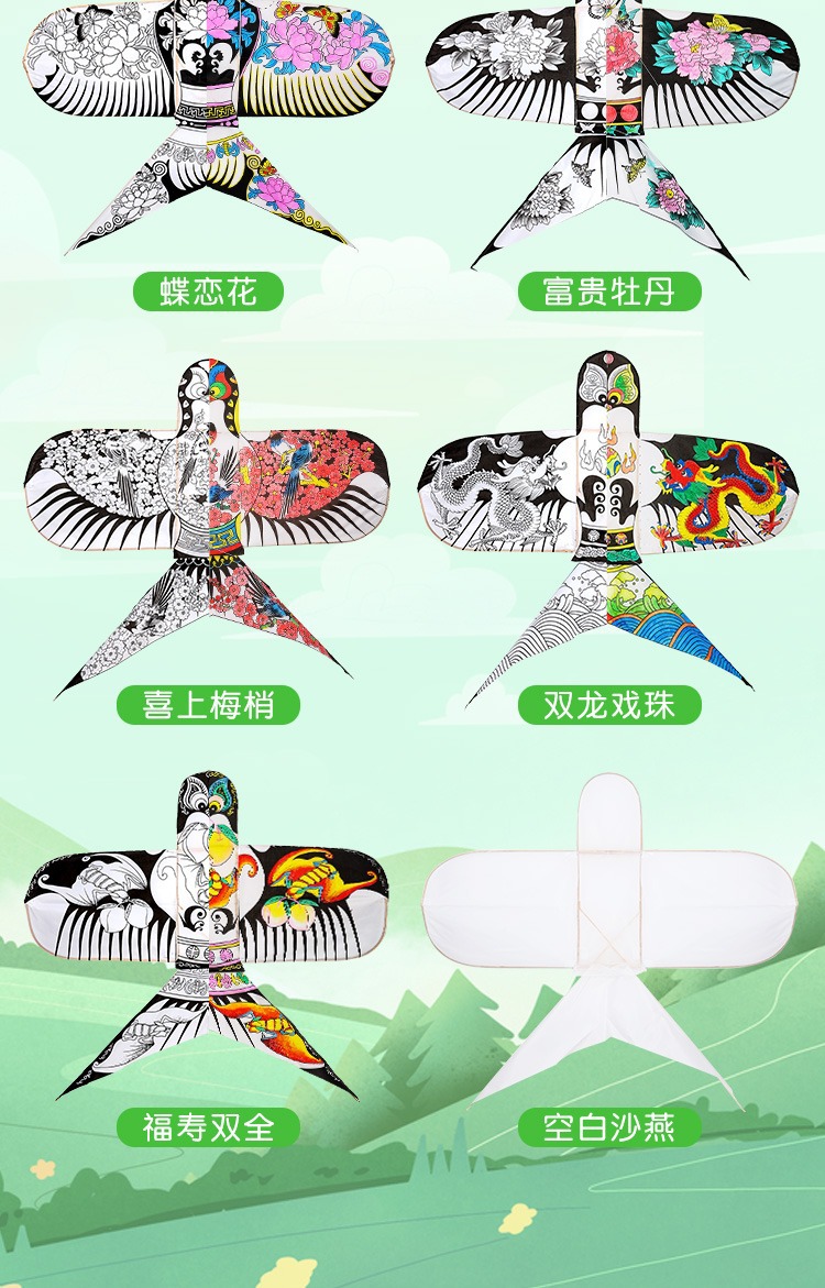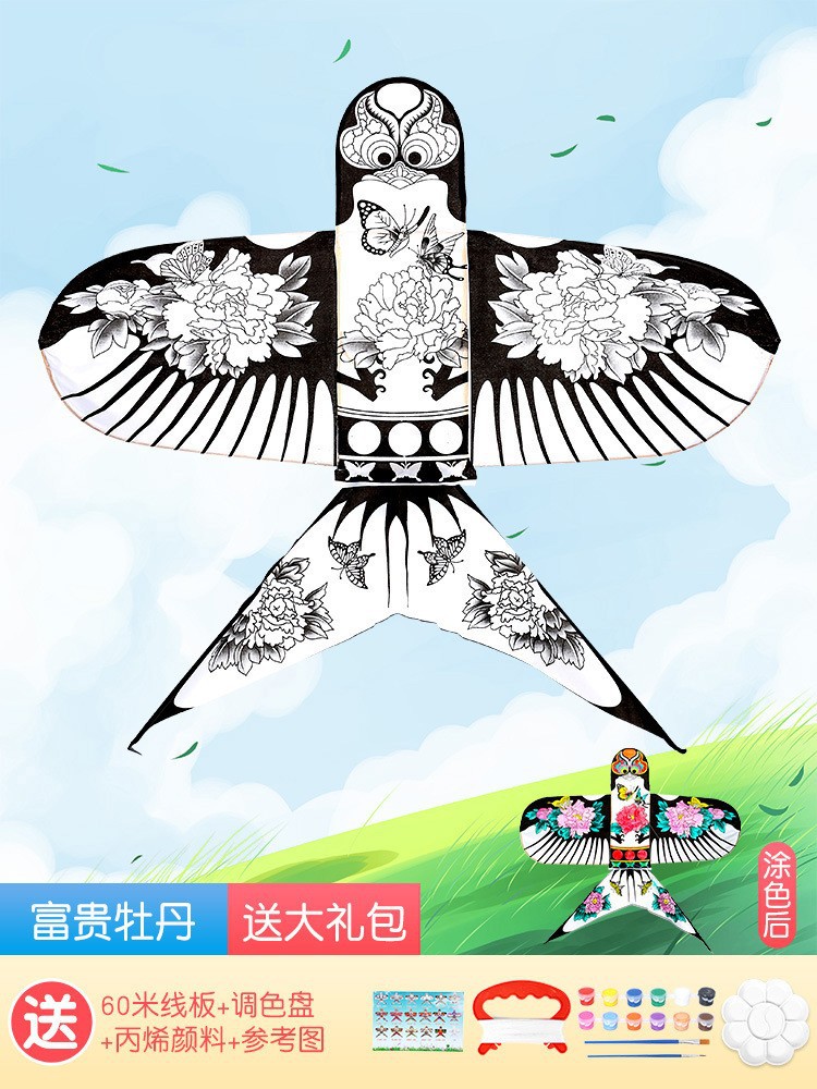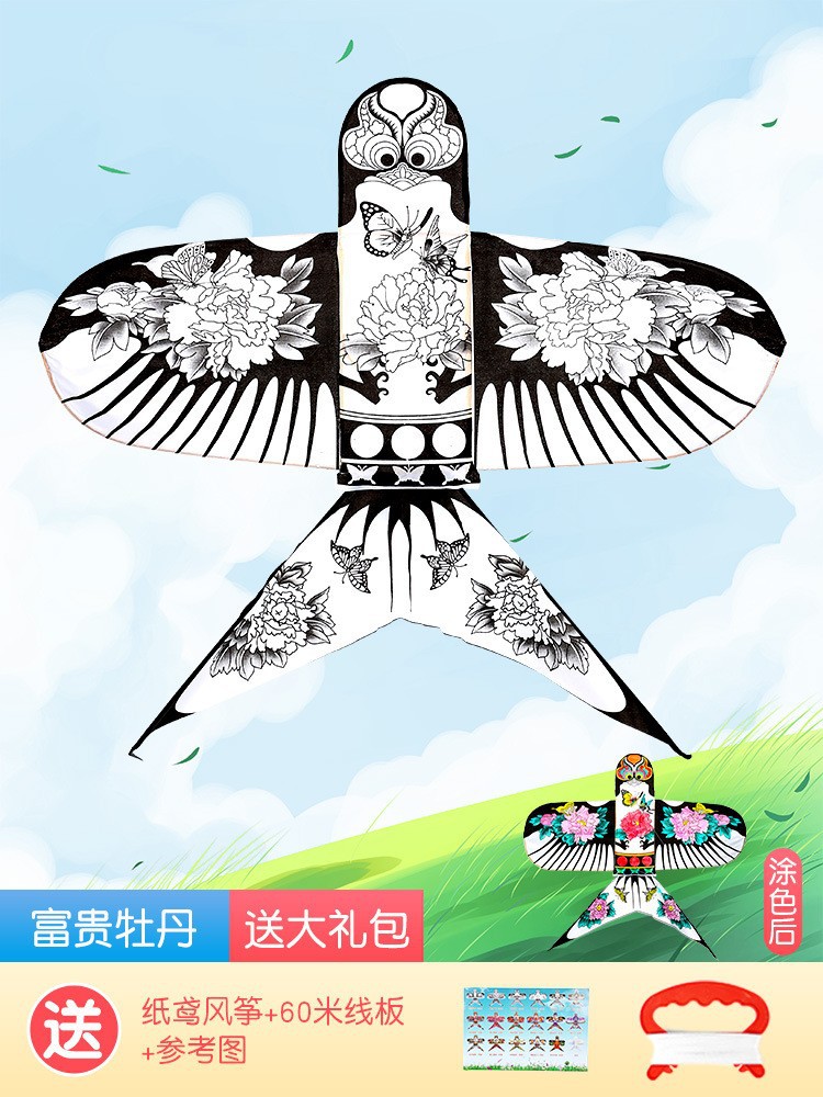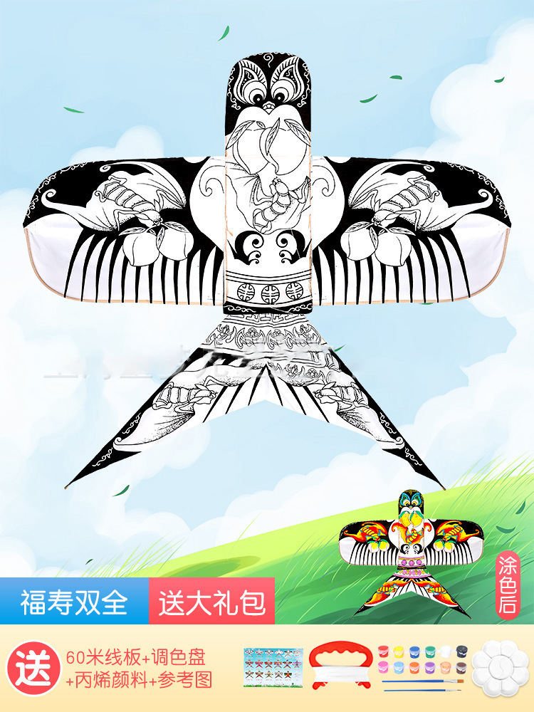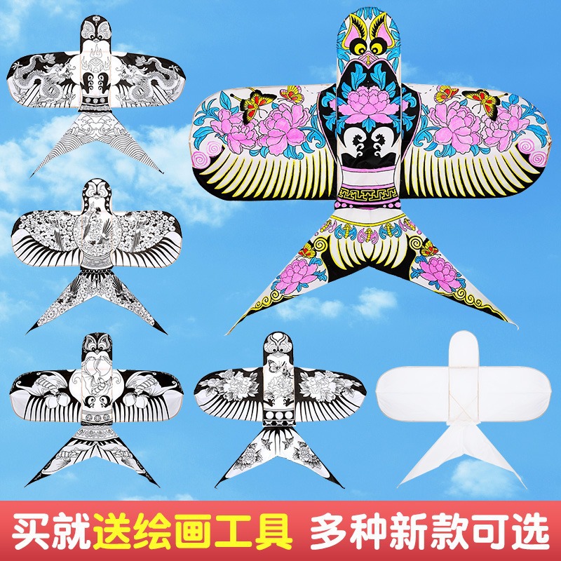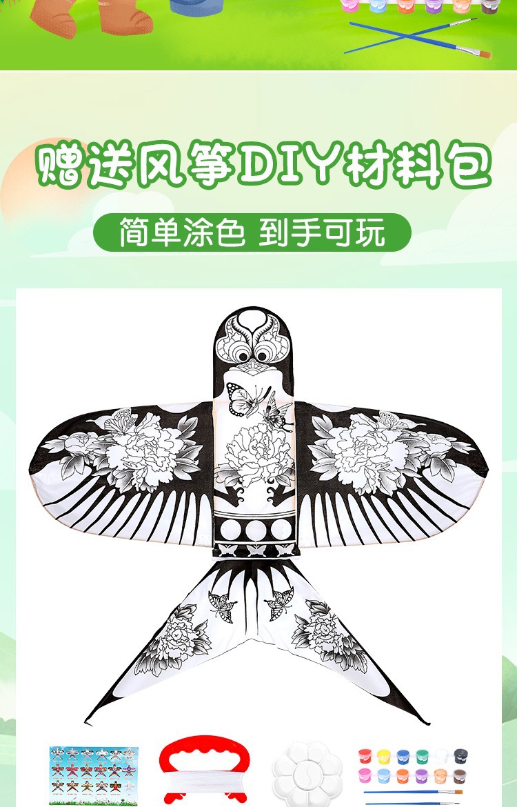 儿童手工diy空白绘画涂鸦手绘风筝古风纸鸢填色风筝沙燕diy材料包
