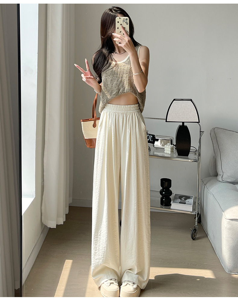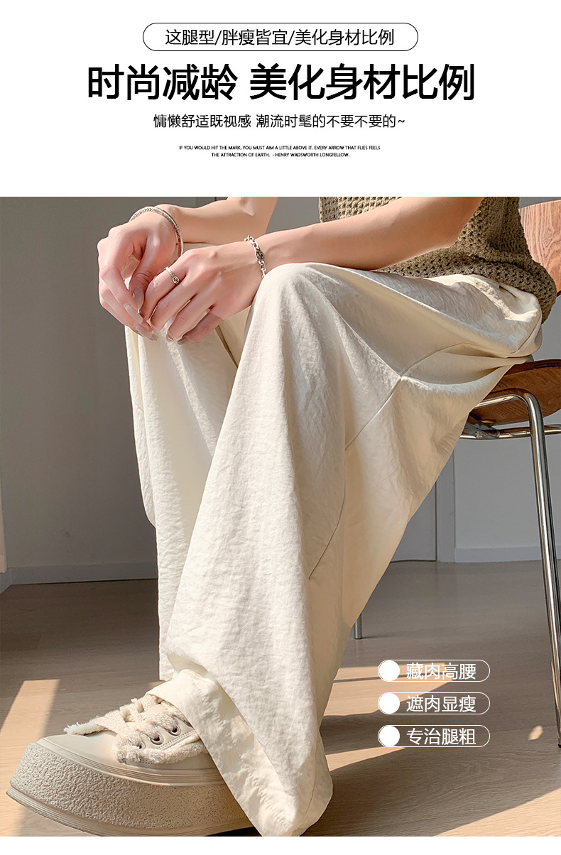 慵懒风肌理感阔腿裤女春夏2024新款垂感山本裤小个子高腰直筒拖地