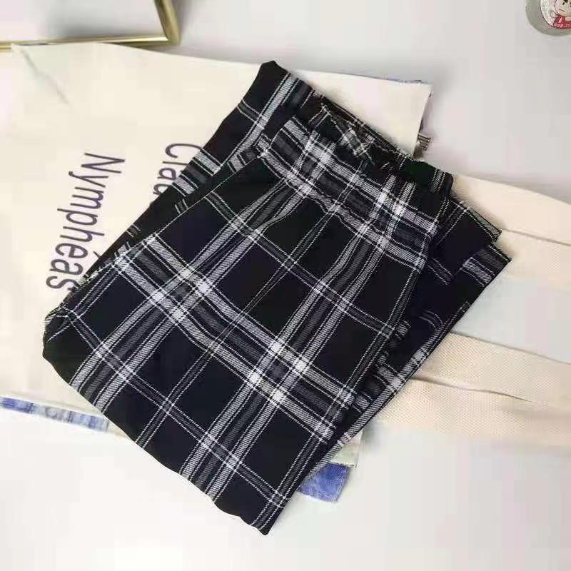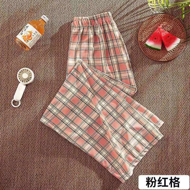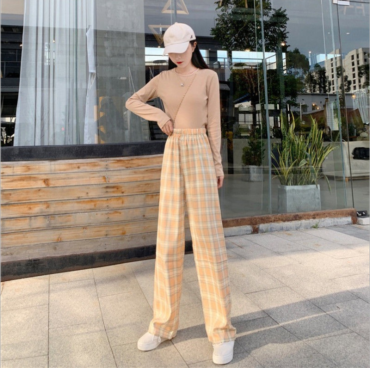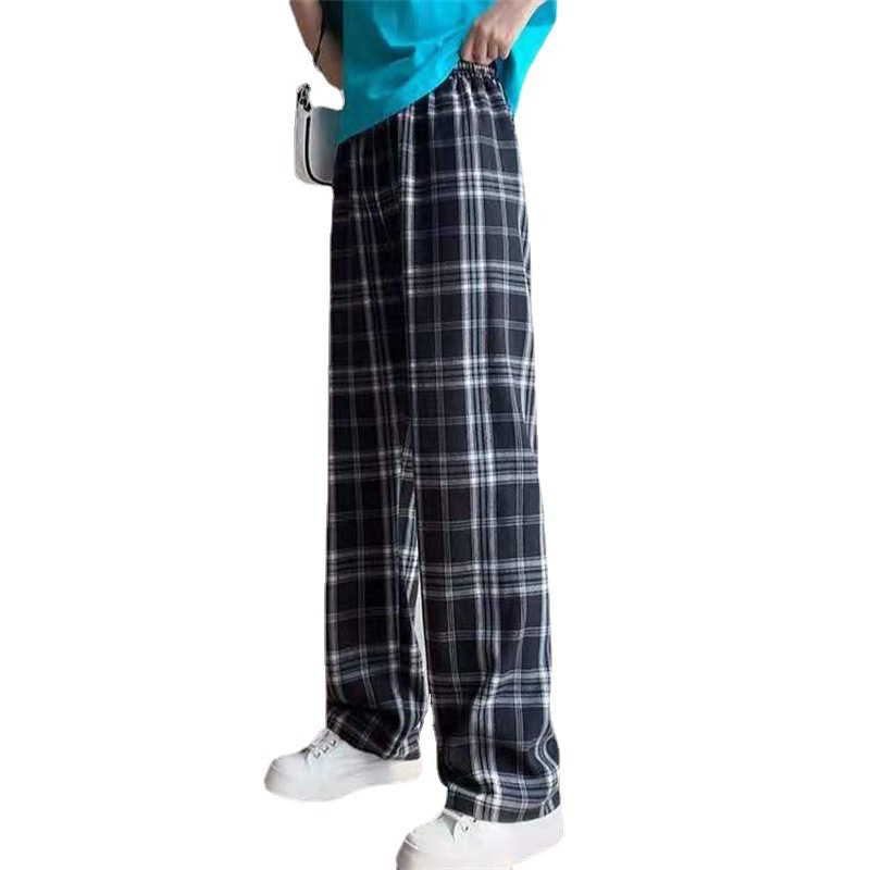格子阔腿裤女直播宽松垂感显瘦夏薄直筒裤休闲高腰格纹长裤港风裤