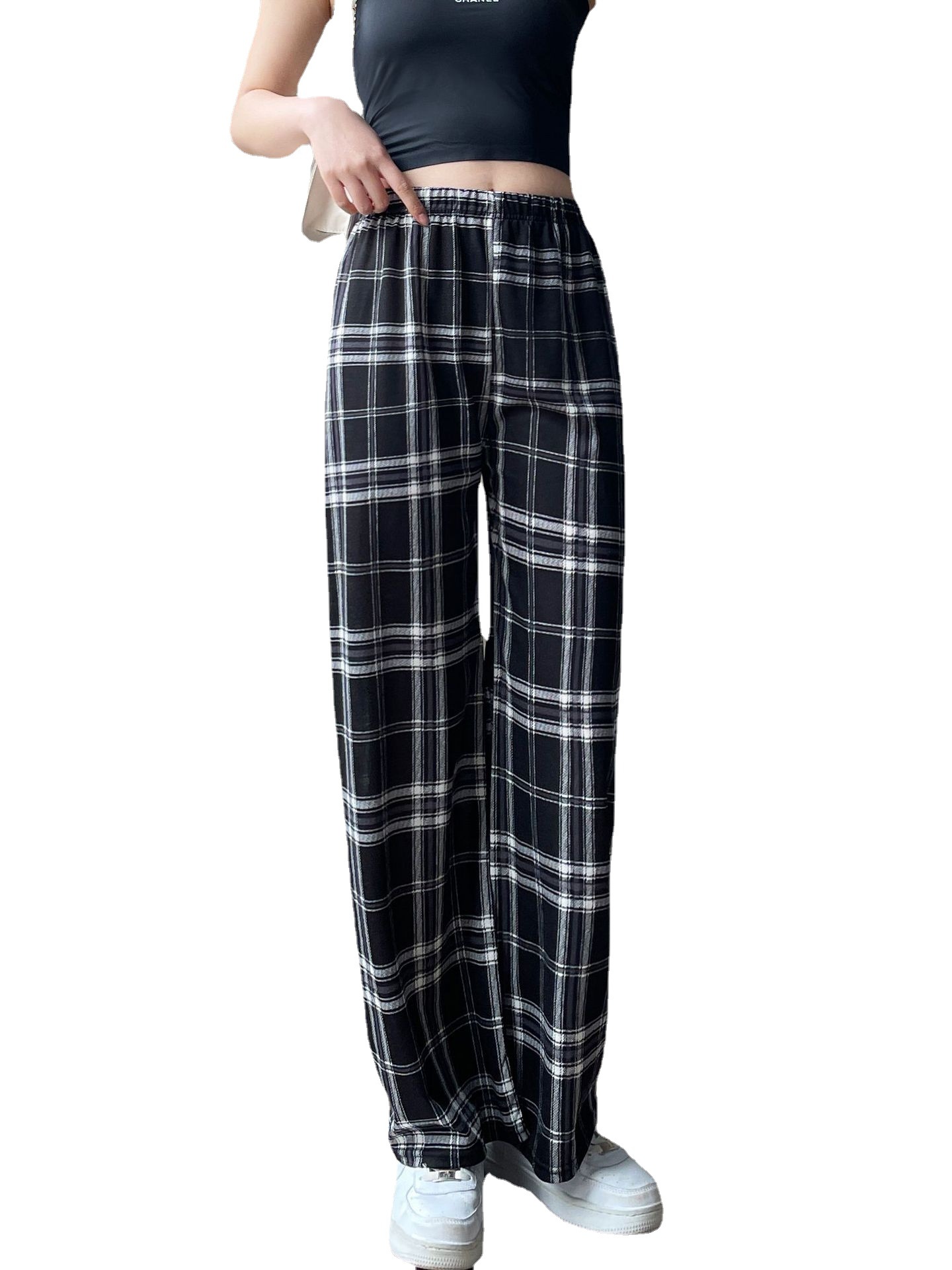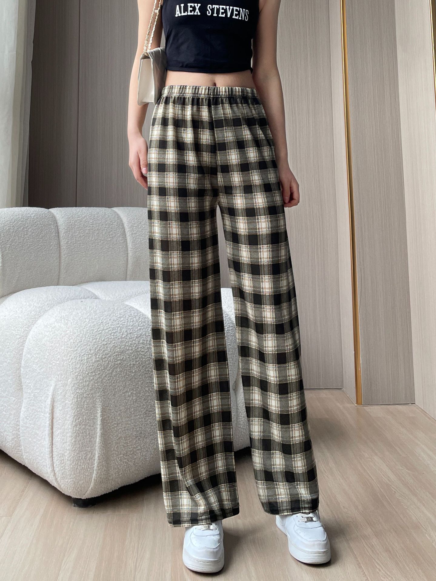 格子阔腿裤春夏薄款女学生大码百搭垂感高腰修身显瘦宽松直筒女裤