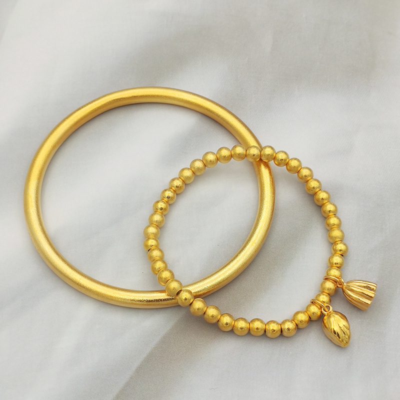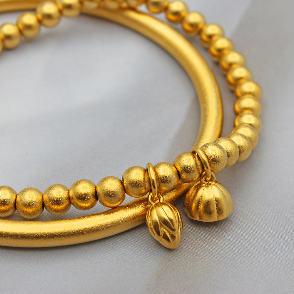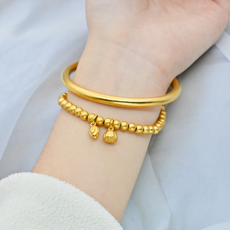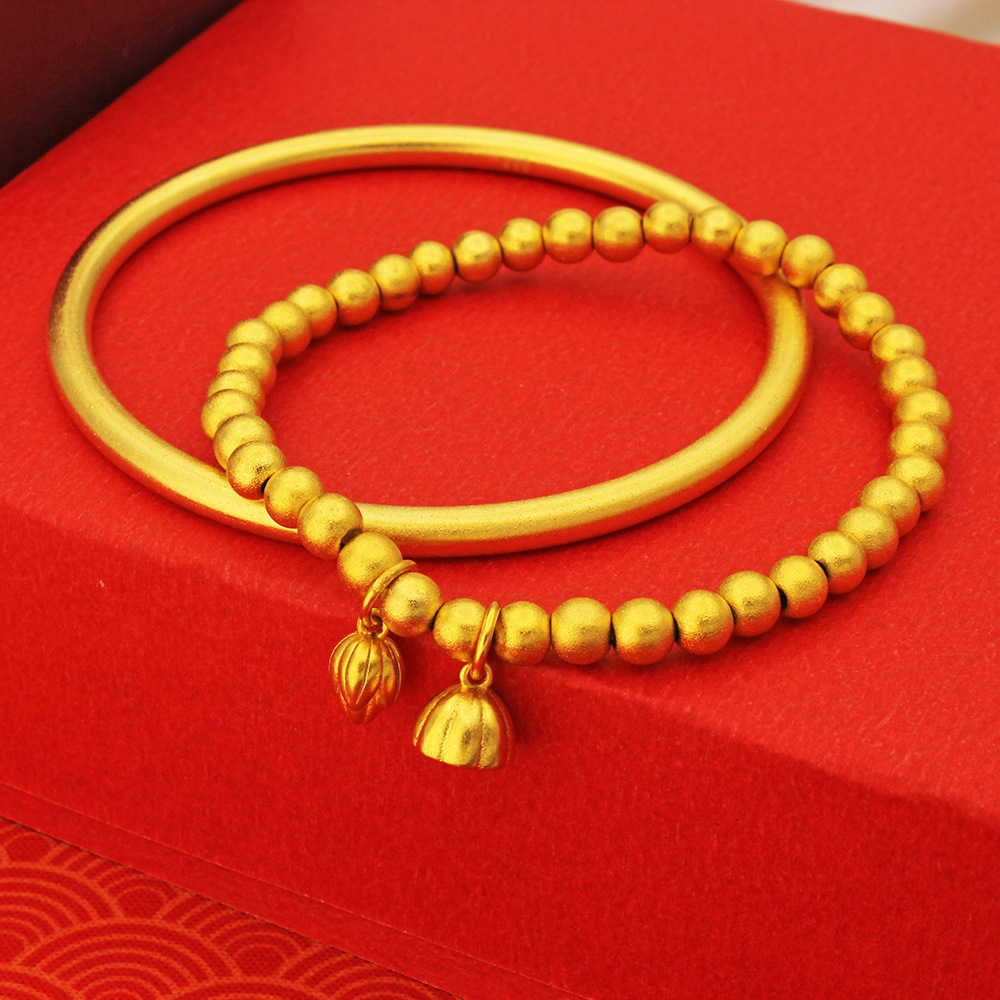 沙金手镯女两世欢古法传承莲蓬手镯手链莲花素圈24K镀金DIY手串