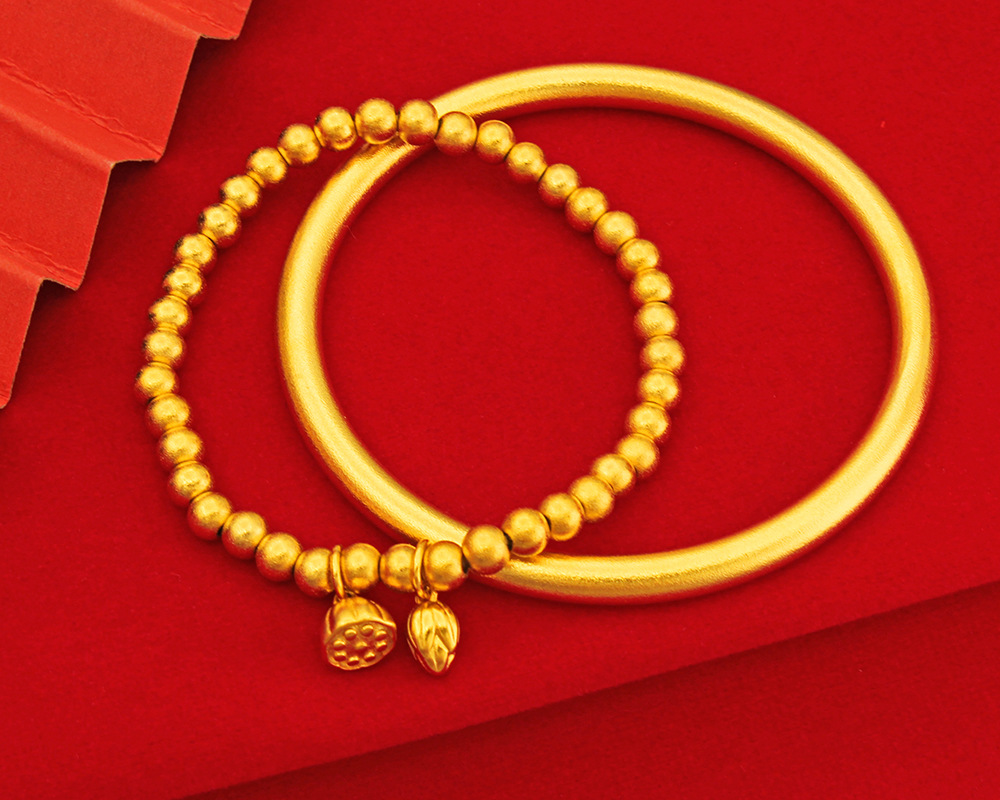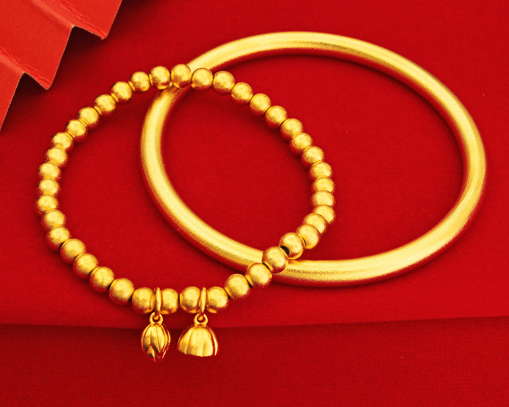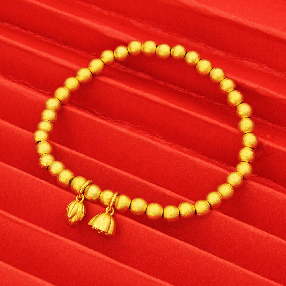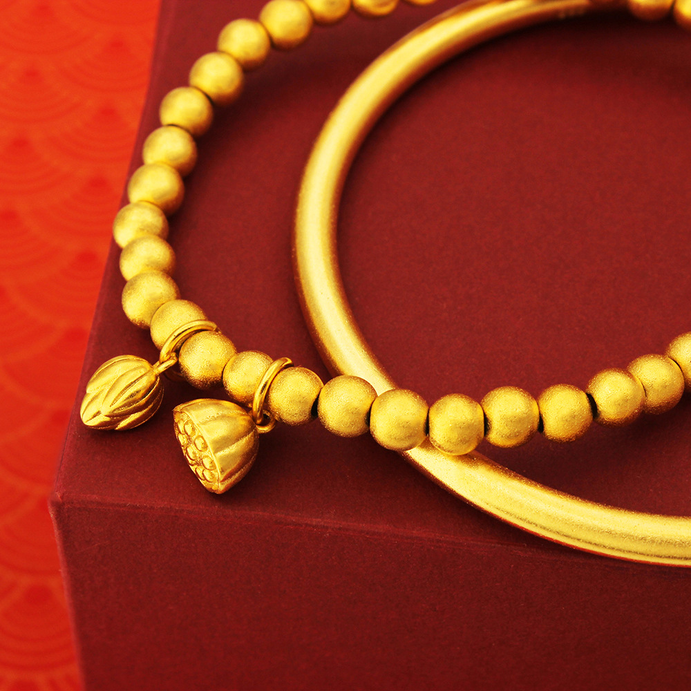 沙金手镯女两世欢古法传承莲蓬手镯手链莲花素圈24K镀金DIY手串
