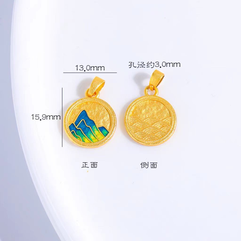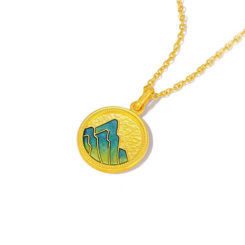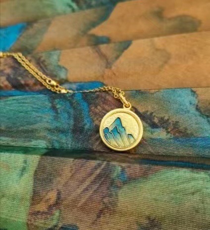 2024年新款金店同款沙金千里江山吊坠只此青绿项链沙金复古珐琅工