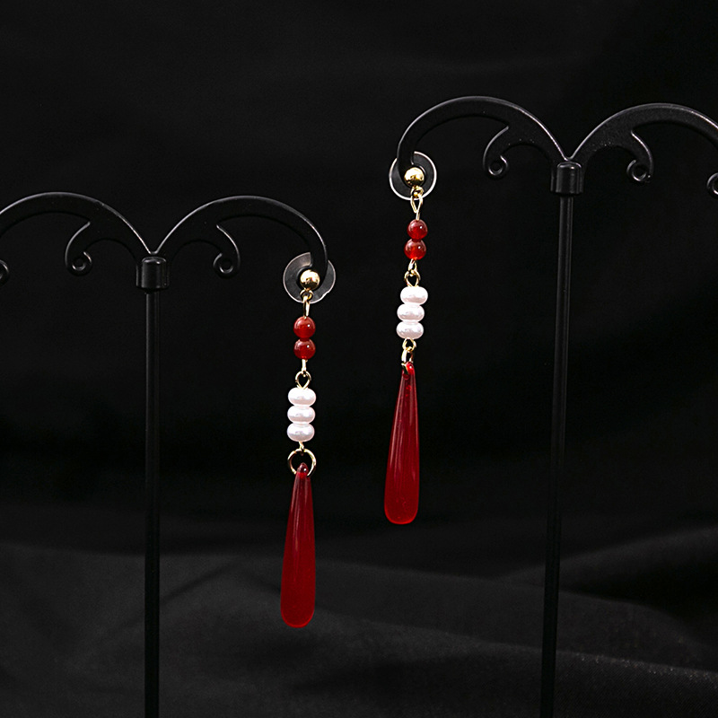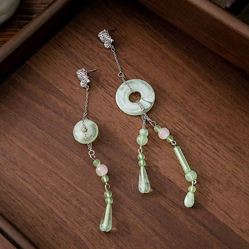 新中式仿玉滴油串珠耳环 中国风蝴蝶水滴流苏耳坠简约汉服配饰女