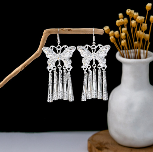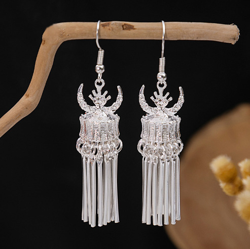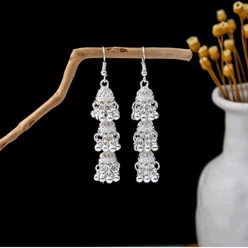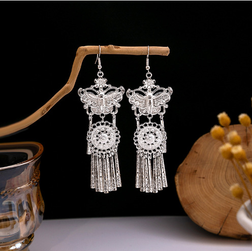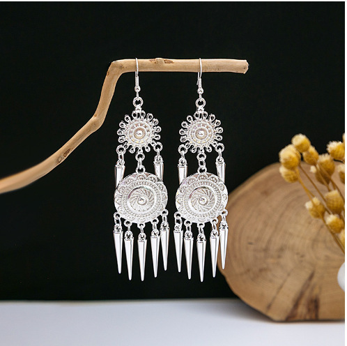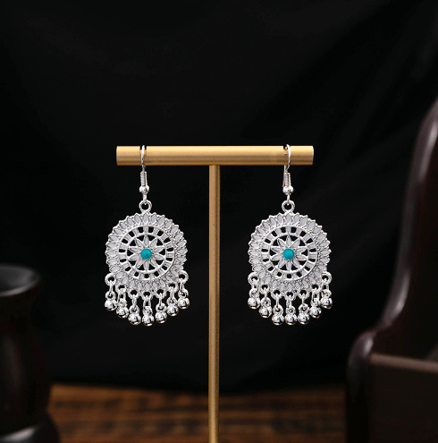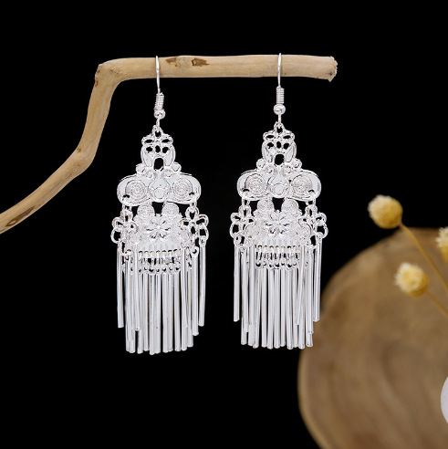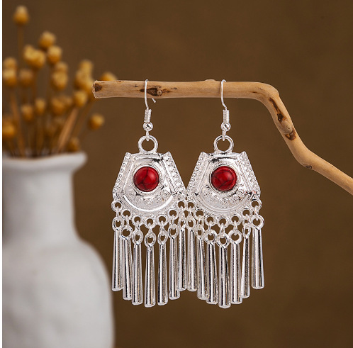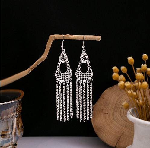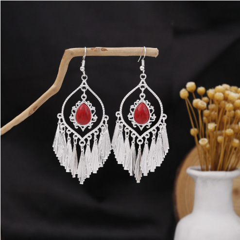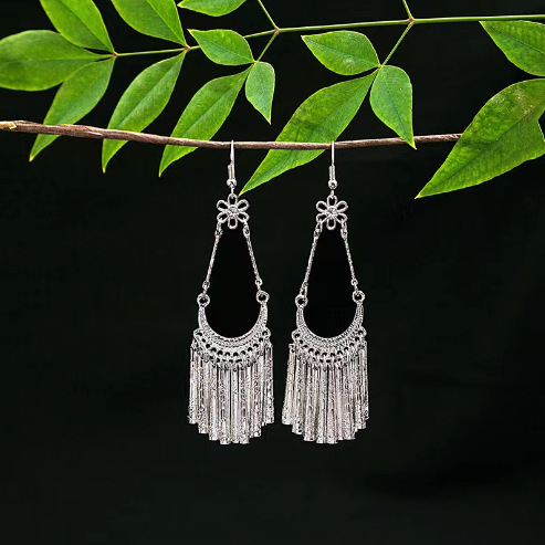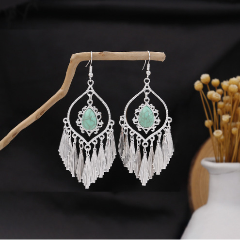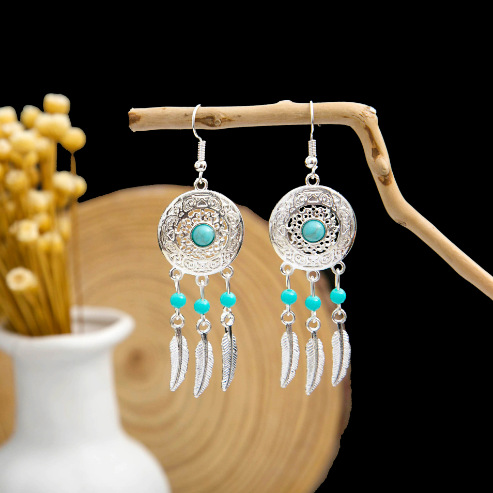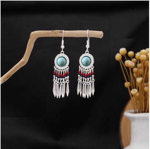 民族风仿银耳环 彩色长款羽毛流苏耳坠波西米亚景点热卖耳饰批发