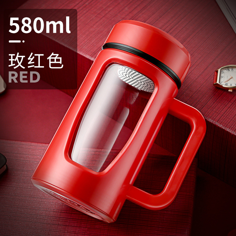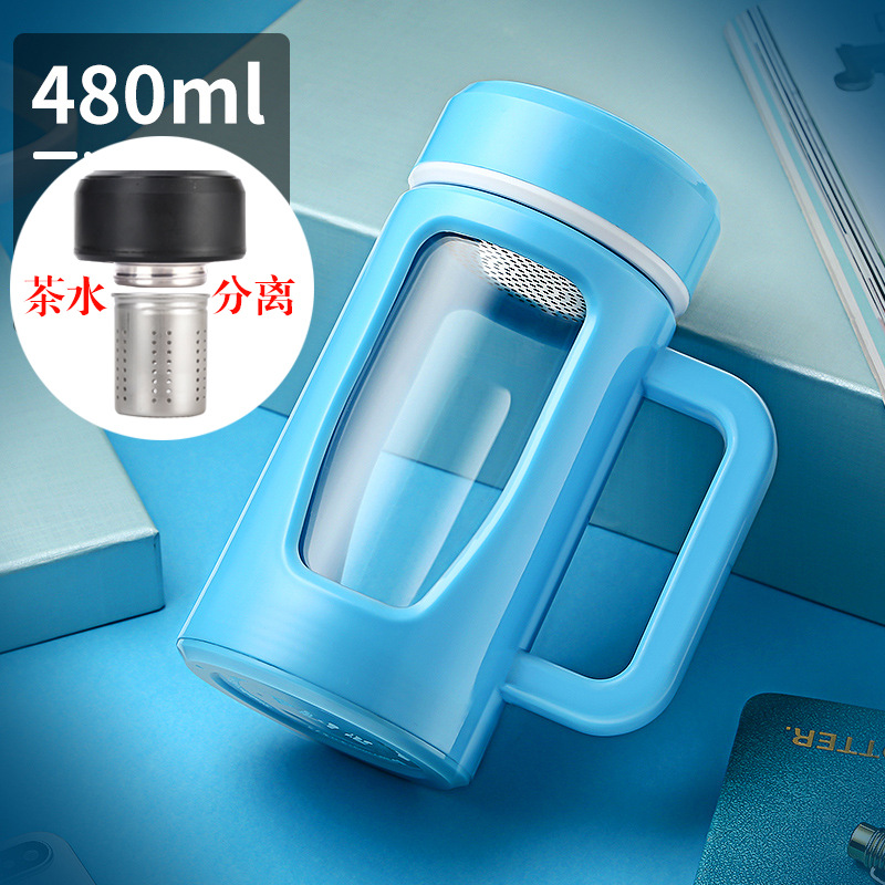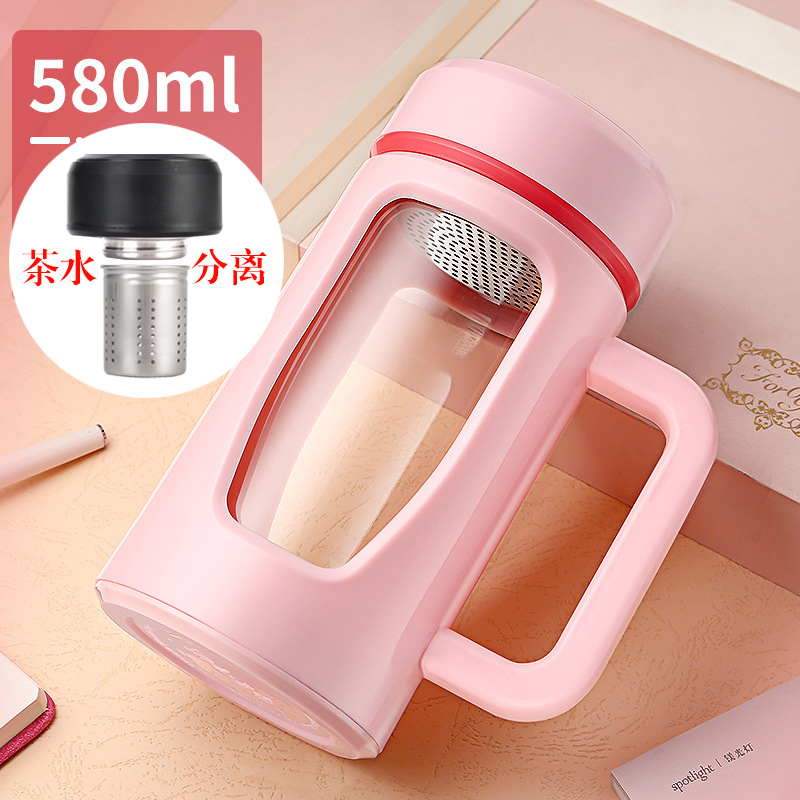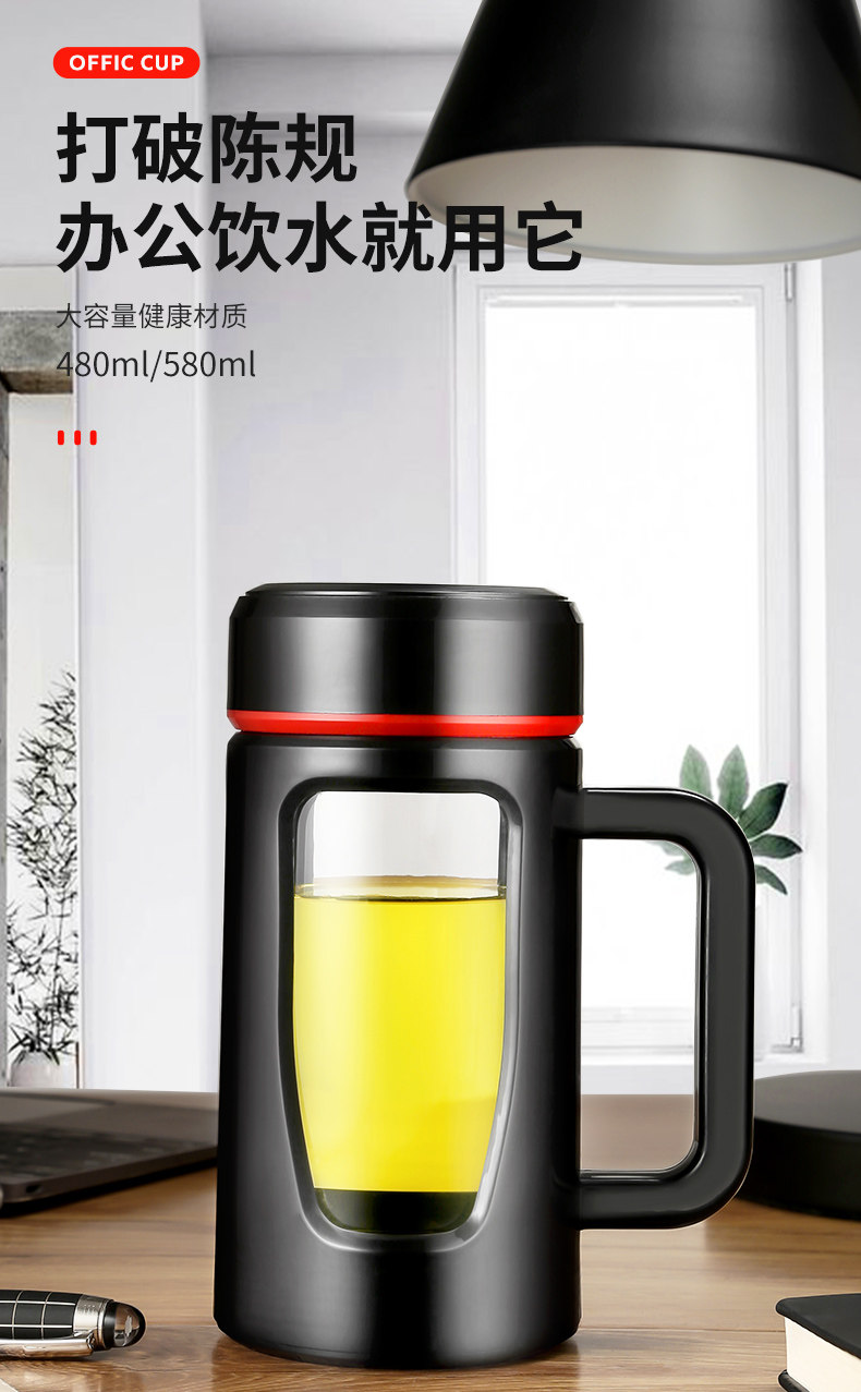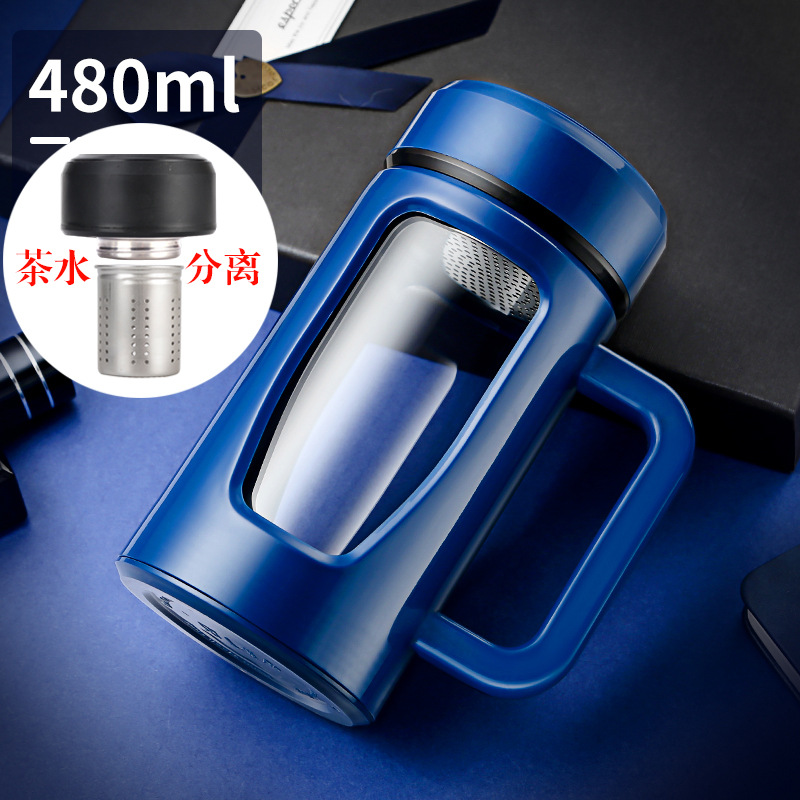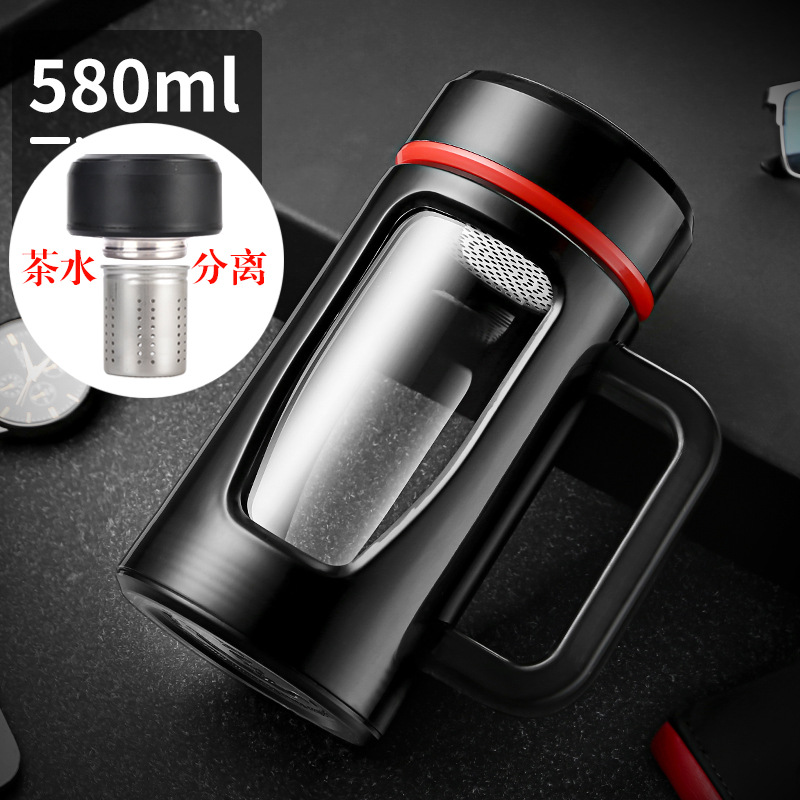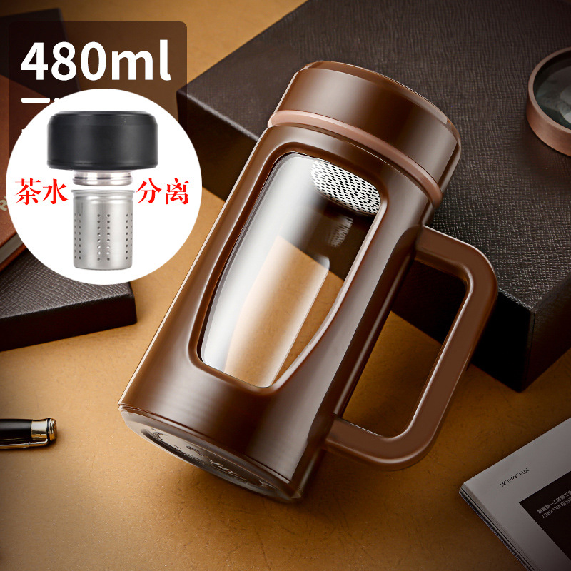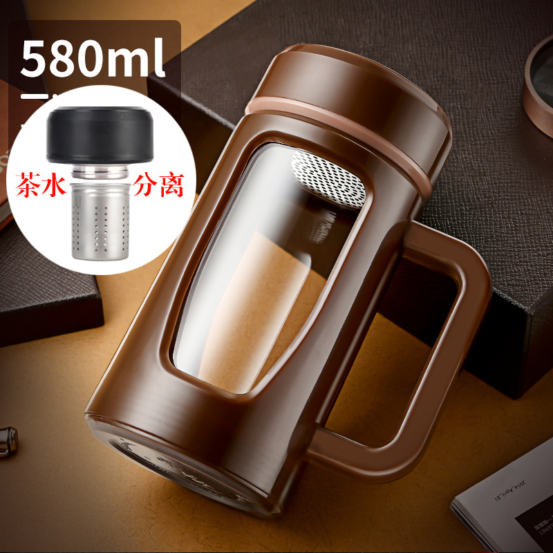 茶水杯大容量带把办公玻璃杯分离水杯男防摔带盖过滤泡茶杯子