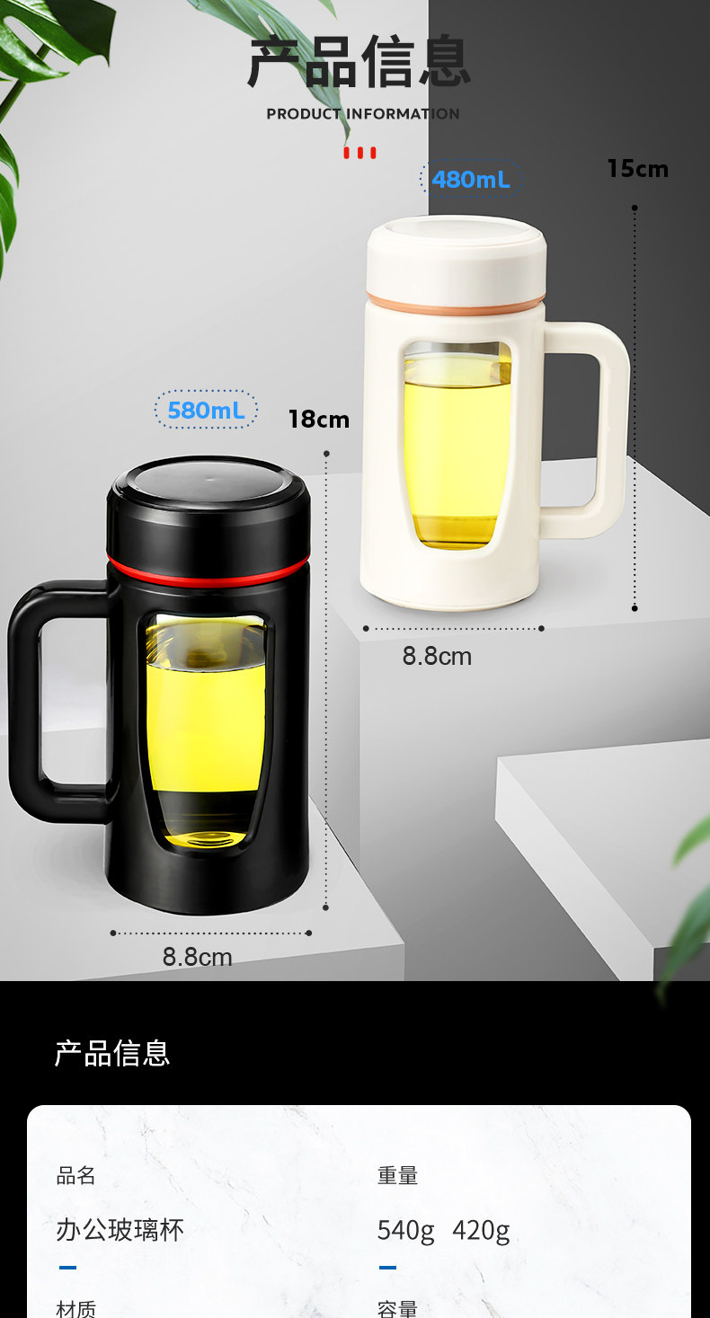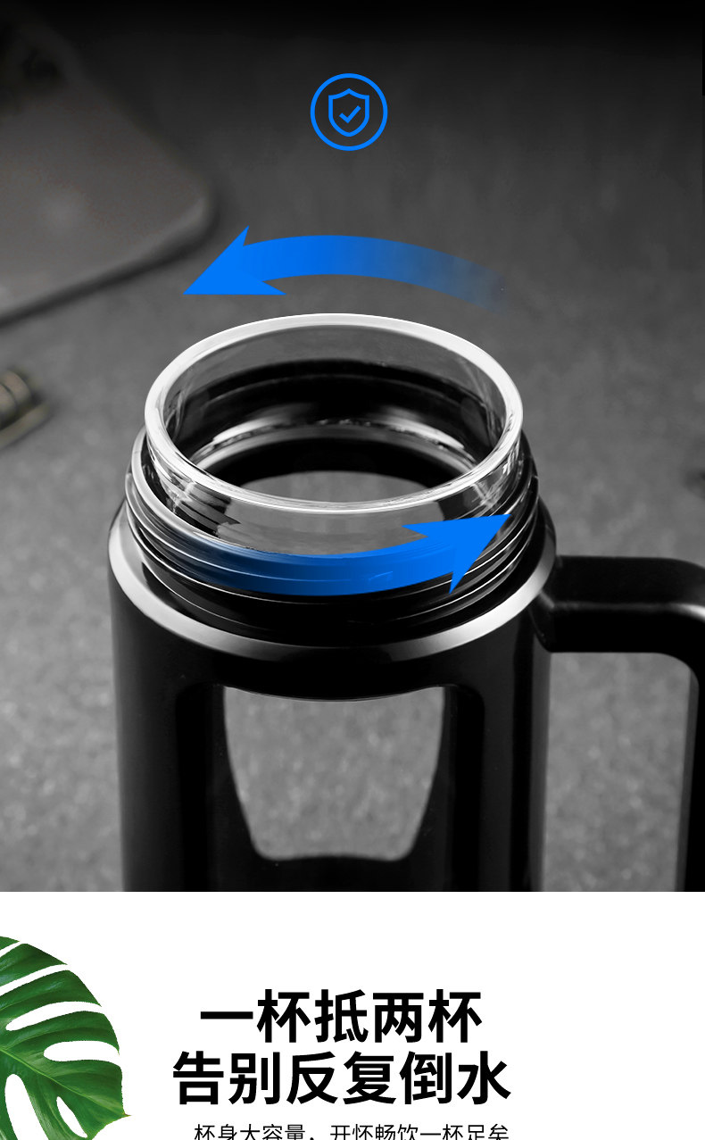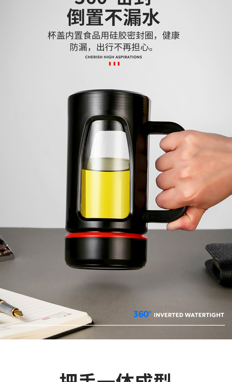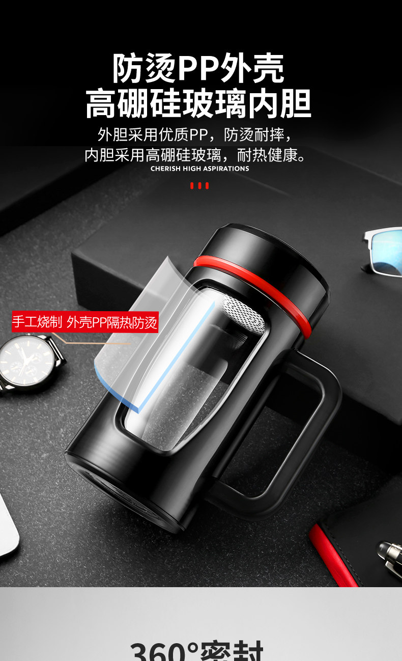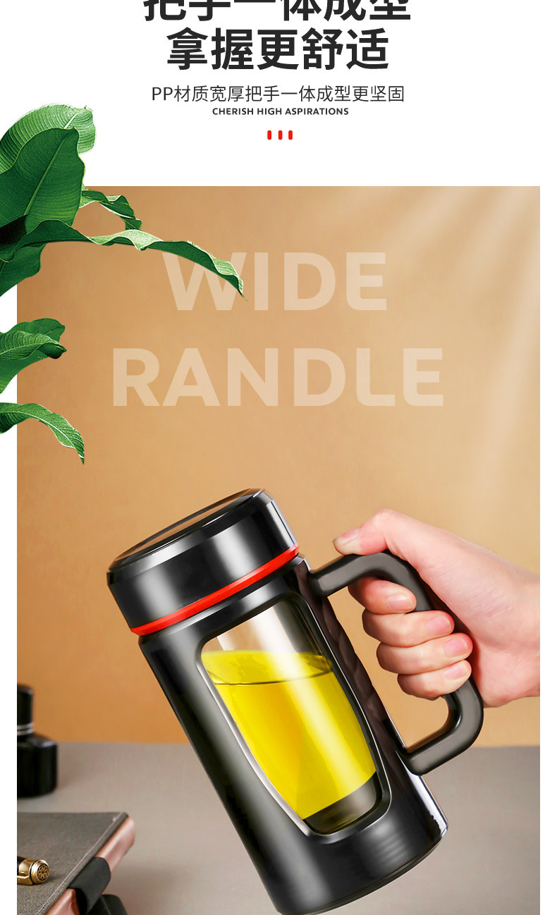 茶水杯大容量带把办公玻璃杯分离水杯男防摔带盖过滤泡茶杯子