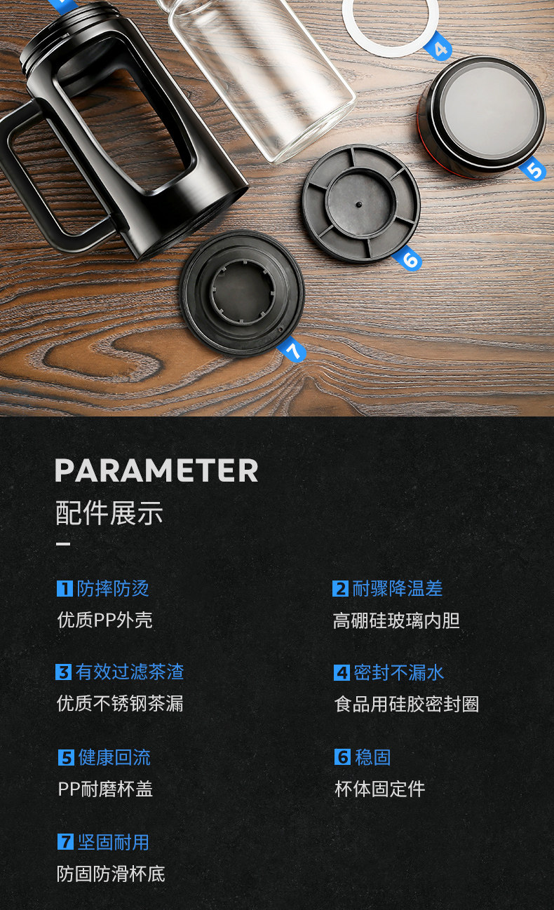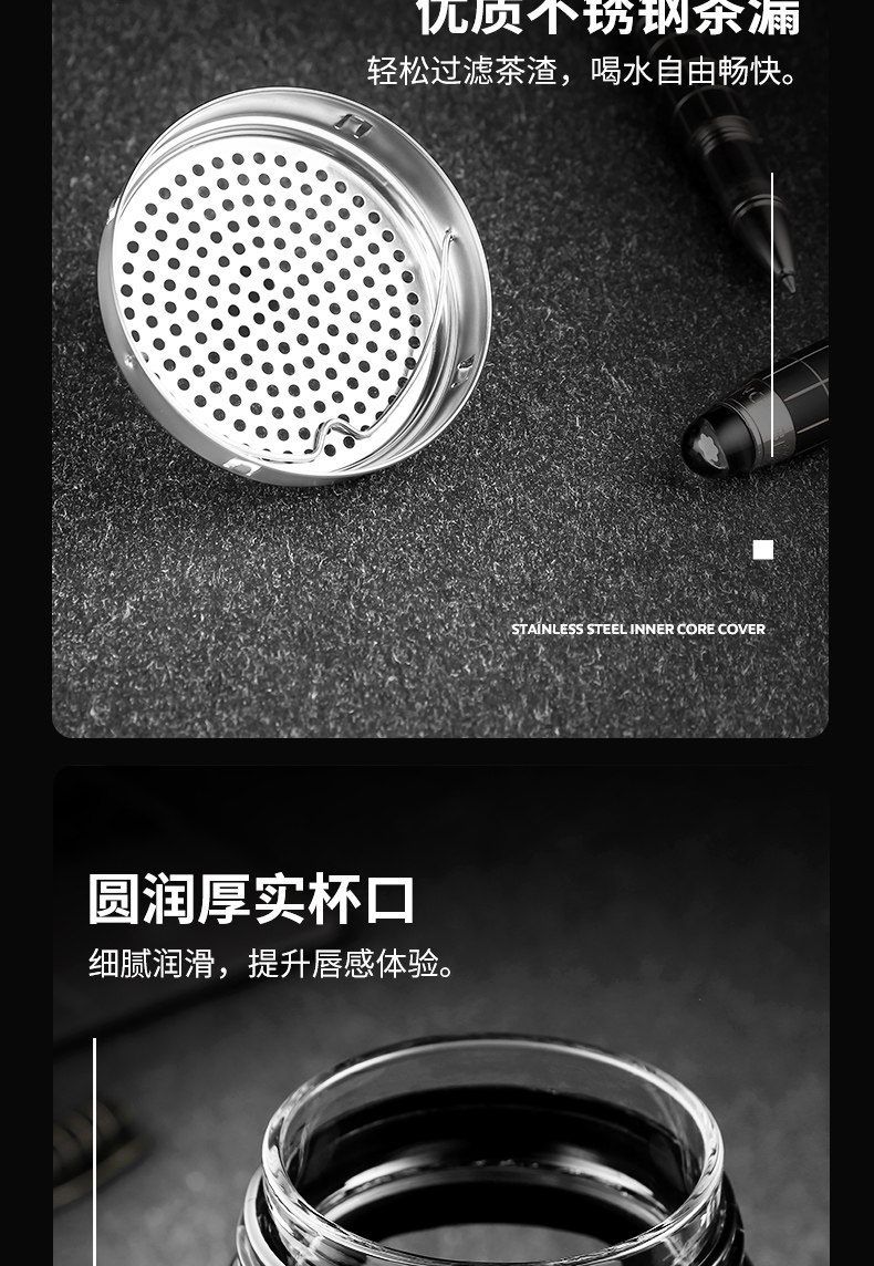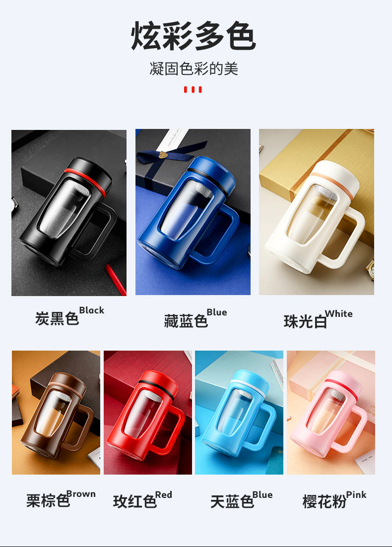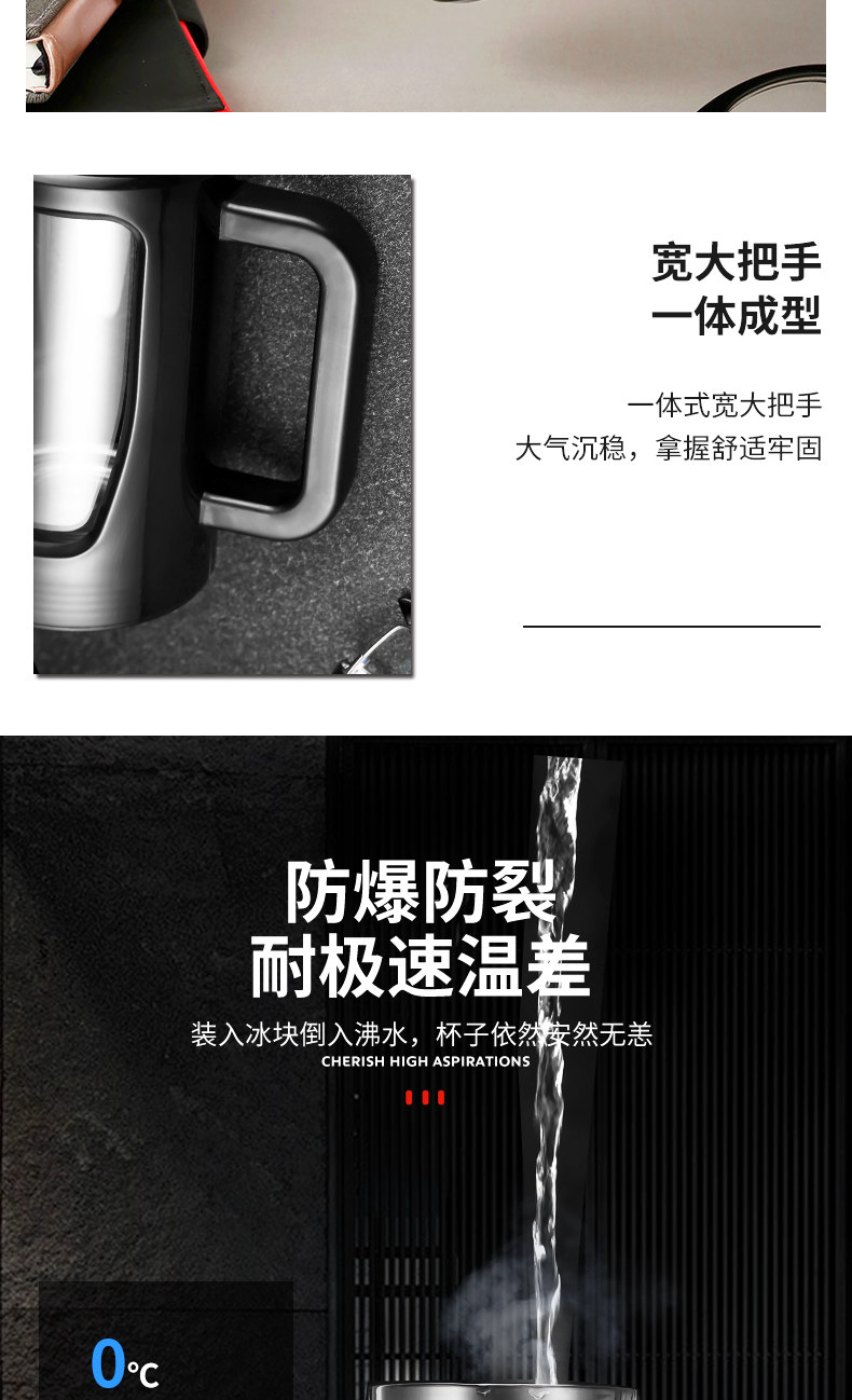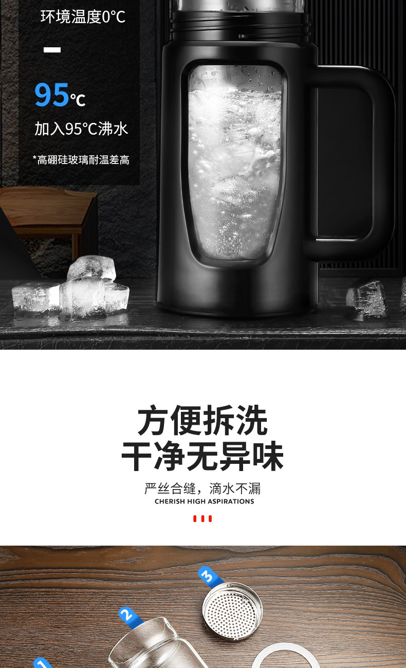 茶水杯大容量带把办公玻璃杯分离水杯男防摔带盖过滤泡茶杯子