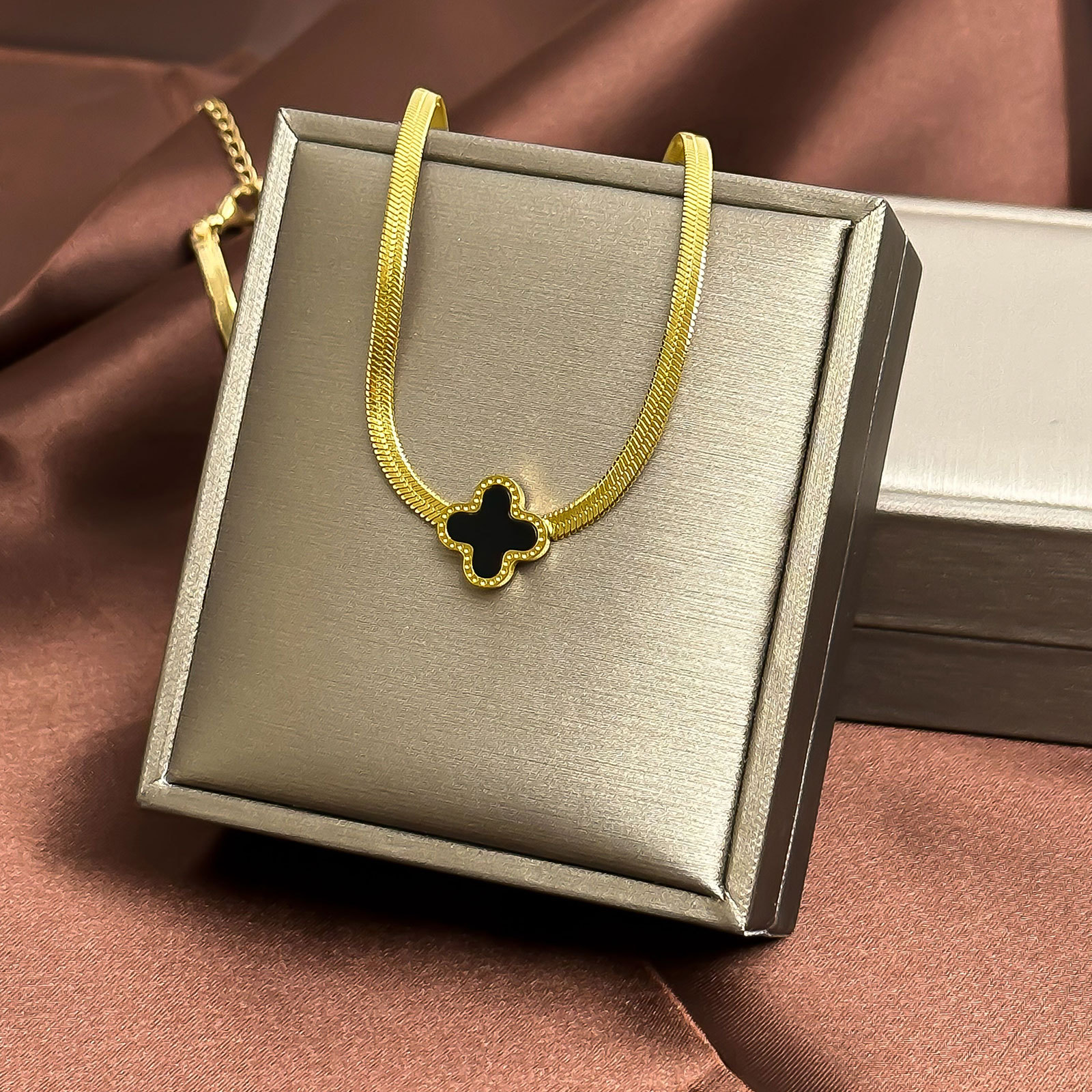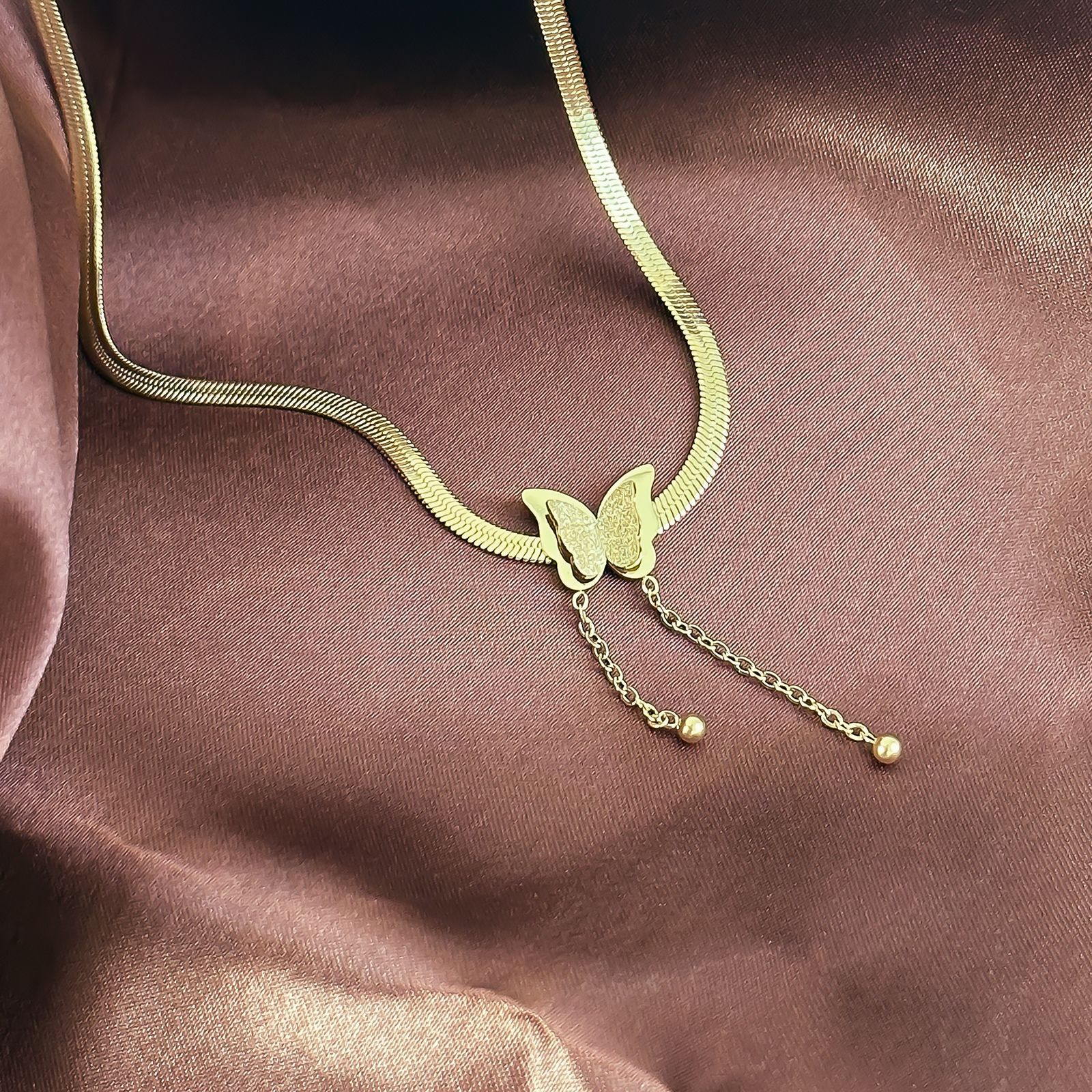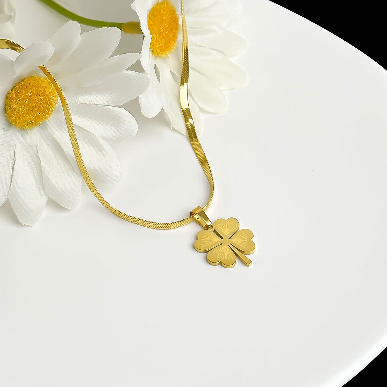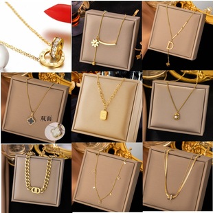 钛钢吊坠手链首饰挂件女生百搭四叶草锁骨链项链饰品蝴蝶耳夹配饰