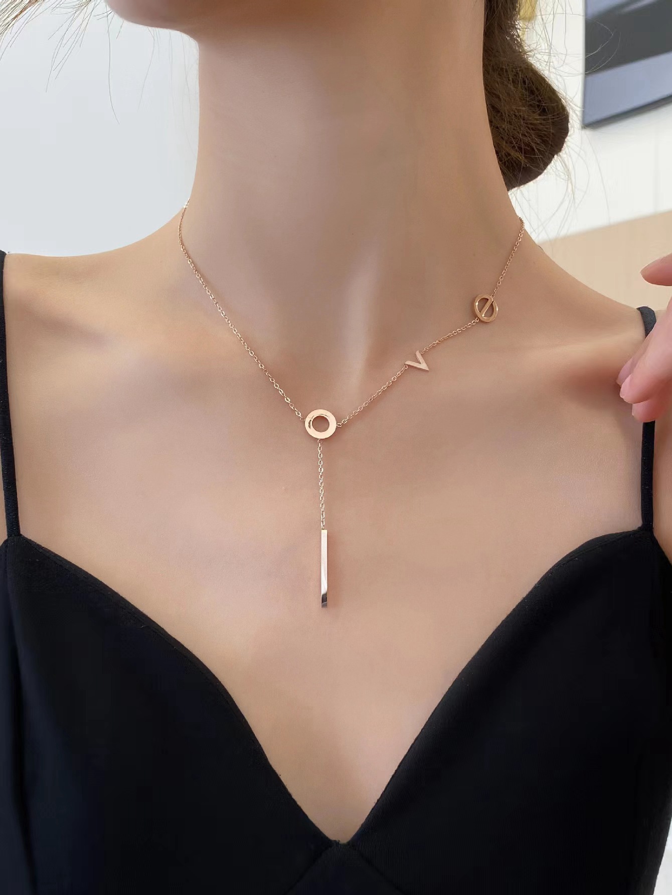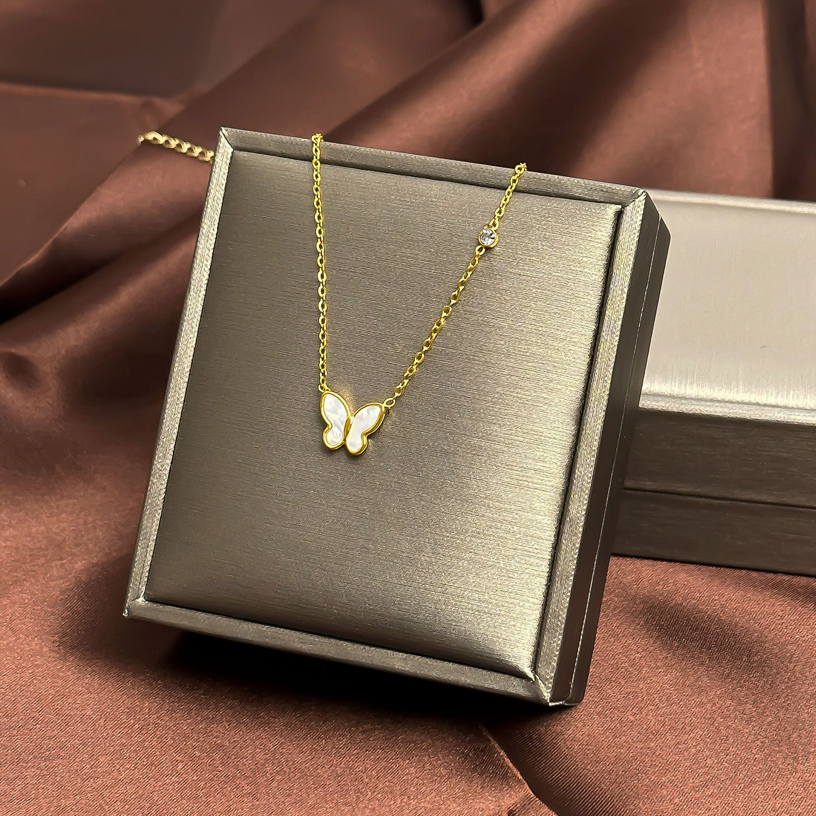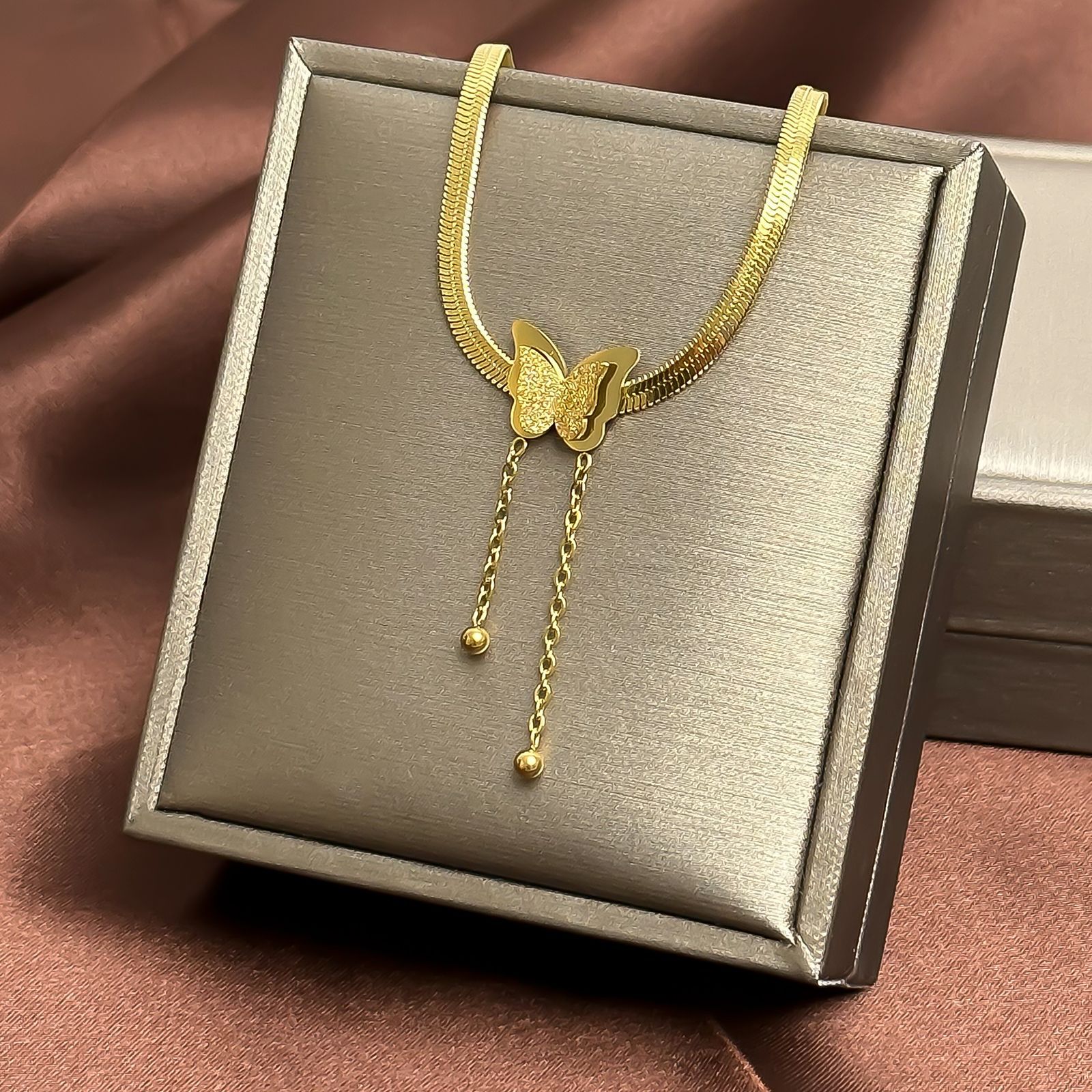 钛钢吊坠手链首饰挂件女生百搭四叶草锁骨链项链饰品蝴蝶耳夹配饰