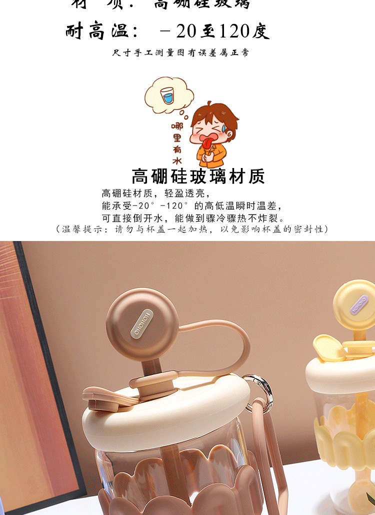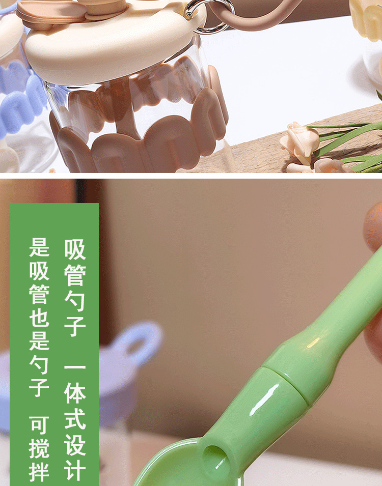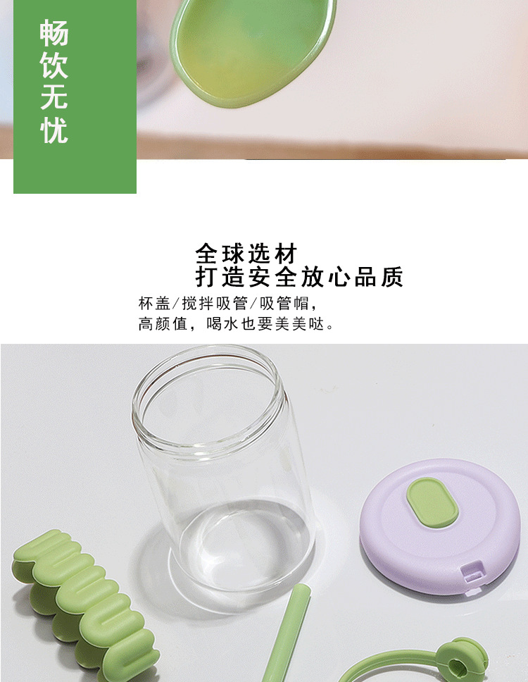 搅拌吸管杯玻璃水杯新款ins风高颜值网红家用耐高温玻璃杯带杯套