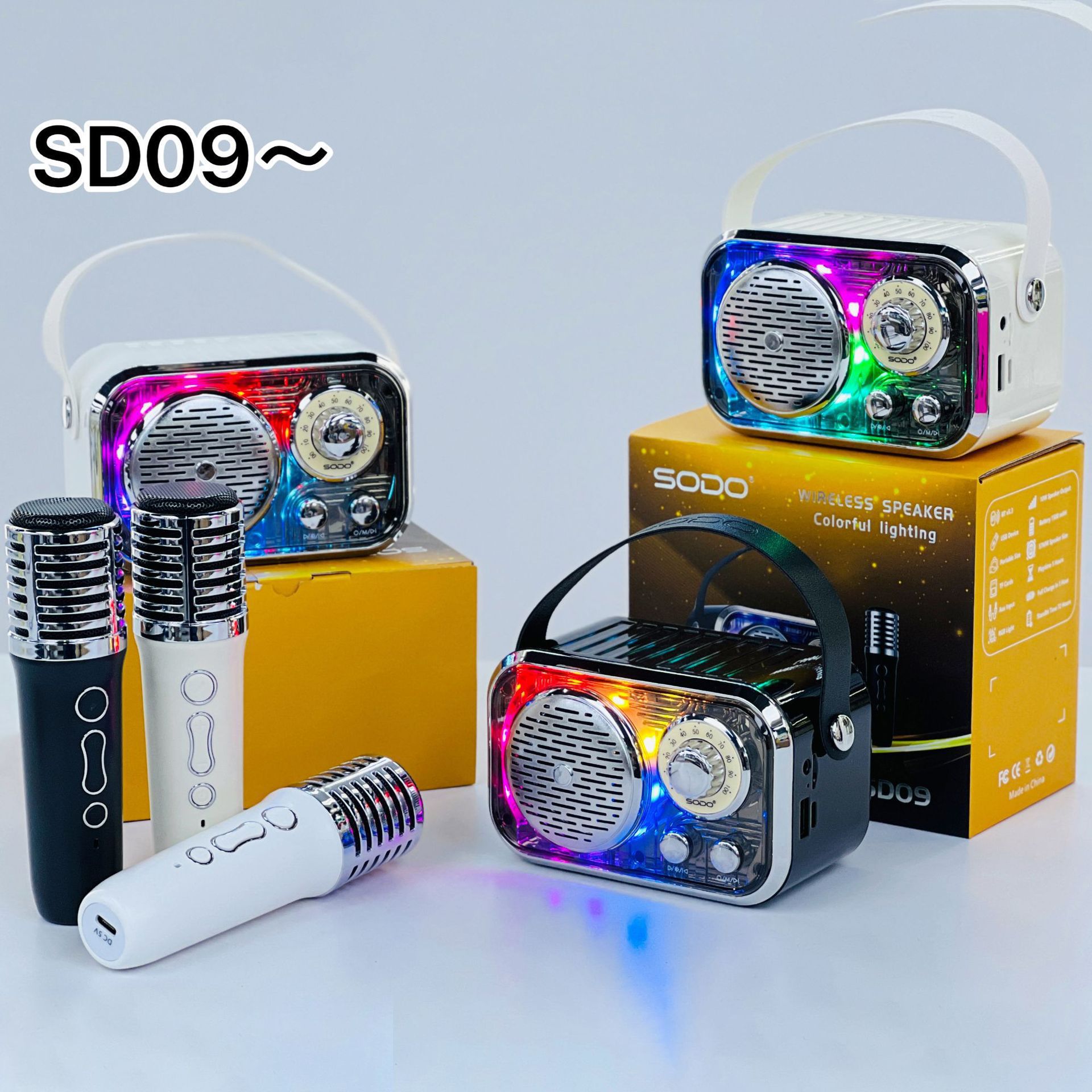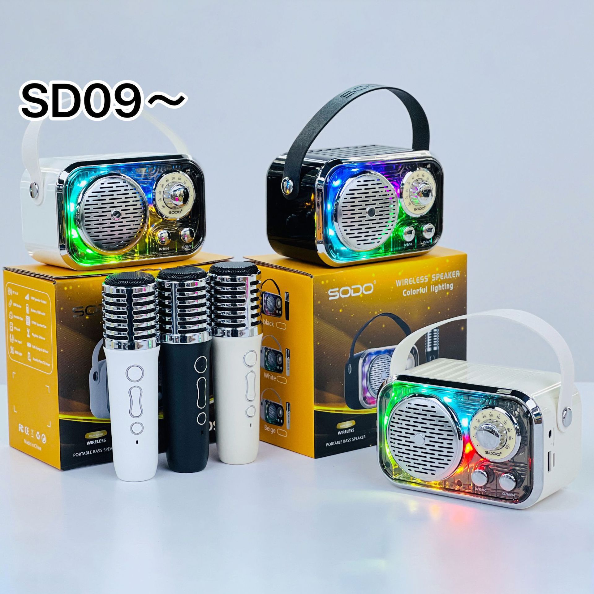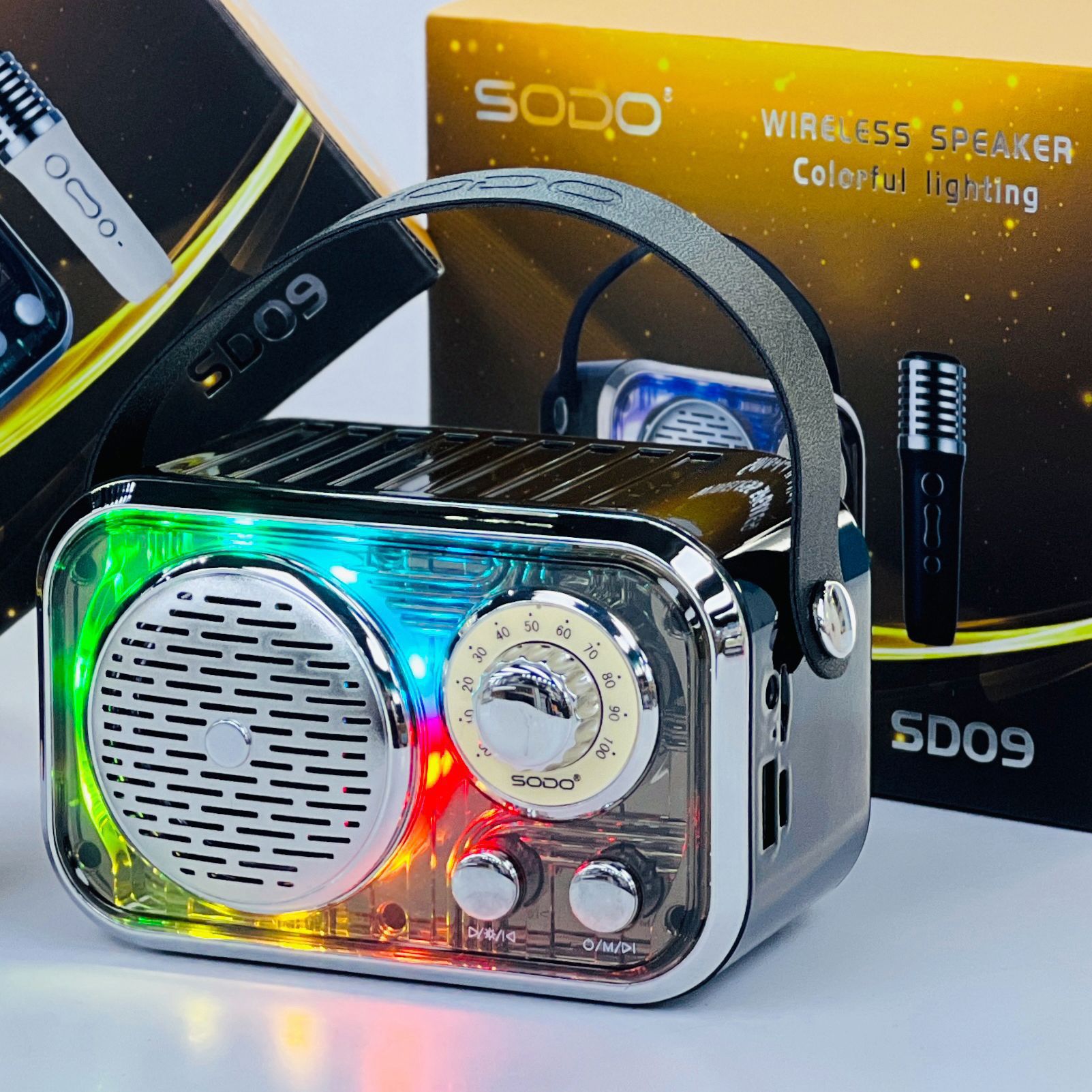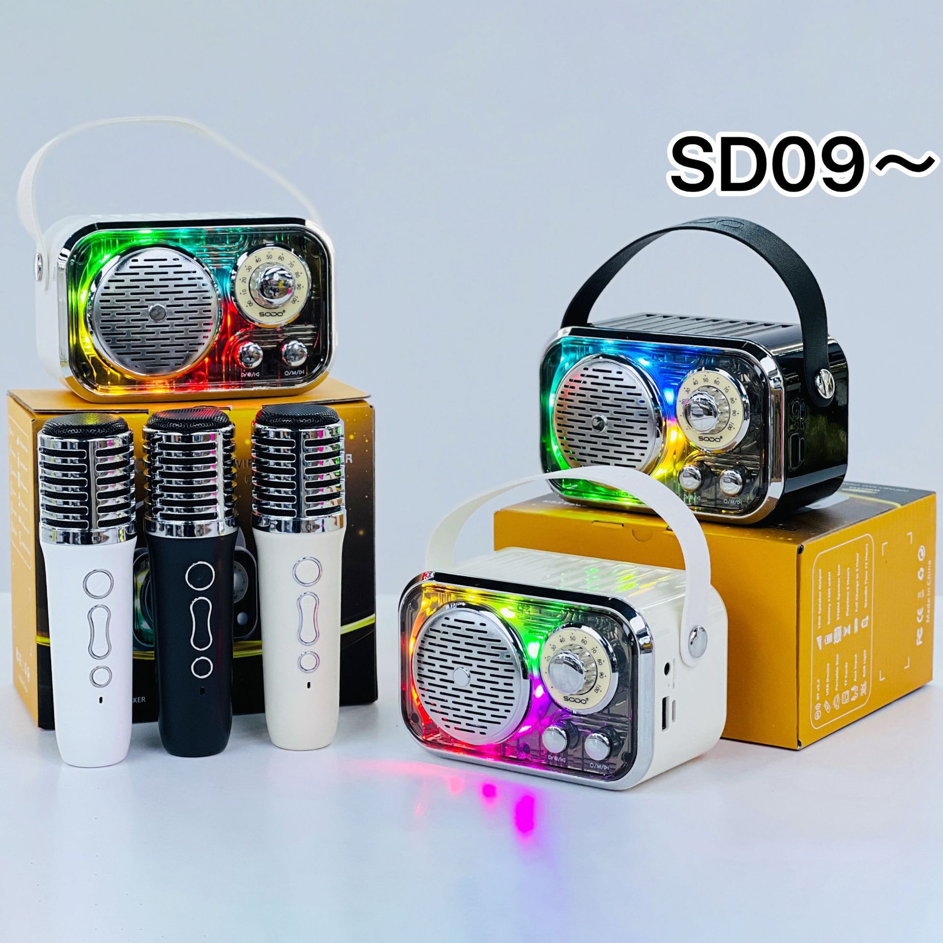 SD09 跨境爆款复古机甲蓝牙音箱无线麦克风K歌手提户外创意小音响