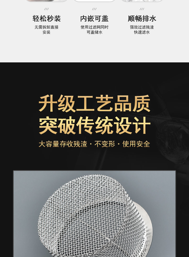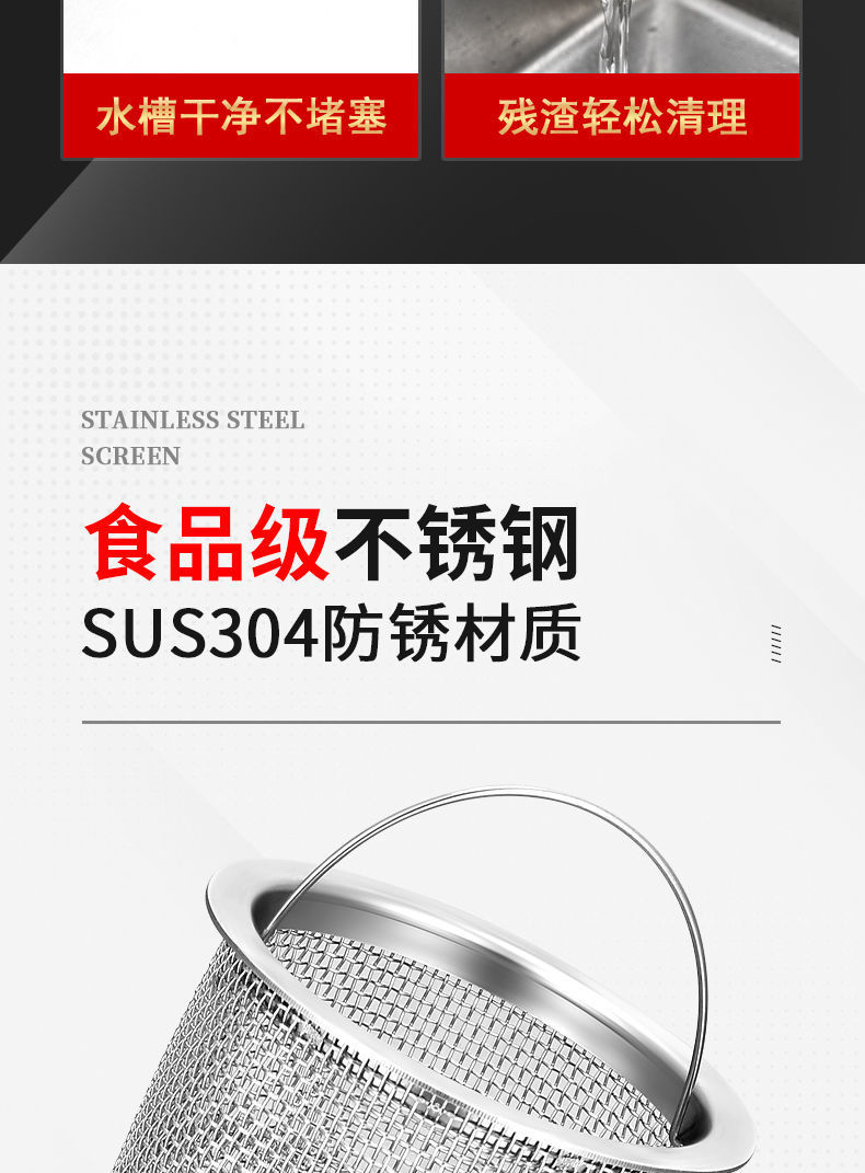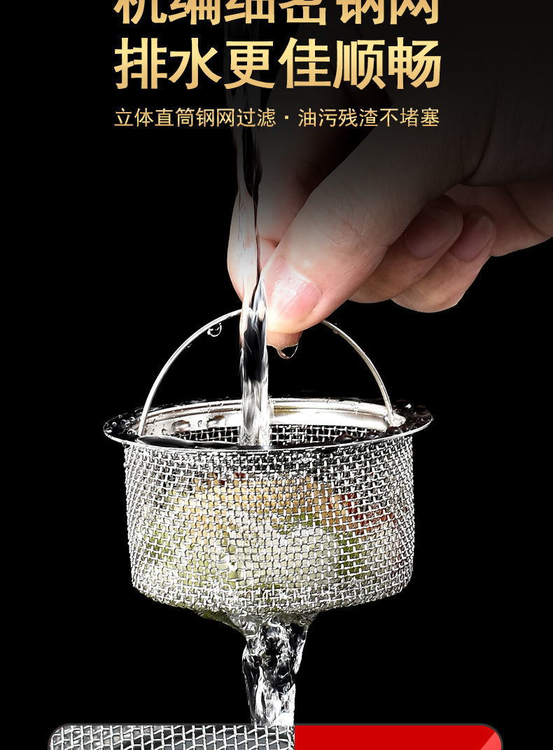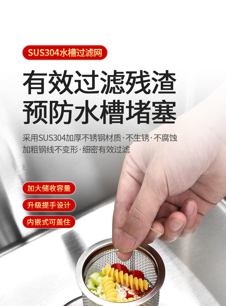 厨房过滤网水槽洗菜盆水池漏斗洗碗池不锈钢下水道通用304提笼