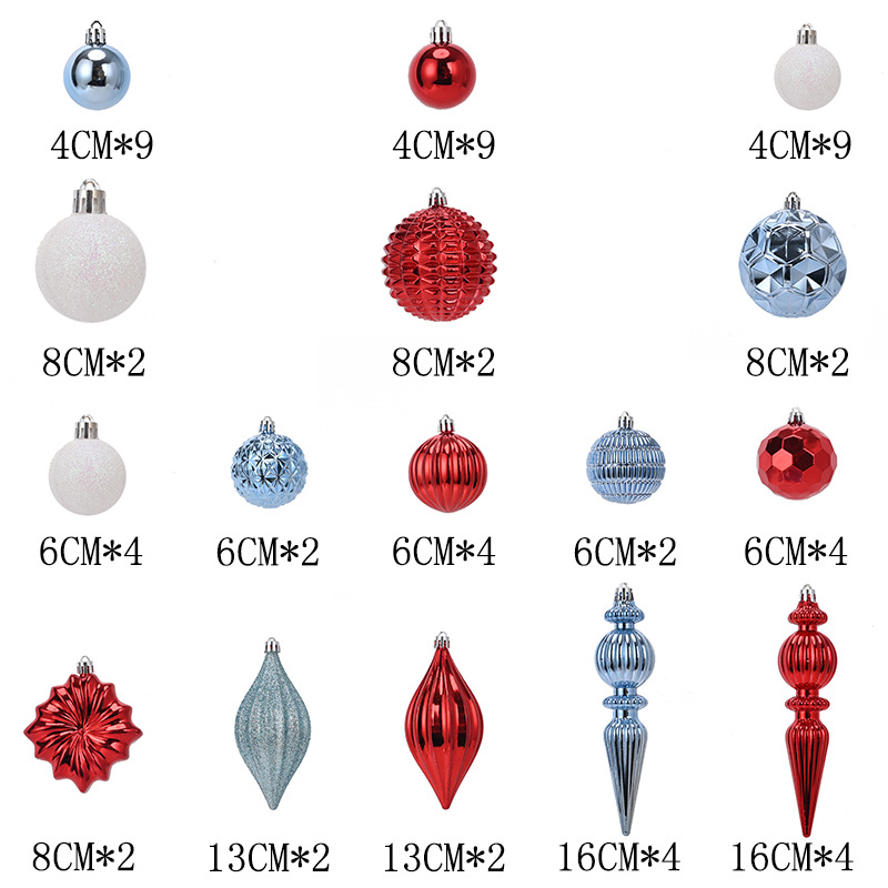 跨境新款 4-16CM圣诞树装饰品套餐 59PCS异形手绘圣诞球礼盒套装