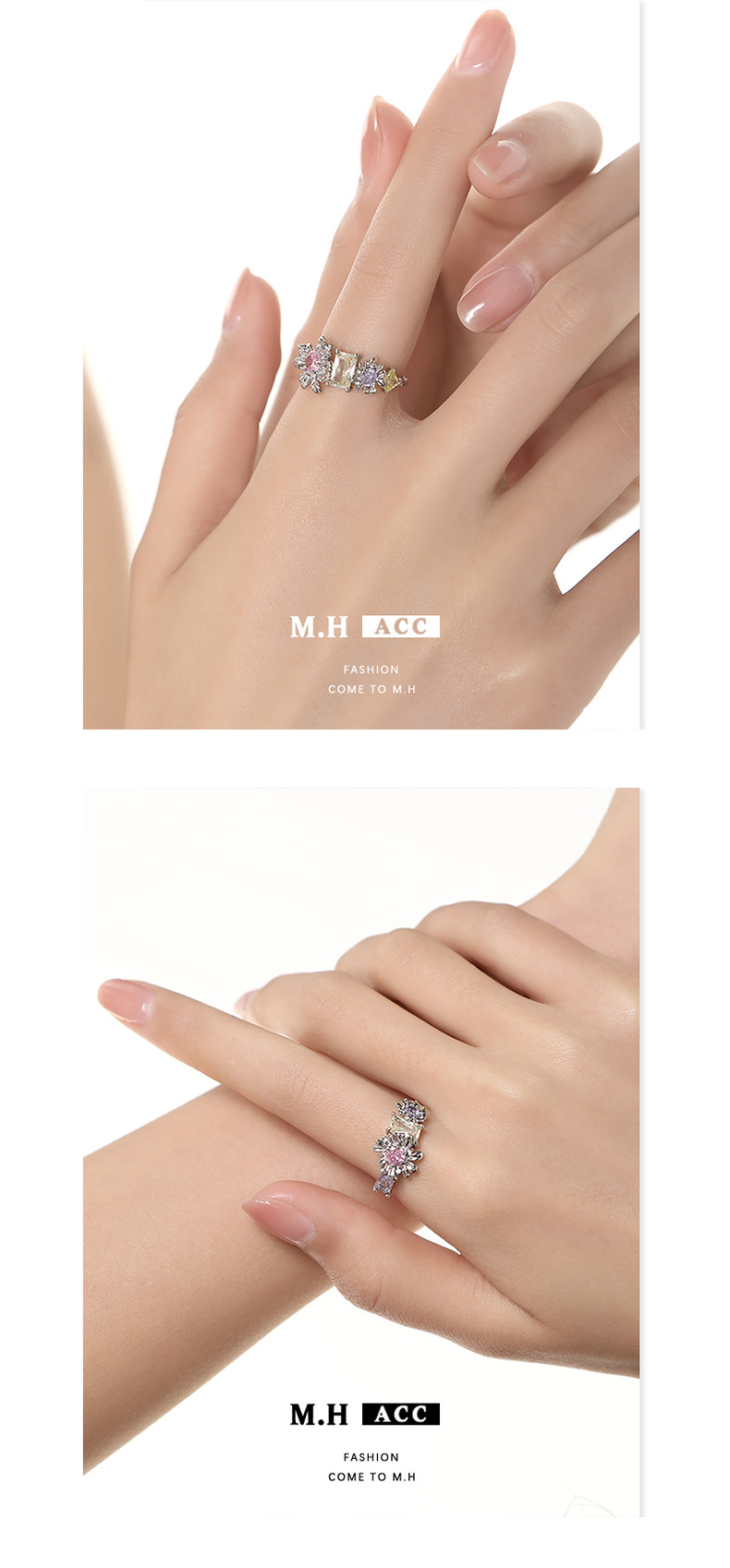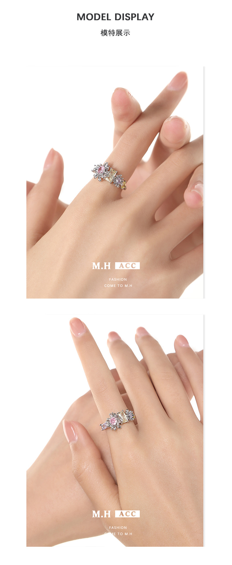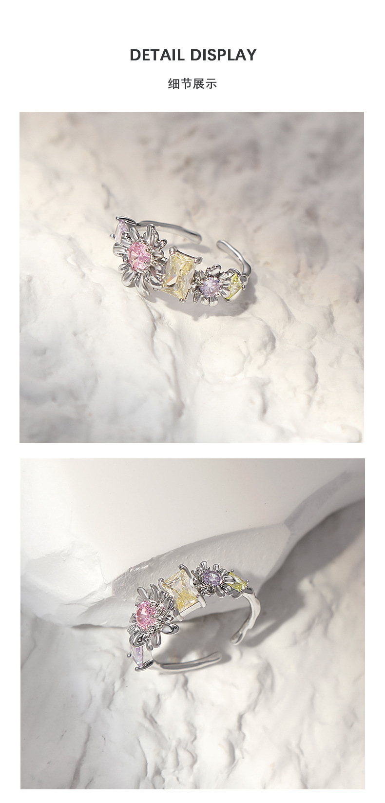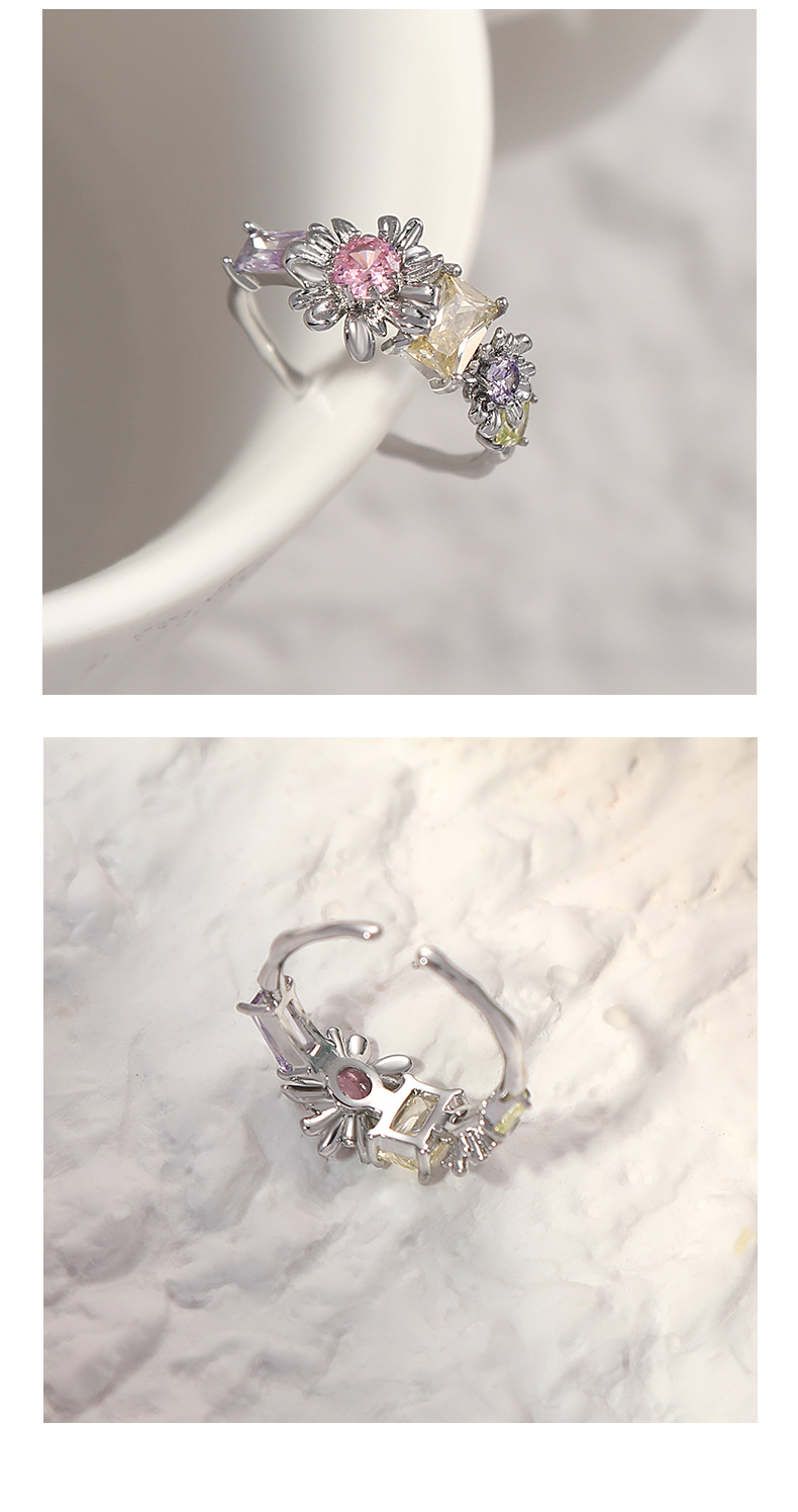 新款潮流甜美花朵戒指饰品轻奢精致小巧开口可调节食指戒个性指环