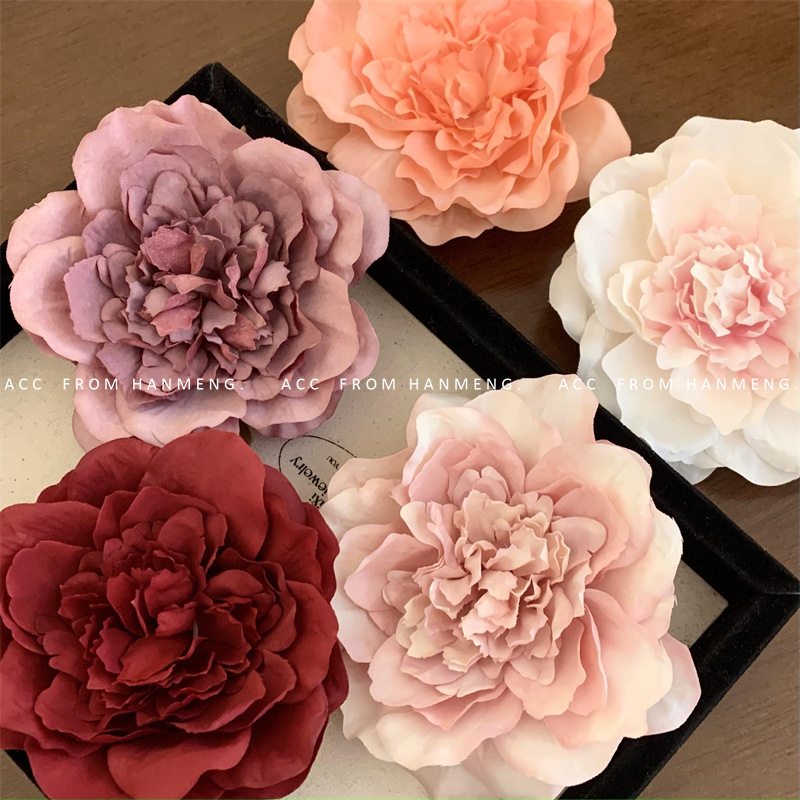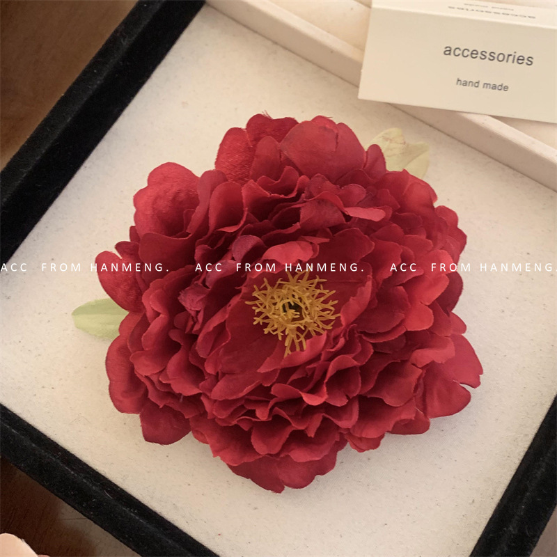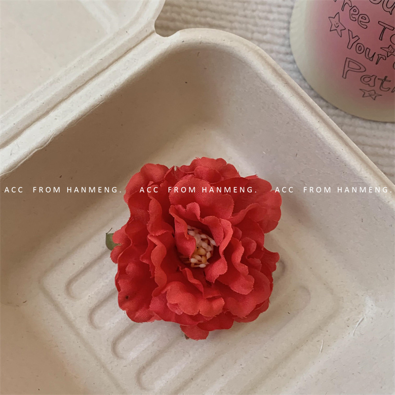 海边日落拍照发饰唯美红色花朵发夹侧边夹子刘海夹头花发卡头饰女