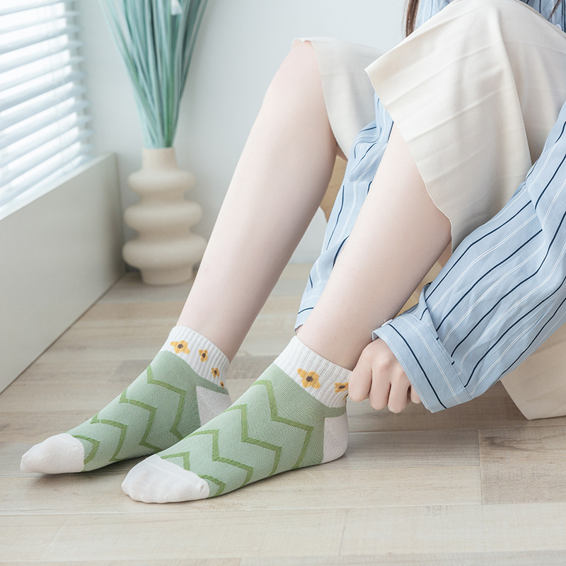 袜子女夏季 日系棉透气条纹 船袜女韩版双针隐形短袜厂家批发