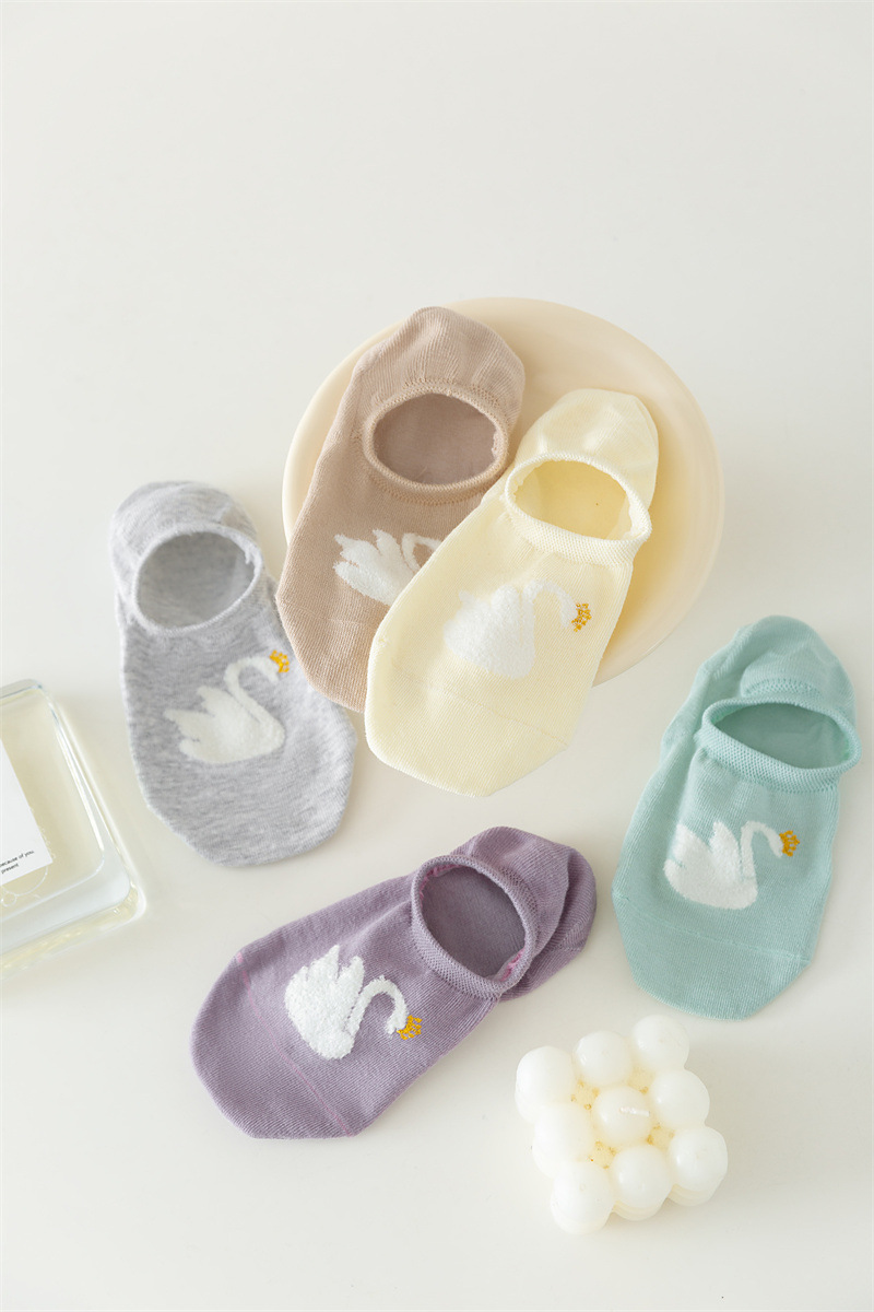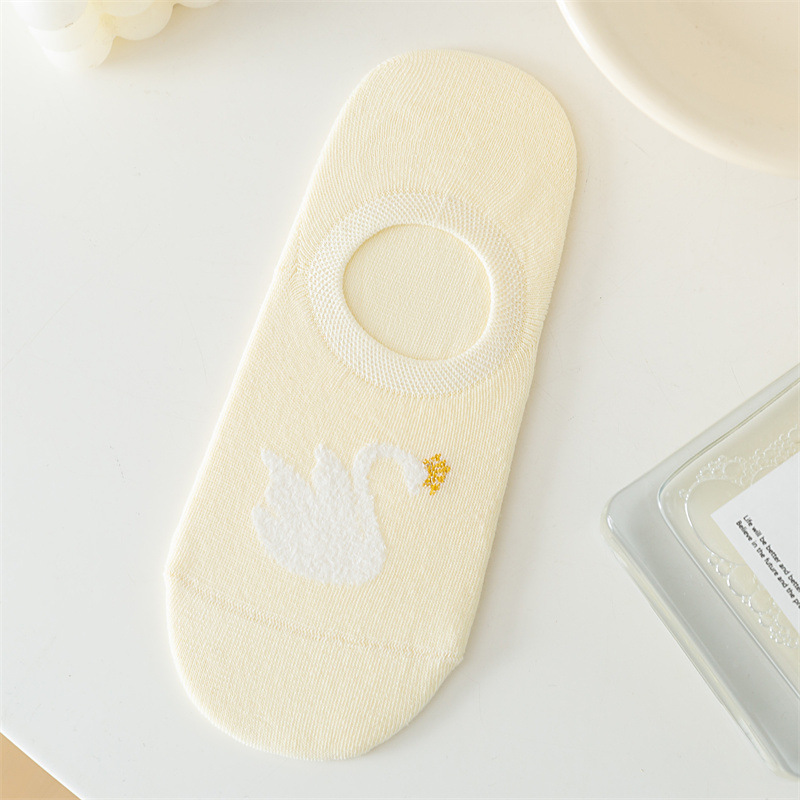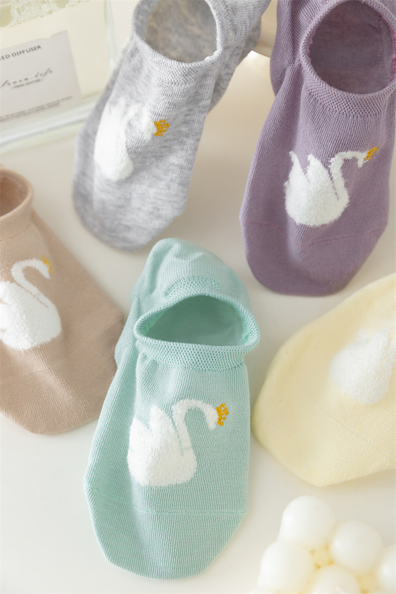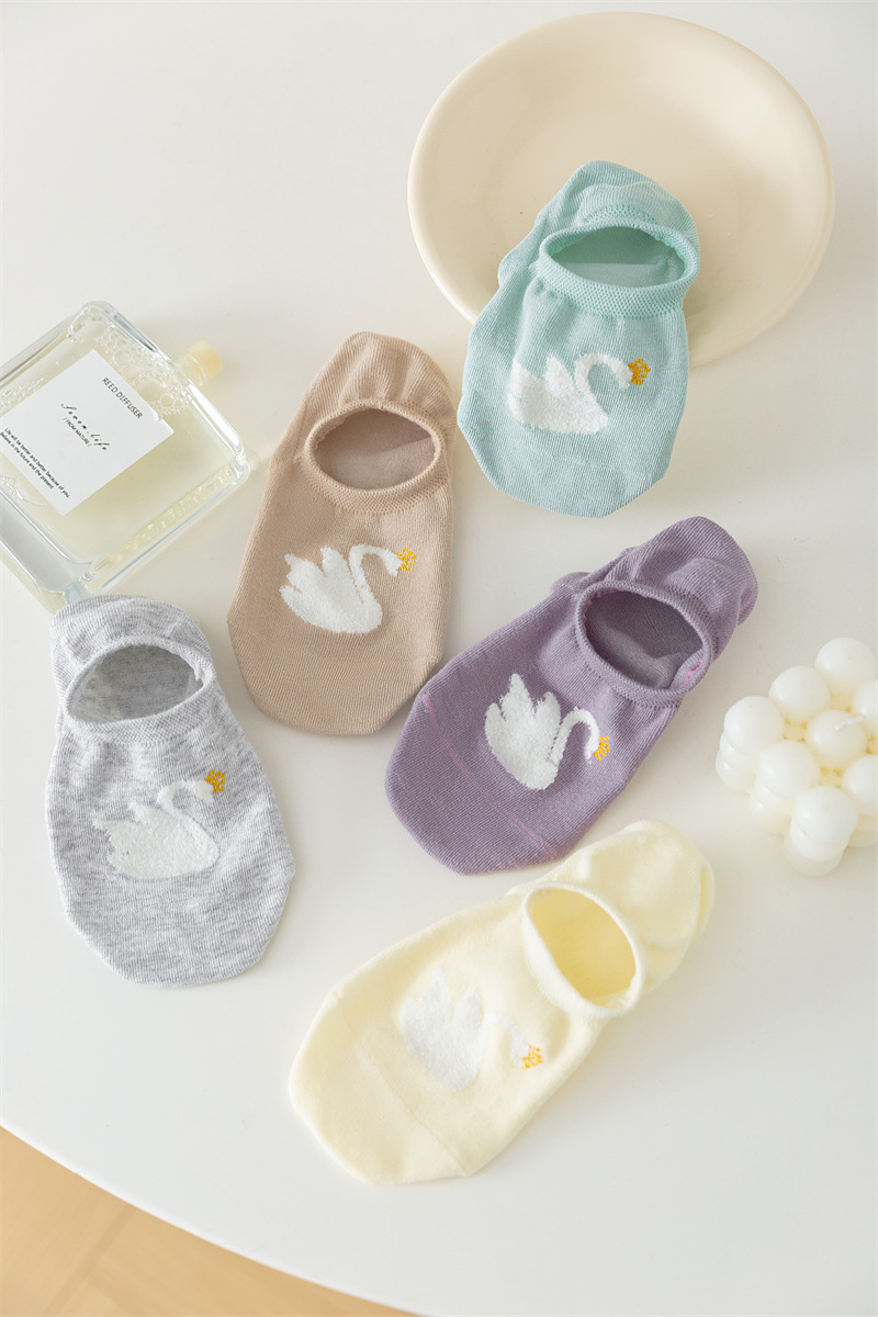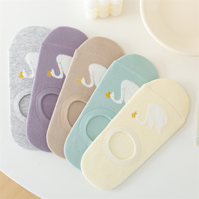 袜子女短袜夏季薄款浅口硅胶防滑隐形不掉跟可爱天鹅船袜现货批发