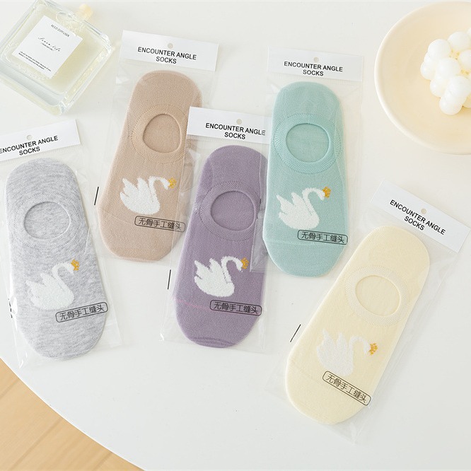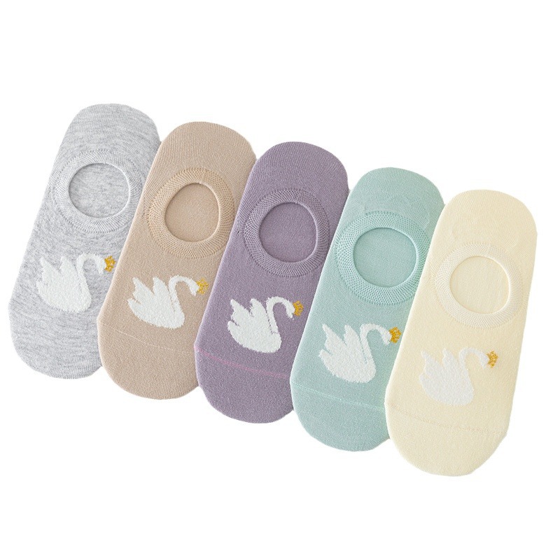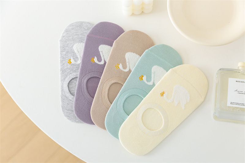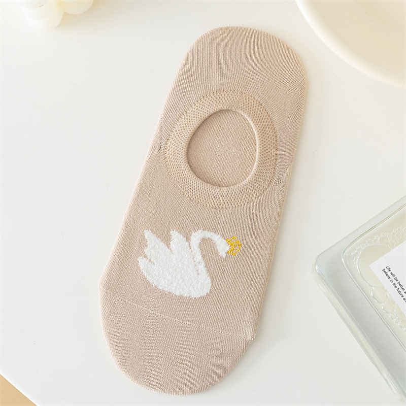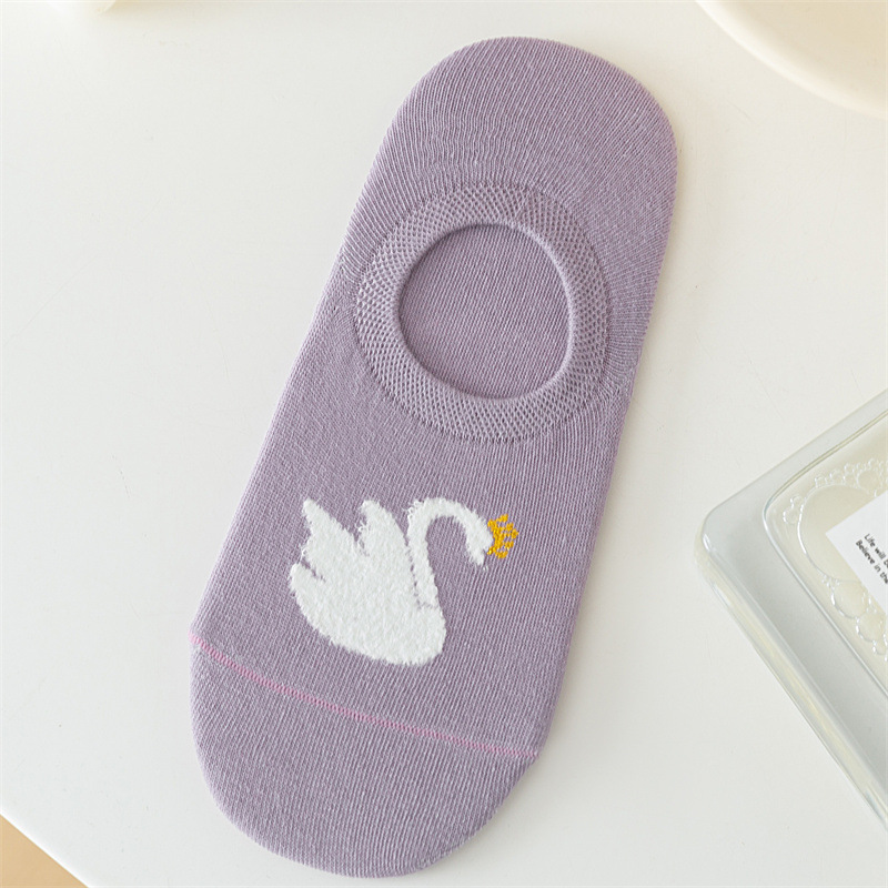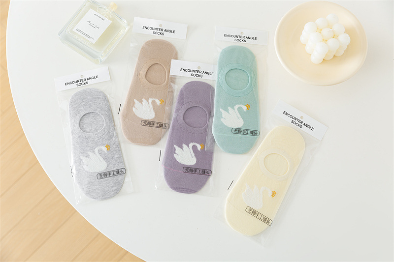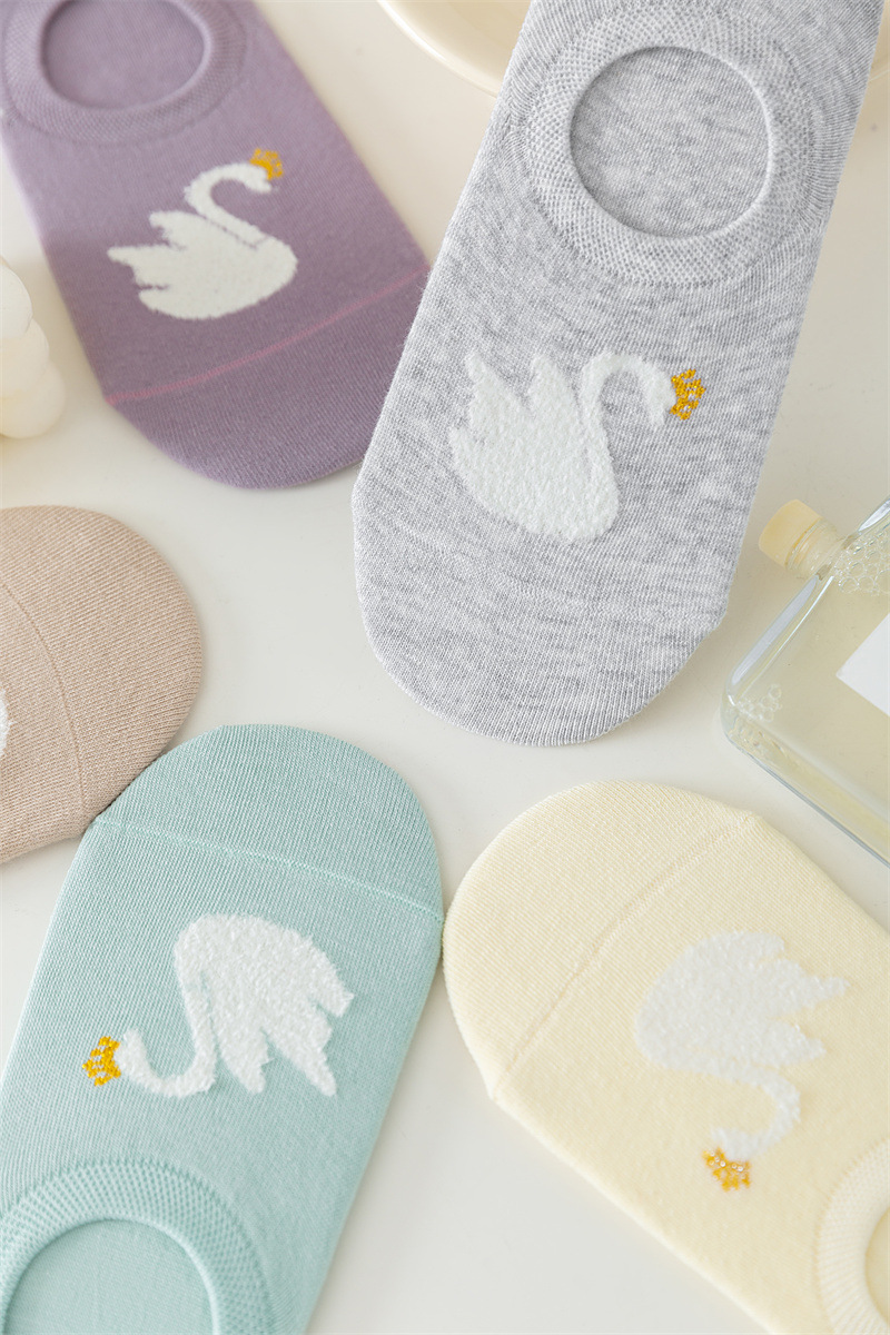 袜子女短袜夏季薄款浅口硅胶防滑隐形不掉跟可爱天鹅船袜现货批发