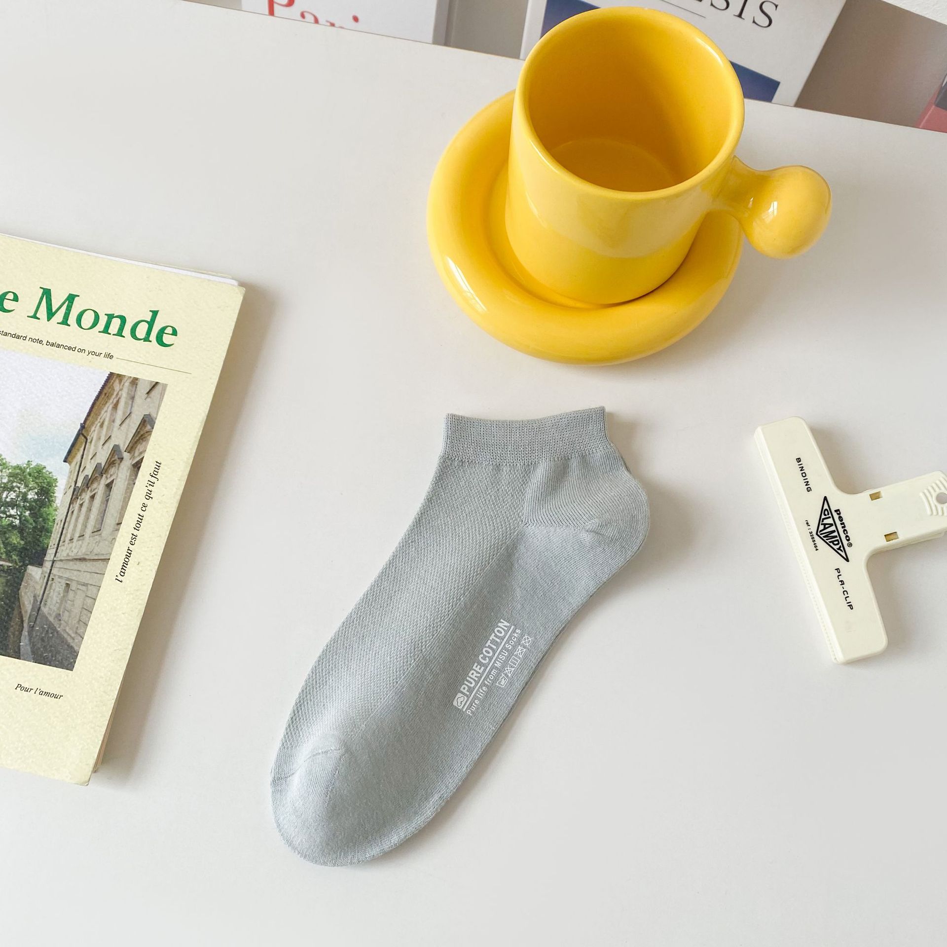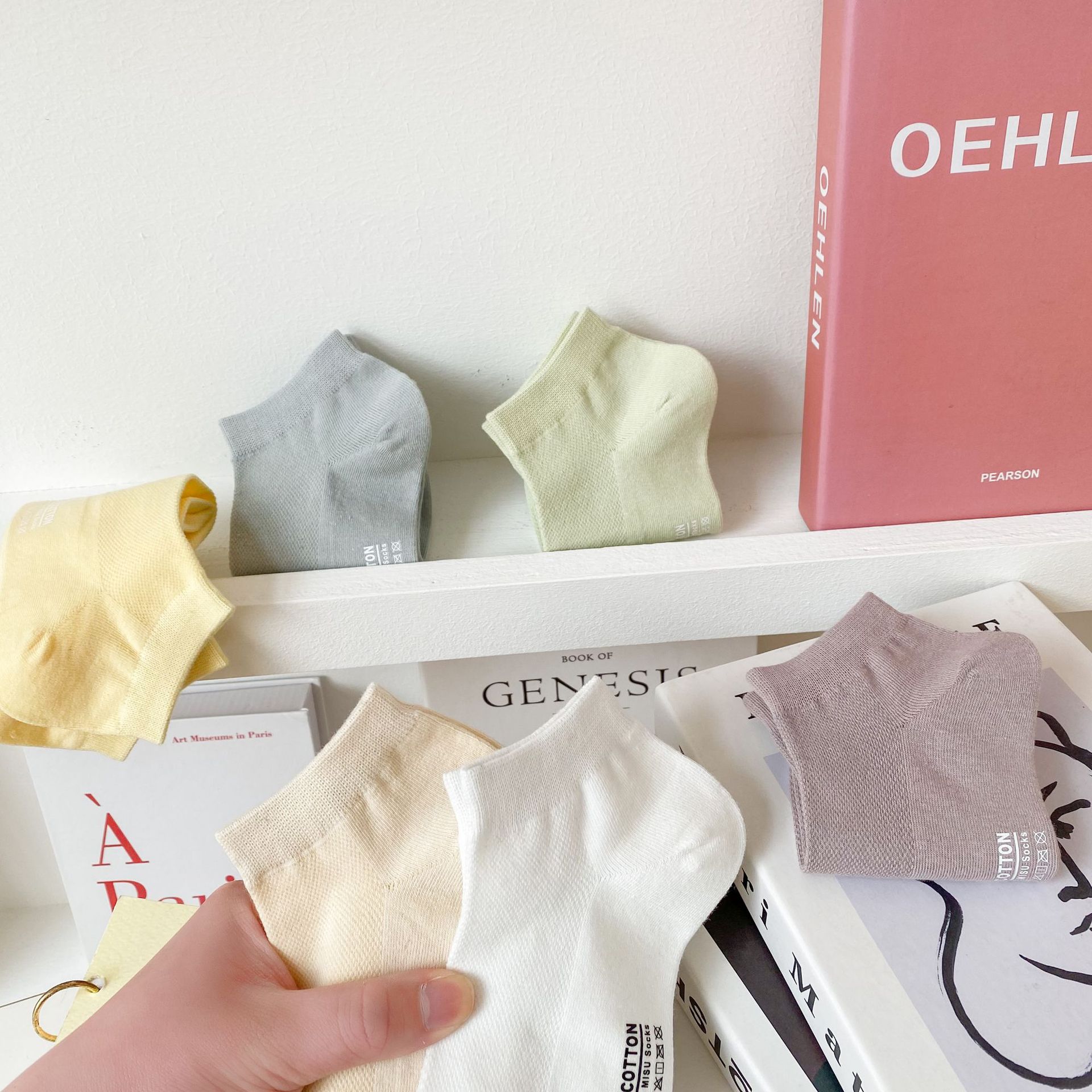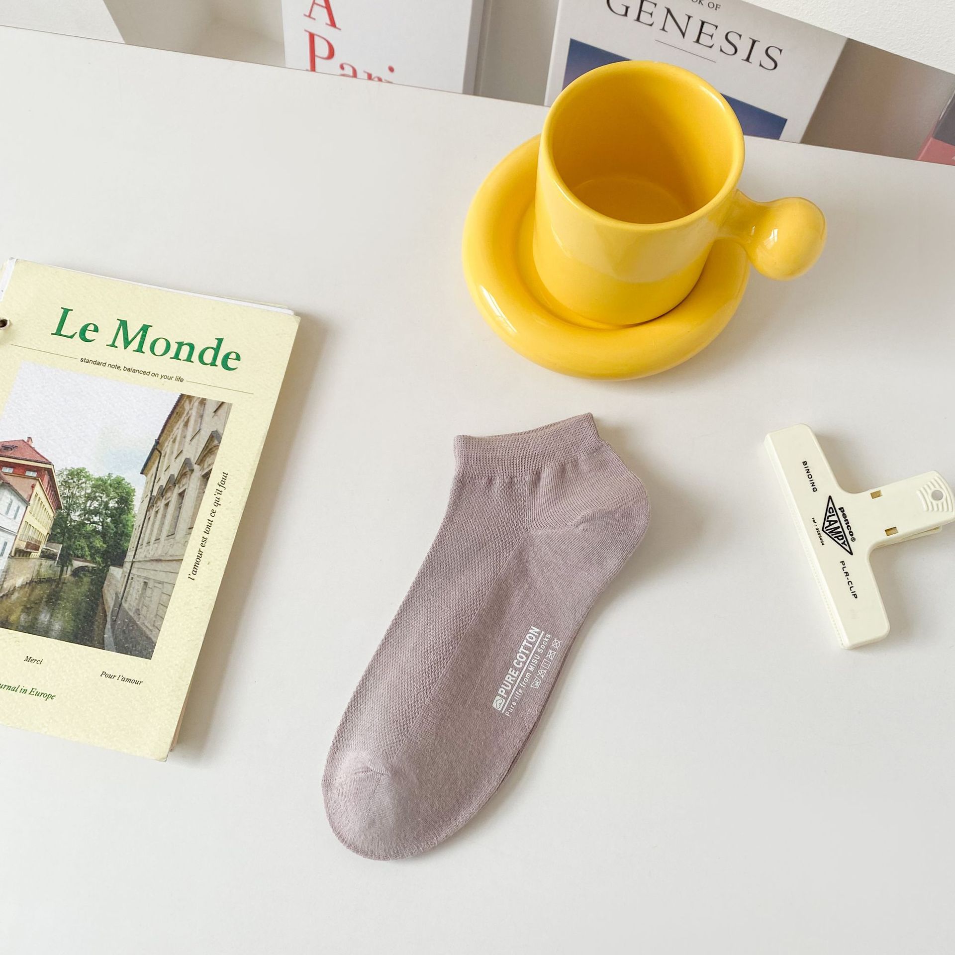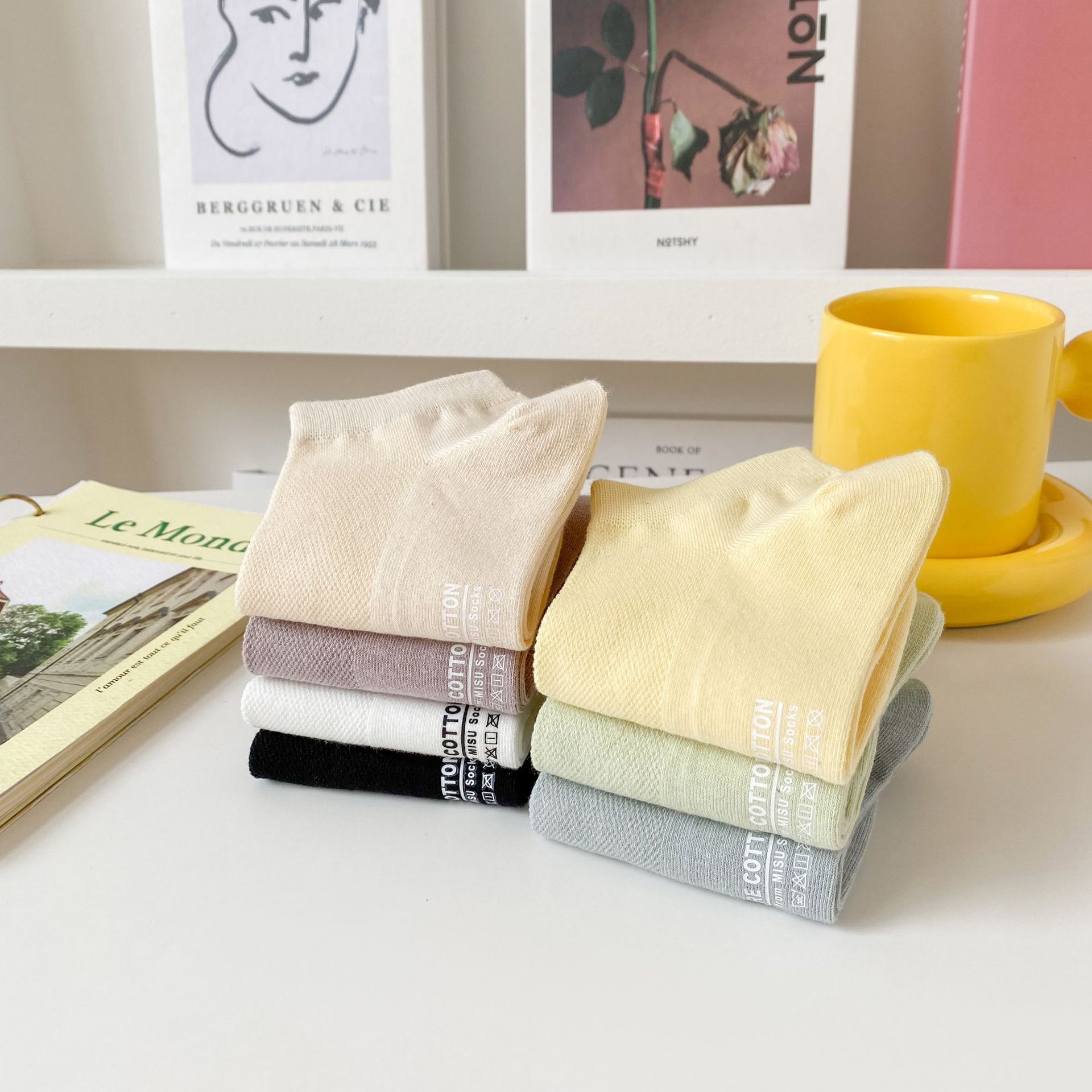 袜子女春夏新款网眼薄款棉袜脚底字母烫印日系纯色透气女短袜批发