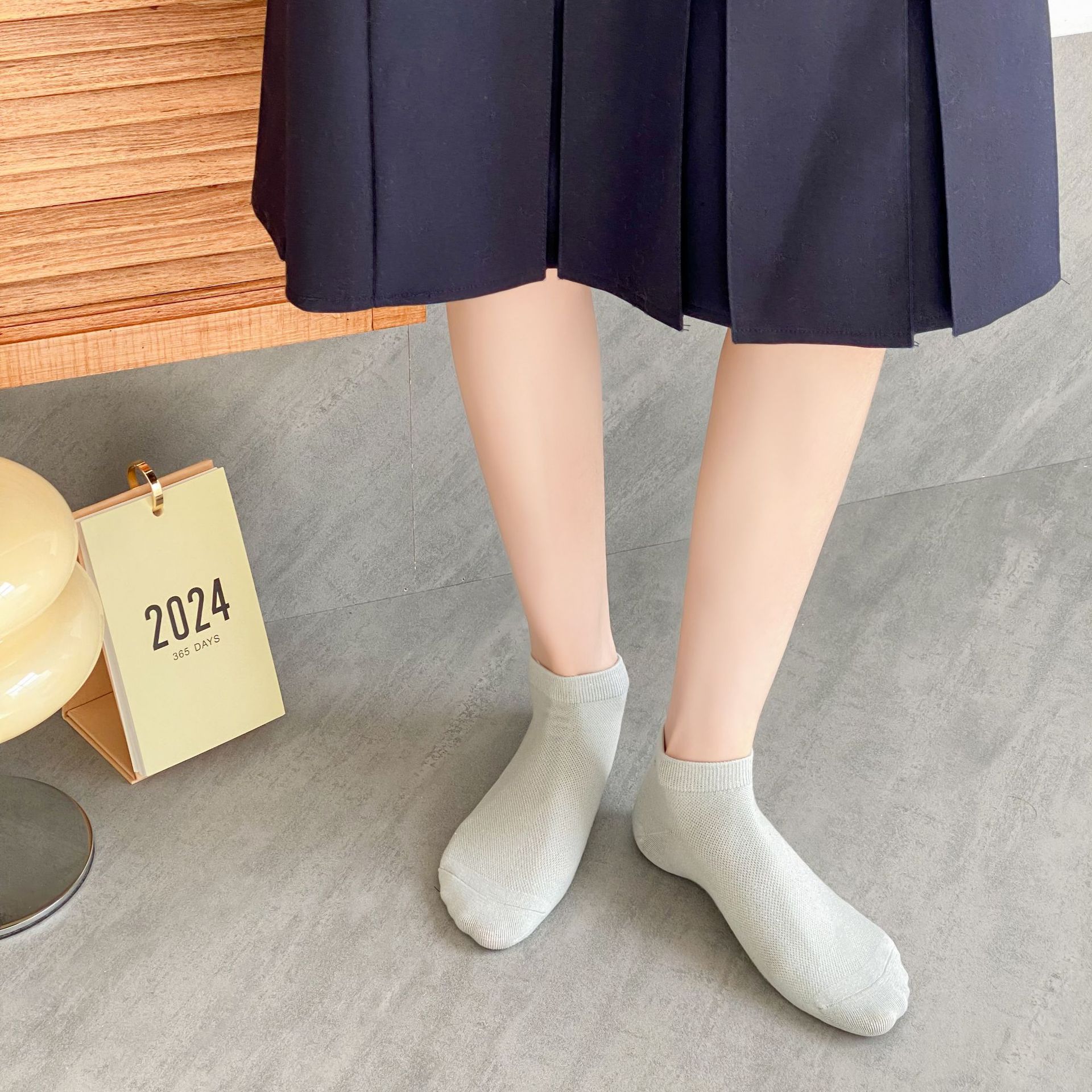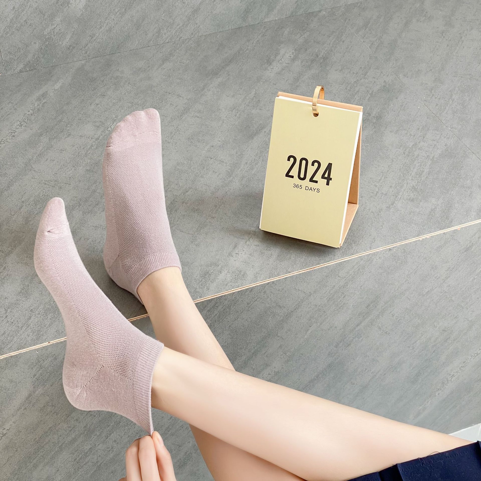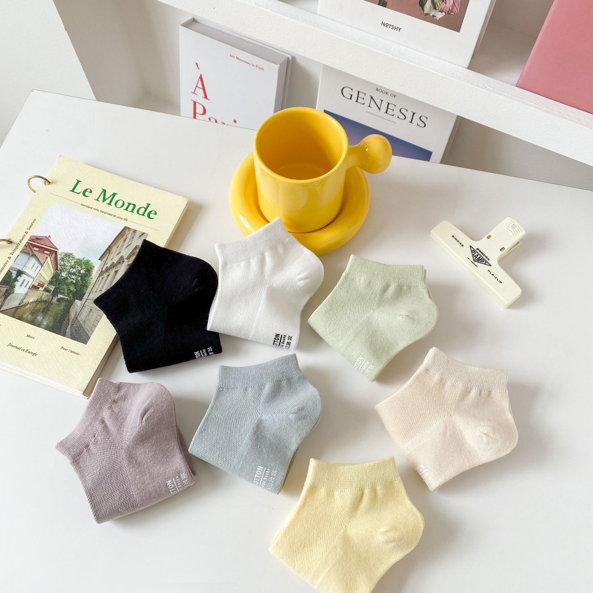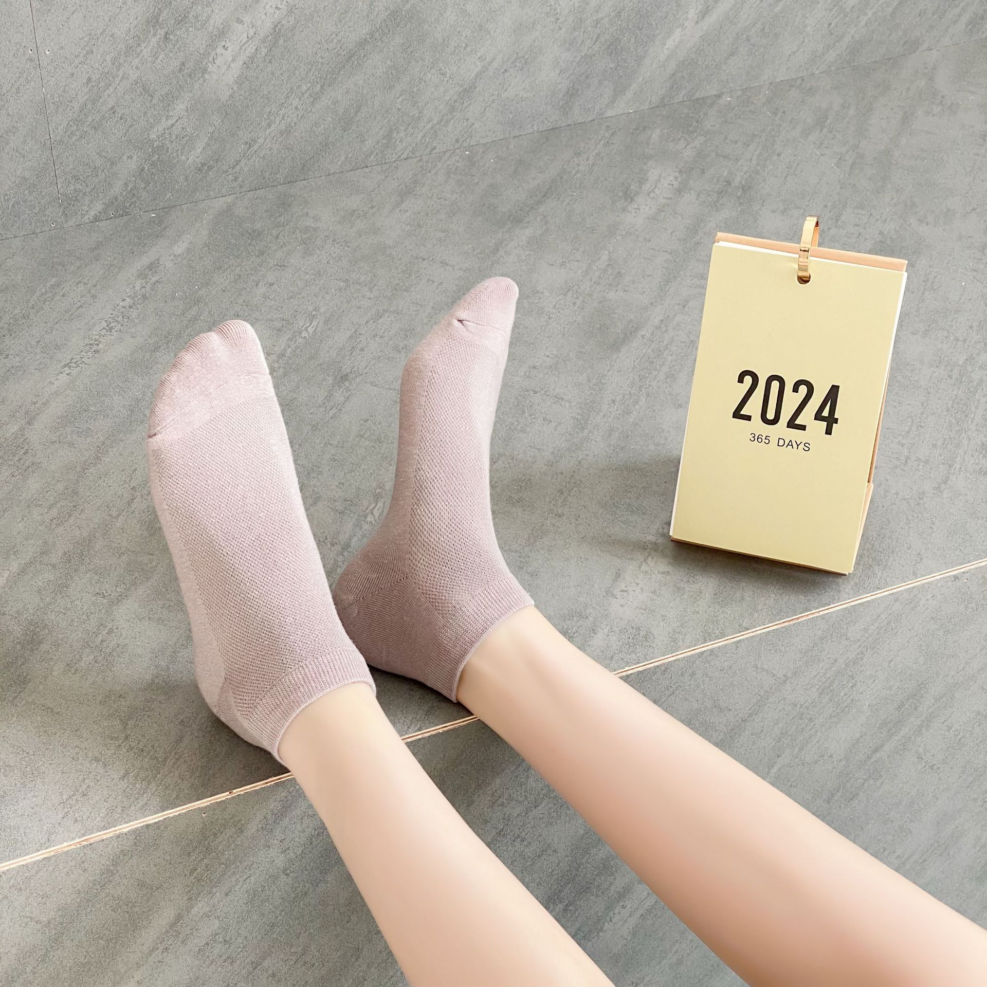 袜子女春夏新款网眼薄款棉袜脚底字母烫印日系纯色透气女短袜批发