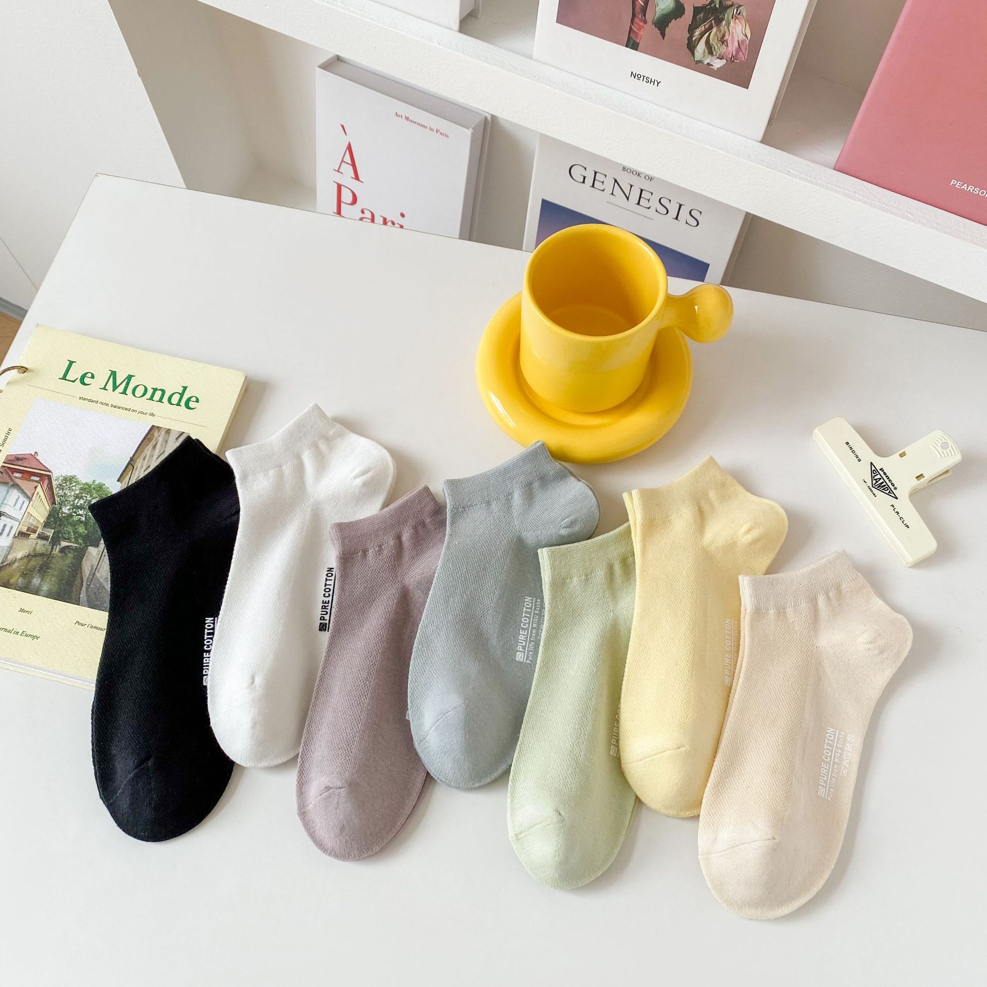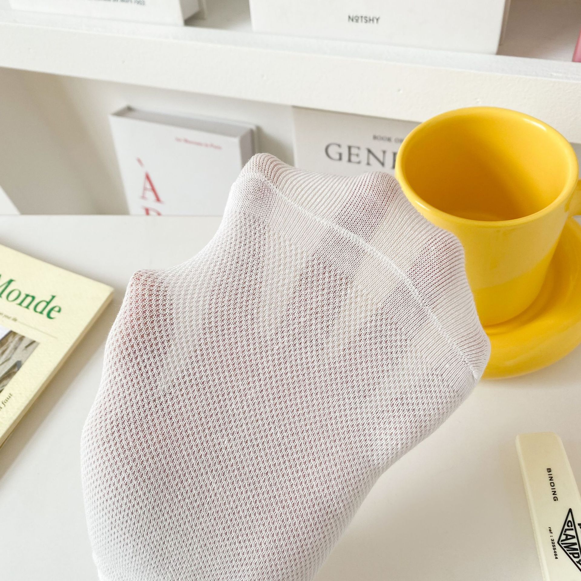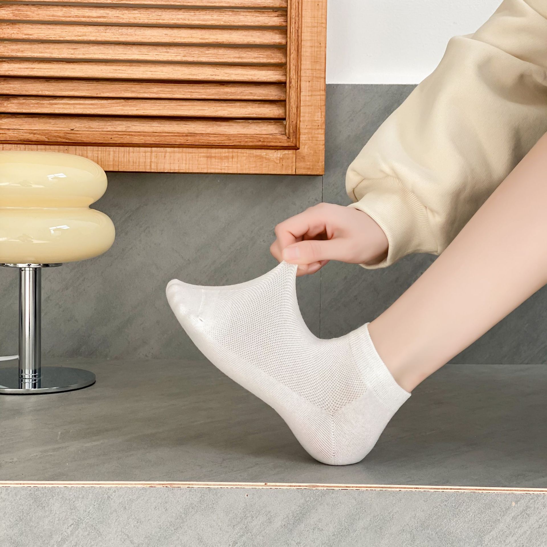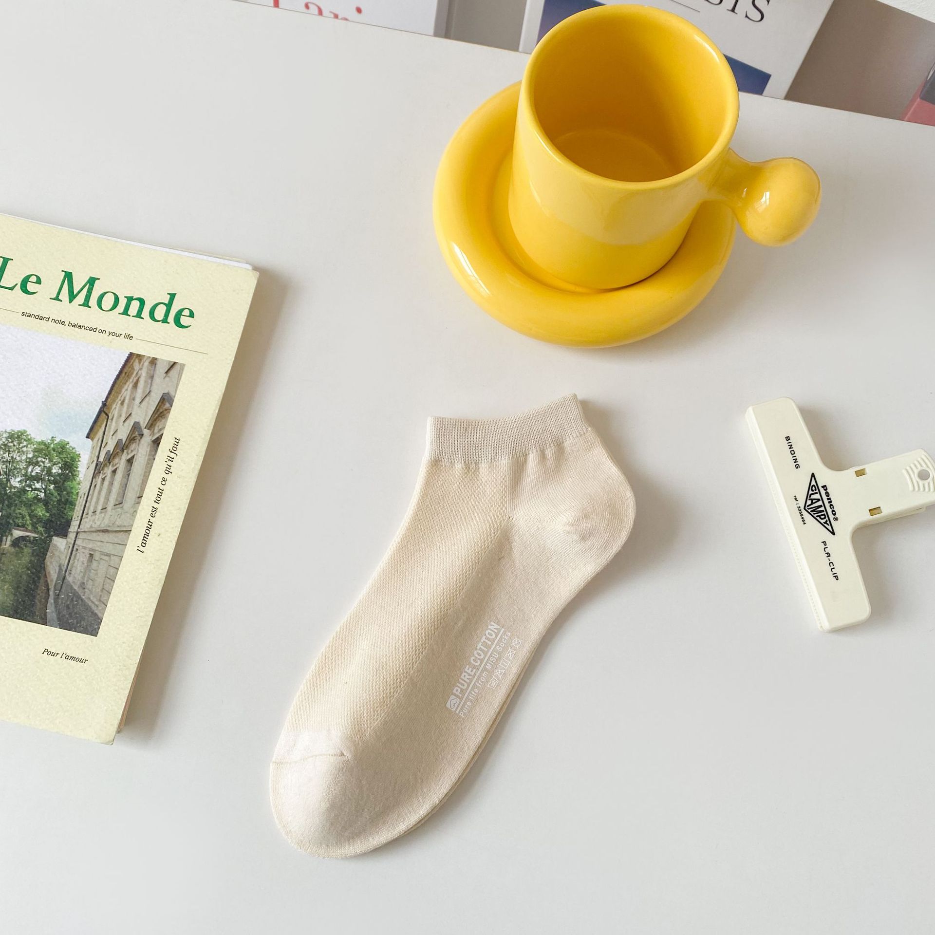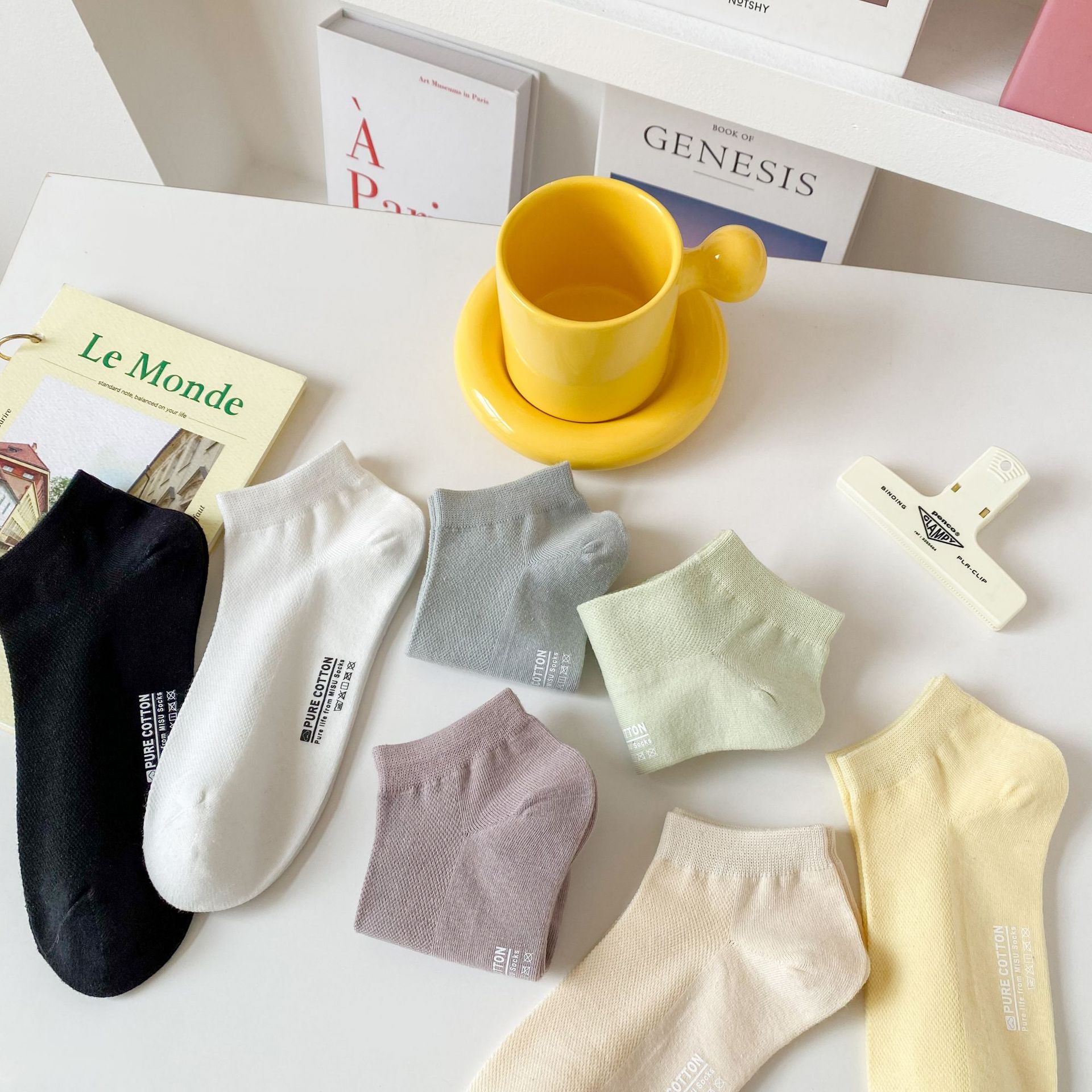 袜子女春夏新款网眼薄款棉袜脚底字母烫印日系纯色透气女短袜批发