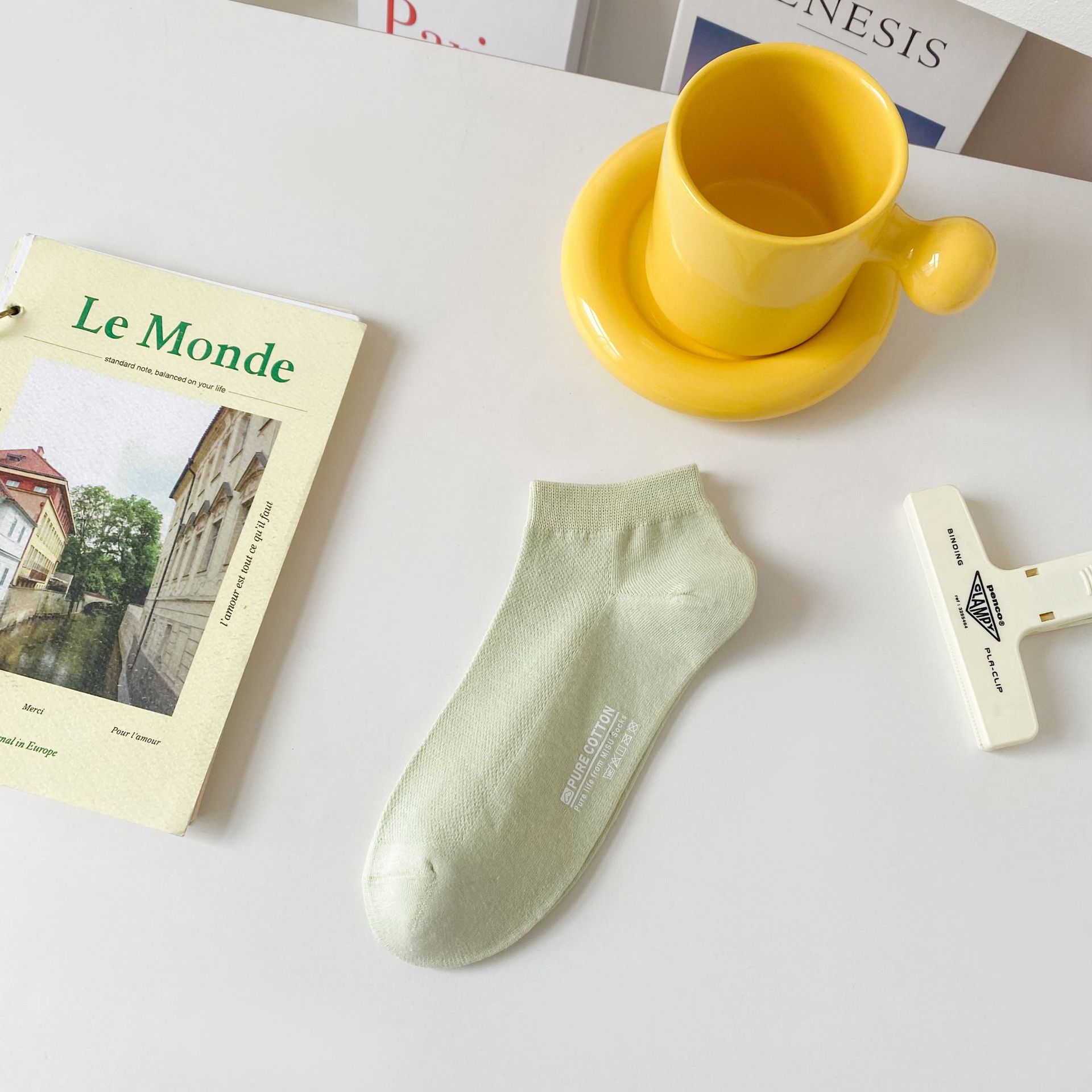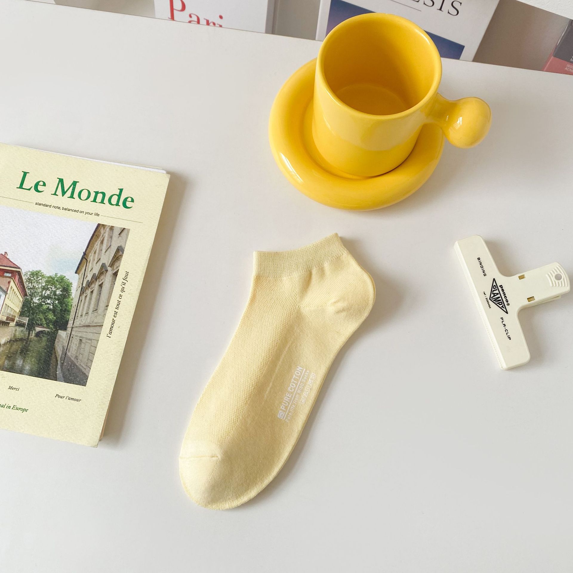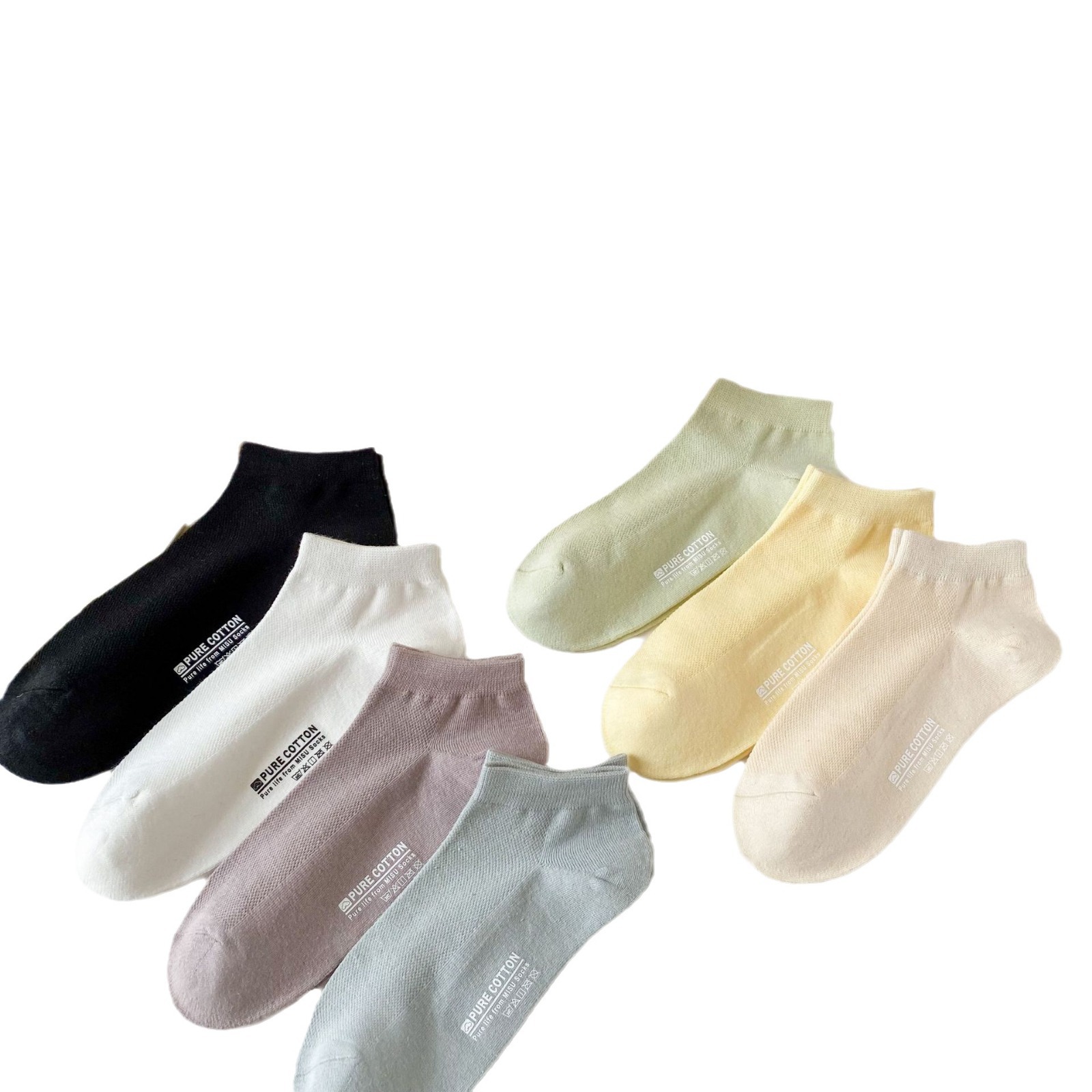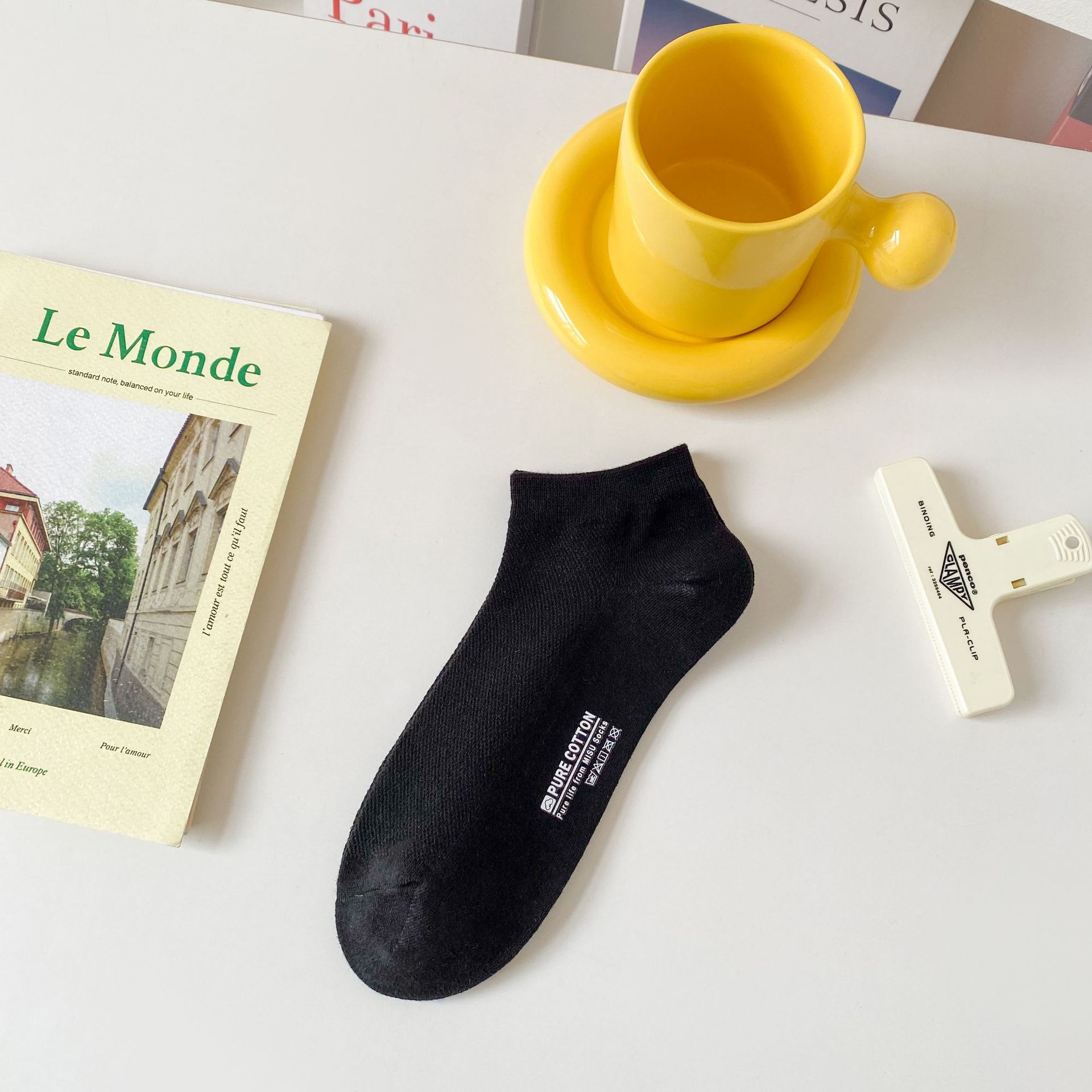 袜子女春夏新款网眼薄款棉袜脚底字母烫印日系纯色透气女短袜批发