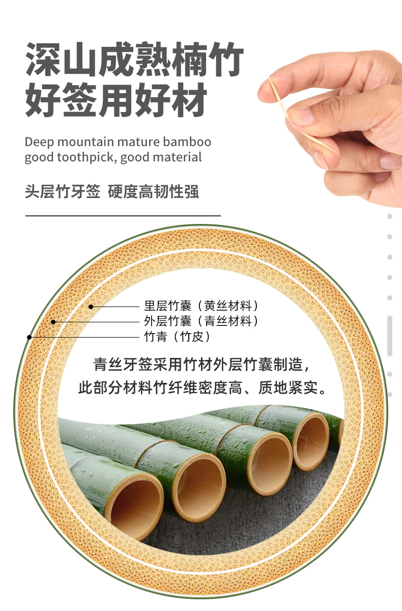 牙签直径约1.75mm,长度约63mm,一盒约10000支,8盒装一箱;