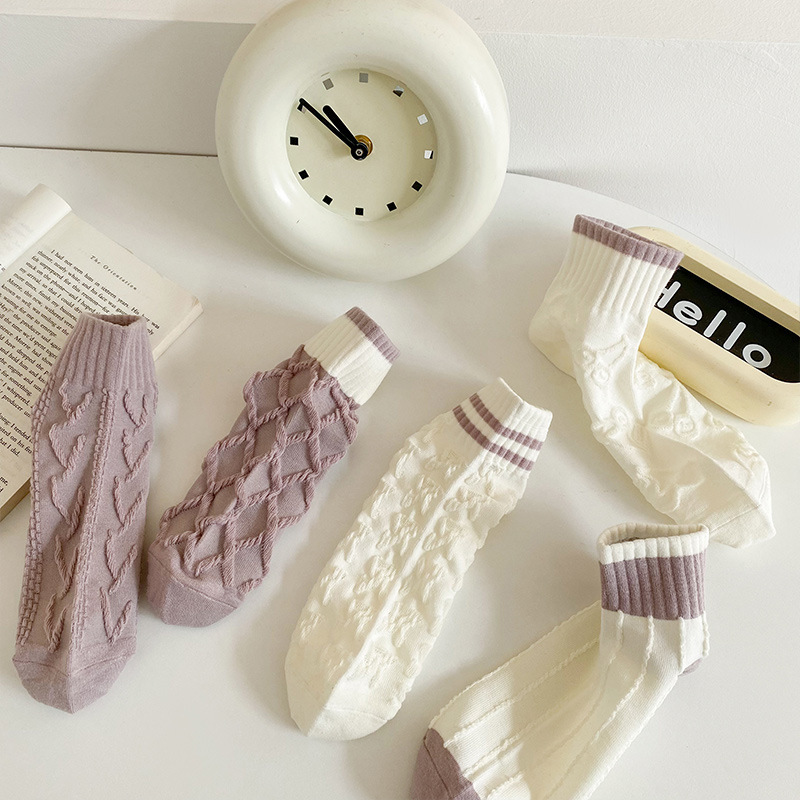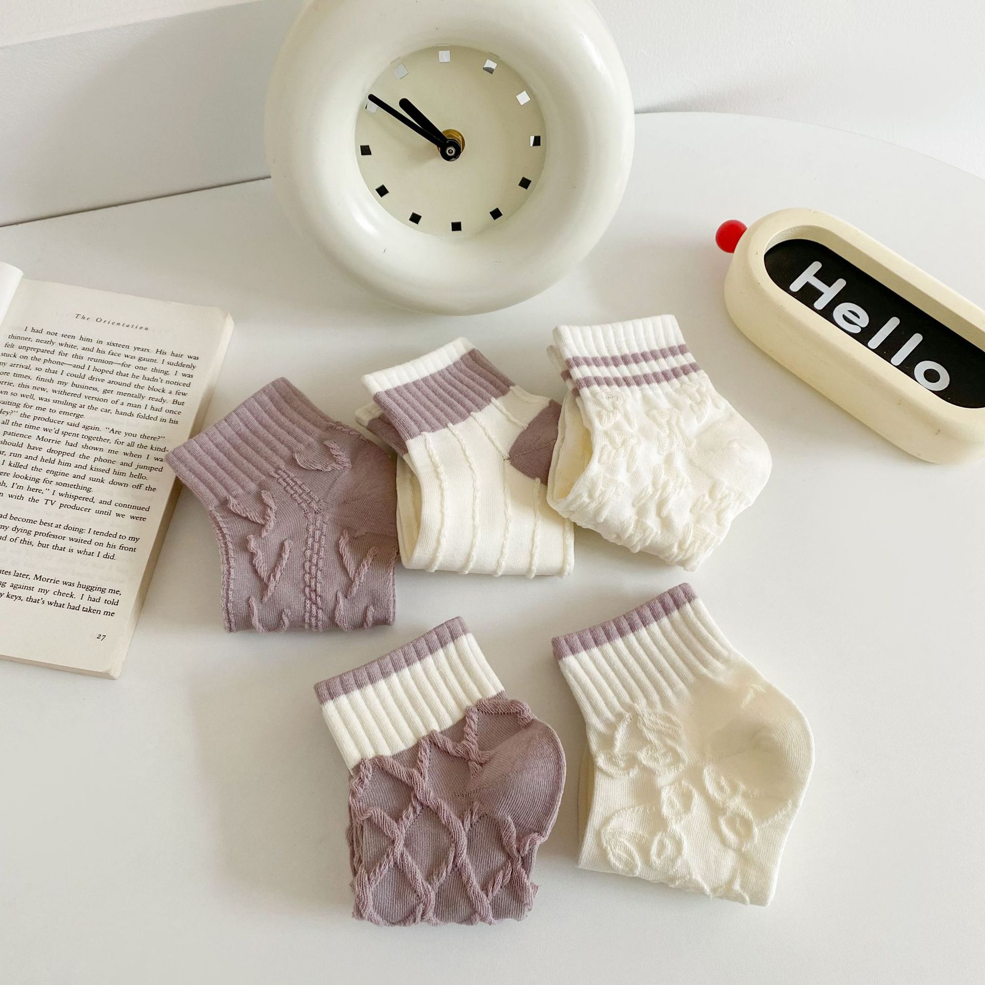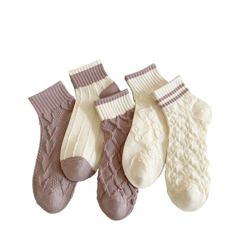 袜子女春夏香芋紫短袜潮流菱形短筒棉袜学生休闲小白袜女船袜批发