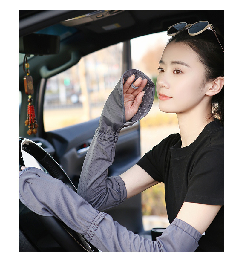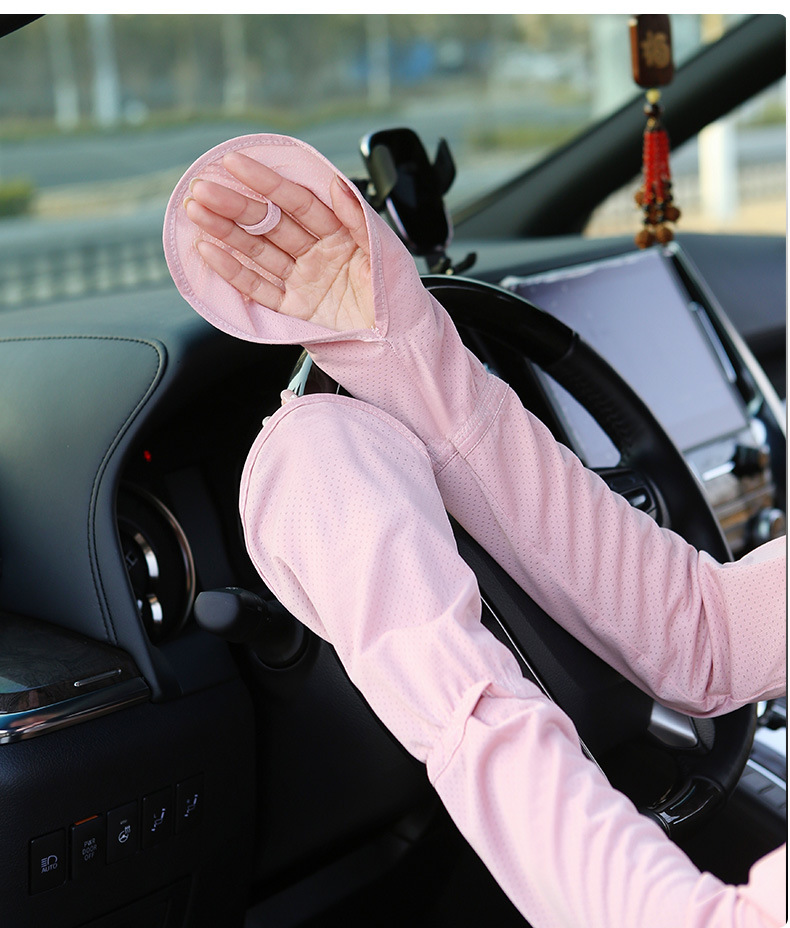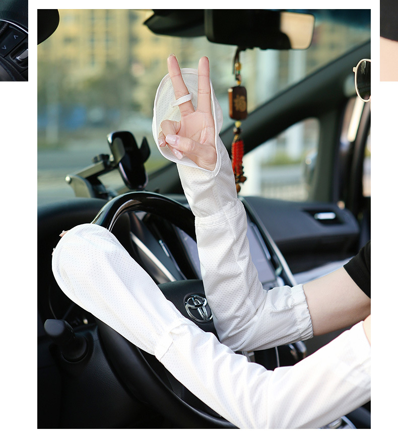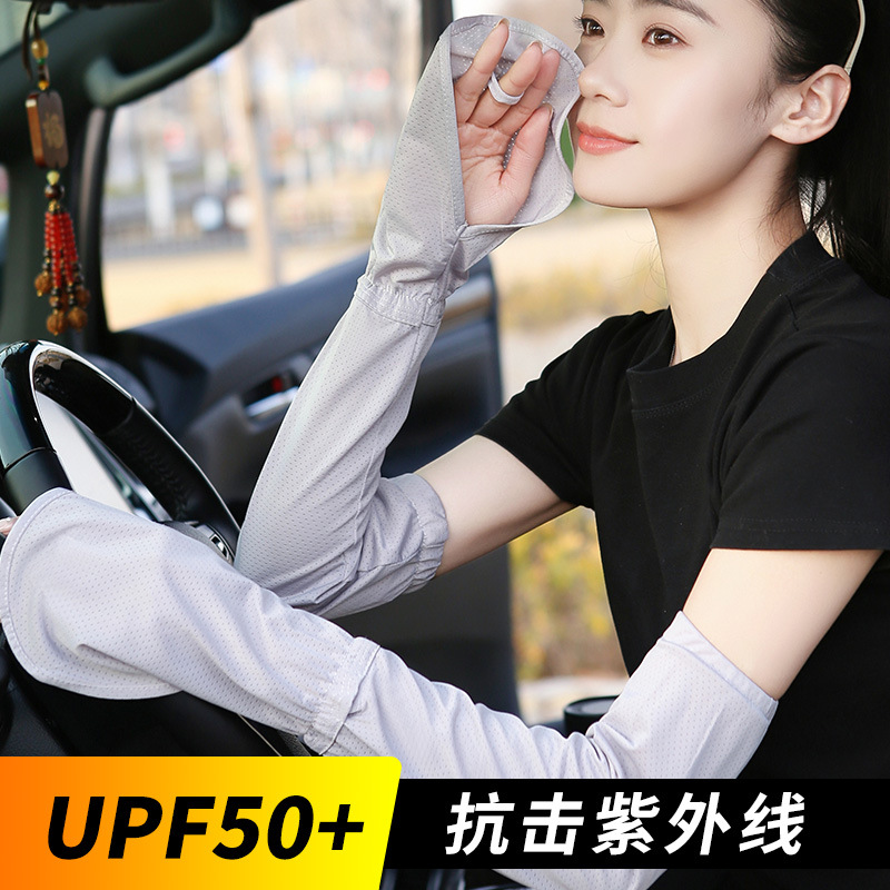 防晒袖套女防紫外线夏季加长护臂露指开车薄款户外骑行冰丝手套