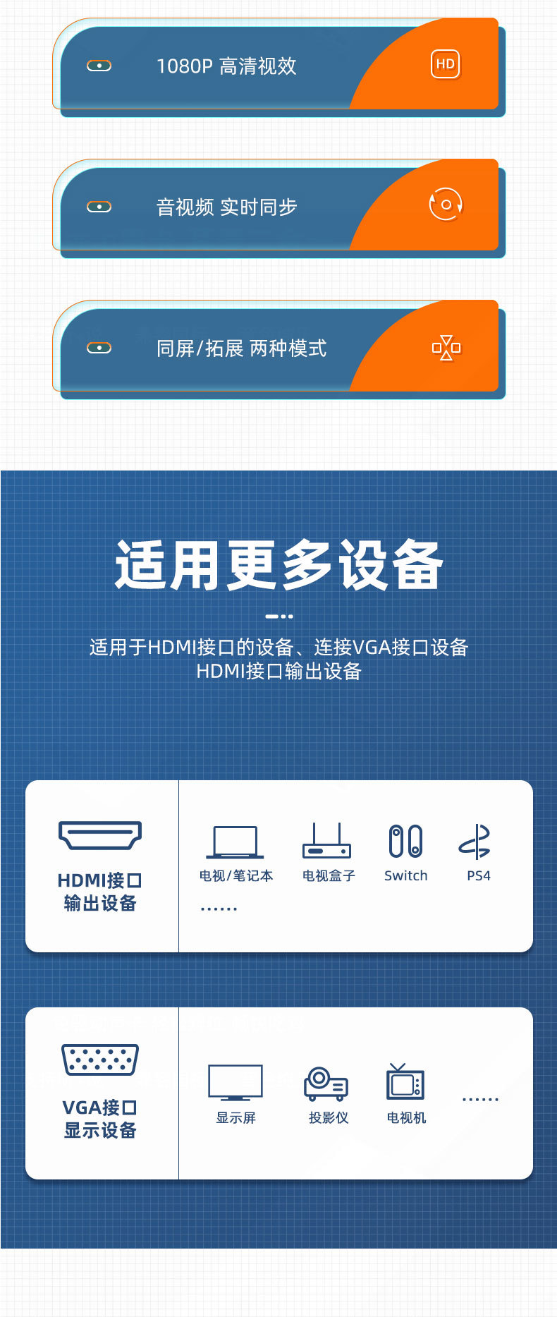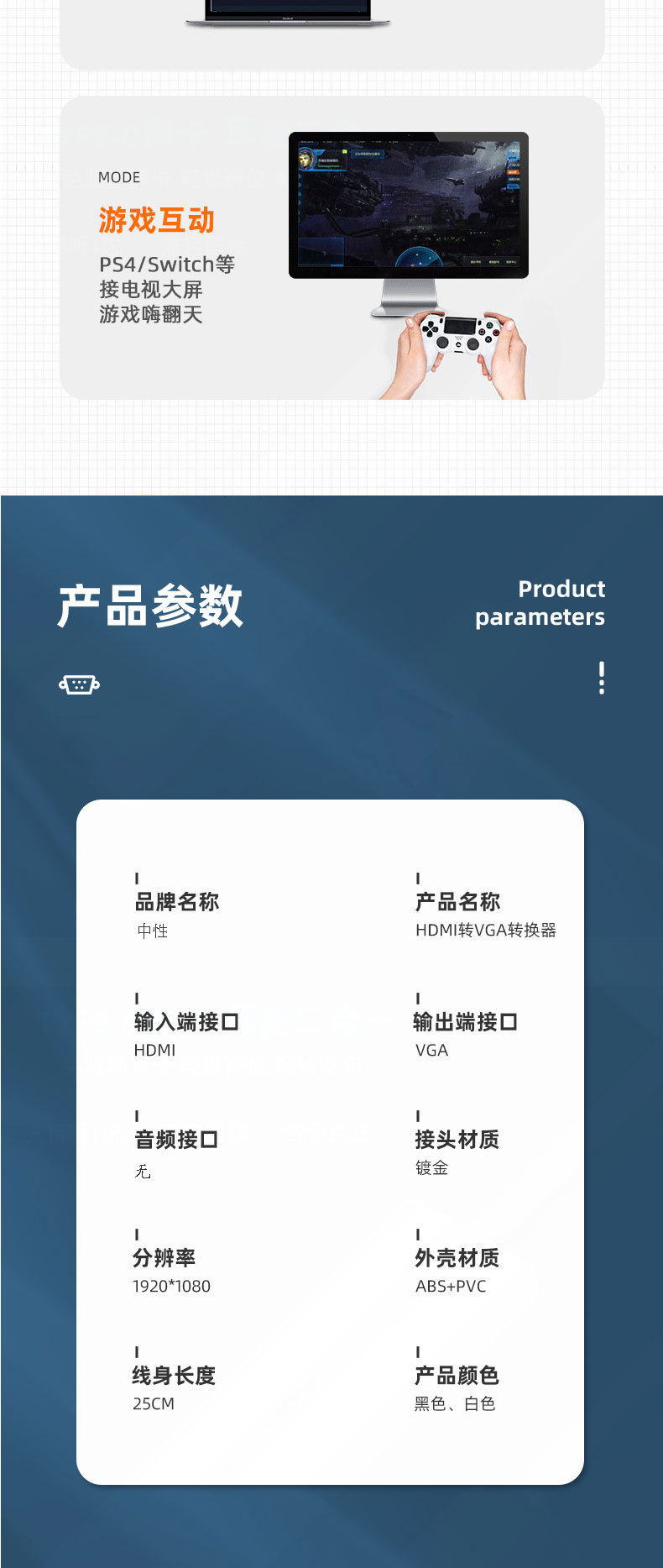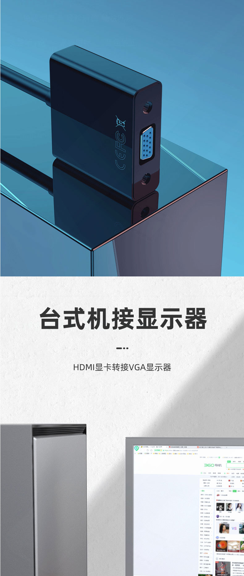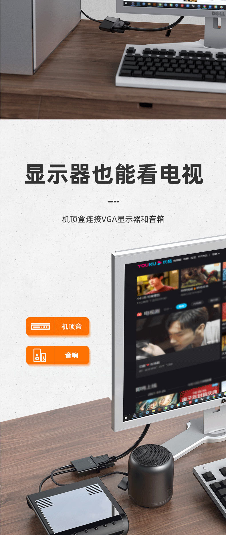 HDTV 转VGA转接头/转接线带芯片hdmi高清1080p 笔记本转VGA显示器
