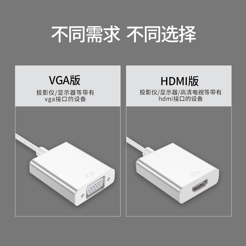 Type-C to VGA雷电3转HDMI转换头线macbook笔记本手机投屏转接线