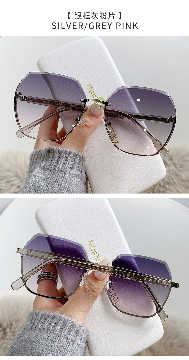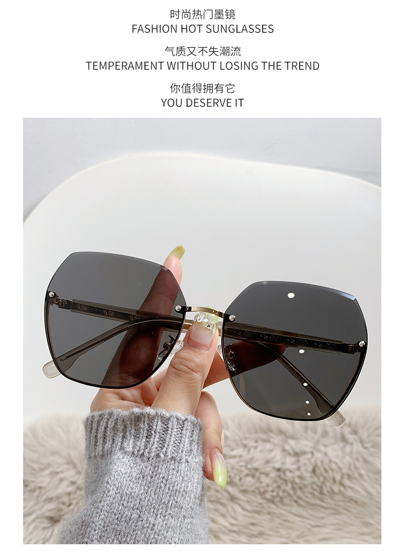 抖音爆款轻奢眼镜女士大框墨镜时尚自带妆容眼镜渐变无框太阳镜女