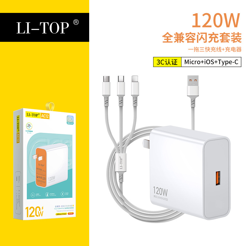 3C认证手机充电器适用vivo小米oppo充电头iqoo兼容120W闪充快充头